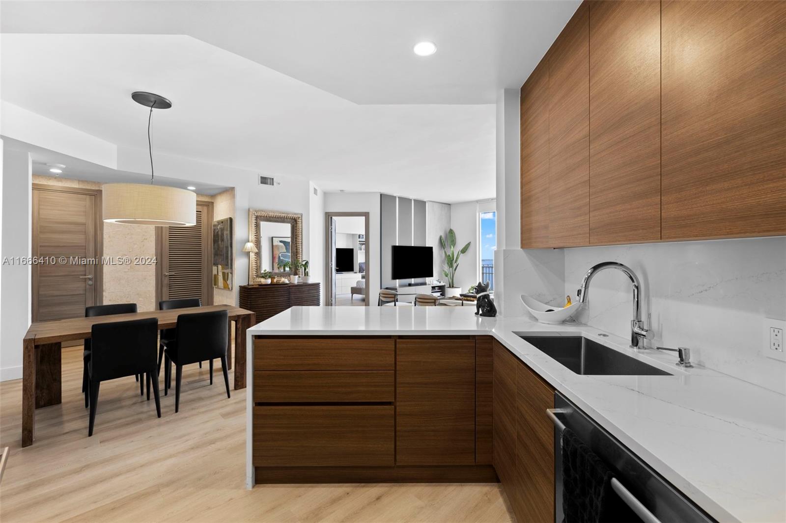 Beautifully renovated 3-bedroom, 2.5-bath condo on Brickell Key. This Penthouse unit offers stunning Biscayne Bay view from every room and features two private balconies with high 9’ ceilings, engineered wood floors throughout and modern elegance. The kitchen has Silestone countertop, equipped with modern cabinetry, and top-of-the-line appliances. The bedrooms come with custom closets made from Closets by Design, recessed lighting, living room built-ins by Bracco Cucine, Italian custom tall solid wood doors from Italdoors, and window treatments. Building amenities include a waterfront pool, jacuzzi, gym, squash court, entertainment room, business center, billiards, 24-hour concierge, and valet parking. Brickell Key also offers parks, playgrounds, restaurants, and shops at walking distance.
