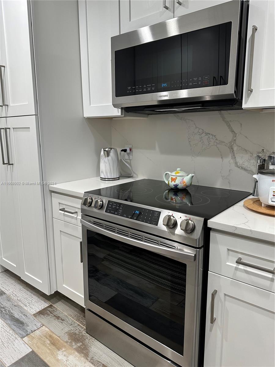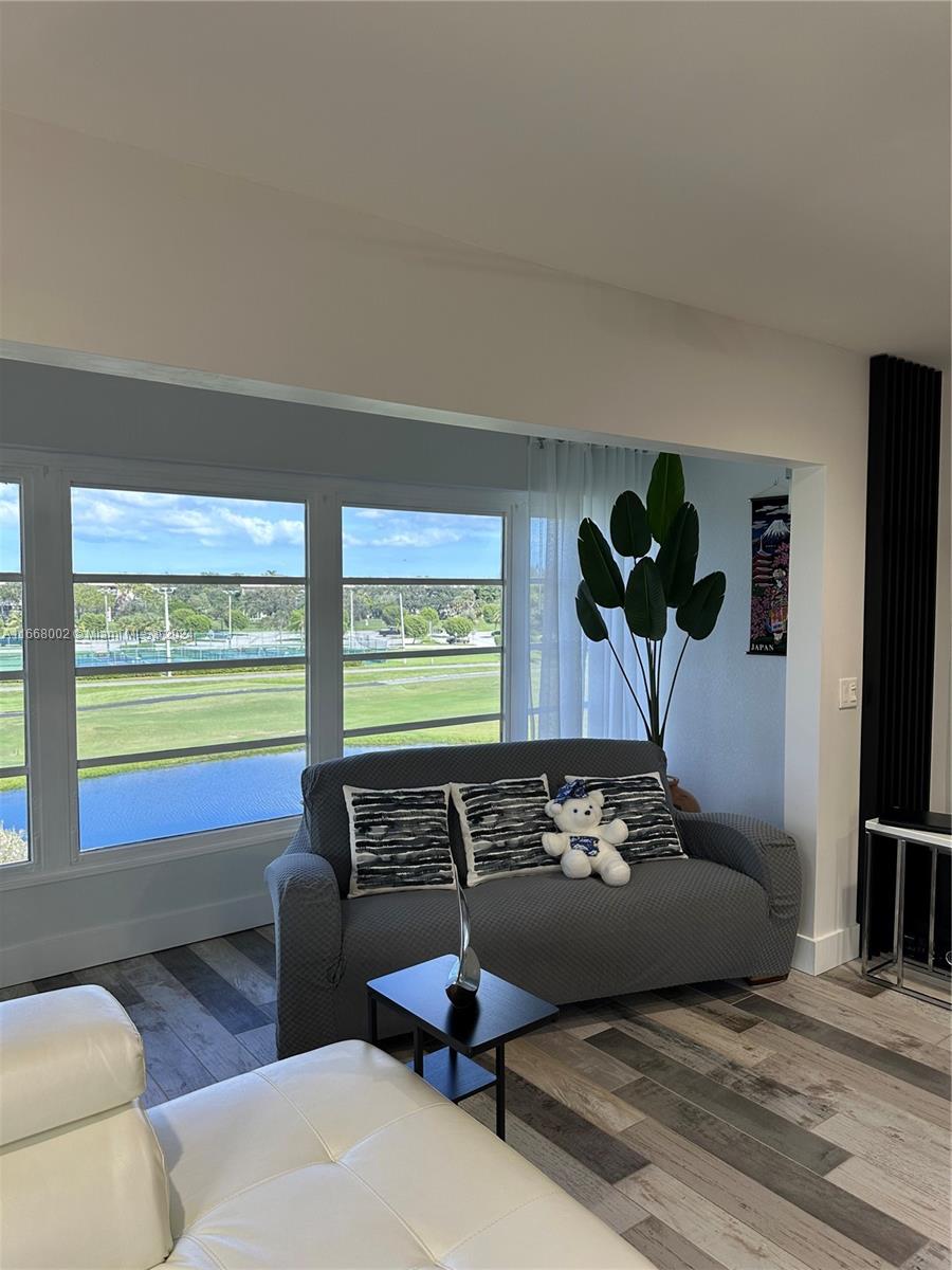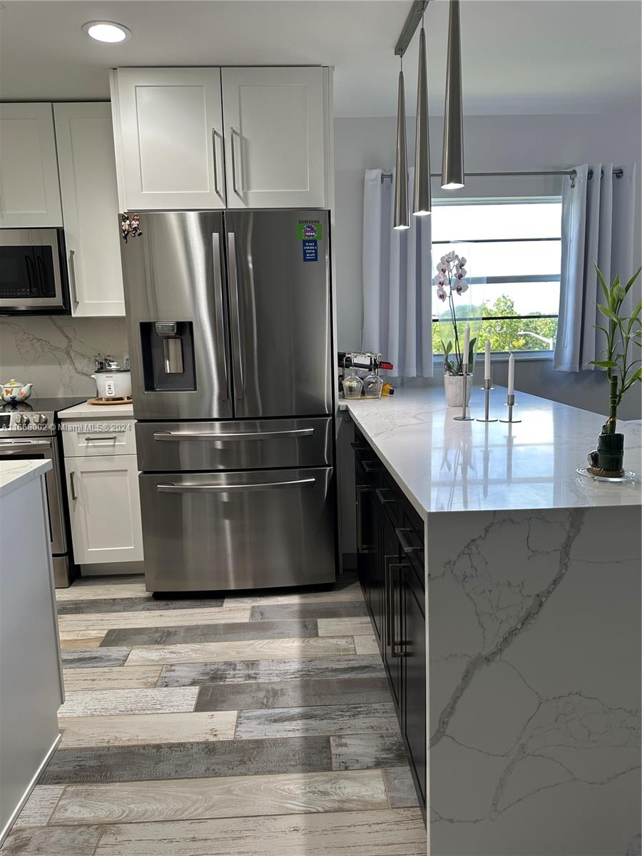 SPECTACULAR APARTMENT!!! The most upgraded home in the complex—and likely all of Pembroke Pines! This spacious 2/2 + den impresses with high-end finishes. From the elegant entry door to the pristine all-white interior with dark trim and custom wood accents, this home exudes sophistication. Features include recessed LED lighting with smart app control, luxury ceiling fans, high-grade wood-look porcelain floors, LG washer/dryer, Trane A/C (2020) with smart thermostat, Rheem tankless water heater, upgraded baths with frameless glass, quartz vanities, and smart humidity sensors, plus a chef’s kitchen with quartz counters, Samsung appliances, and waterfall island. With accordion hurricane shutters and cutting-edge technology, this home is the perfect blend of luxury and convenience.
