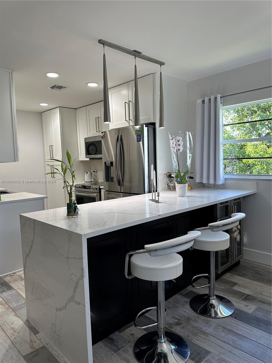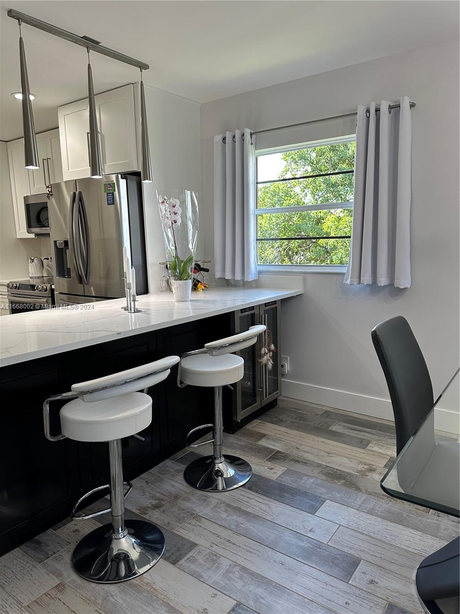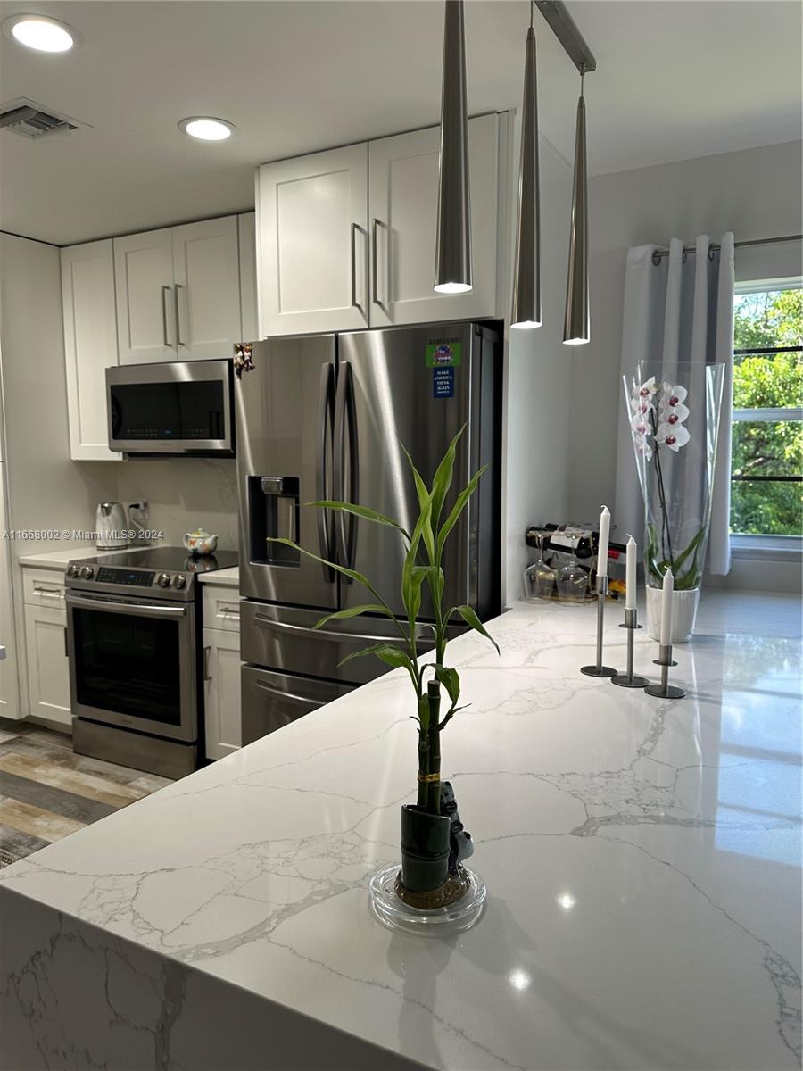 SPECTACULAR APARTMENT!!! The most upgraded home in the complex—and likely all of Pembroke Pines! This spacious 2/2 + den impresses with high-end finishes. From the elegant entry door to the pristine all-white interior with dark trim and custom wood accents, this home exudes sophistication. Features include recessed LED lighting with smart app control, luxury ceiling fans, high-grade wood-look porcelain floors, LG washer/dryer, Trane A/C (2020) with smart thermostat, Rheem tankless water heater, upgraded baths with frameless glass, quartz vanities, and smart humidity sensors, plus a chef’s kitchen with quartz counters, Samsung appliances, and waterfall island. With accordion hurricane shutters and cutting-edge technology, this home is the perfect blend of luxury and convenience.