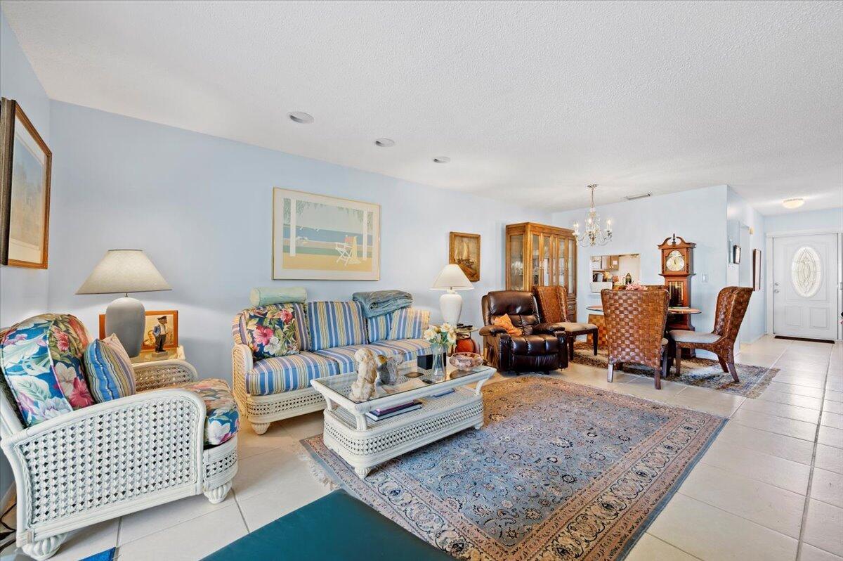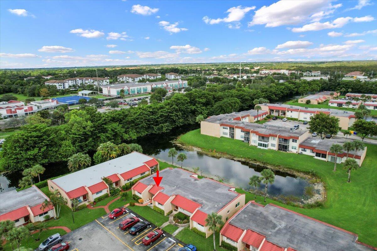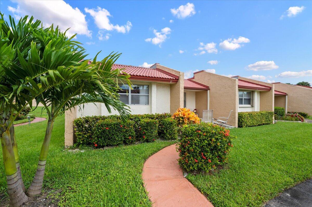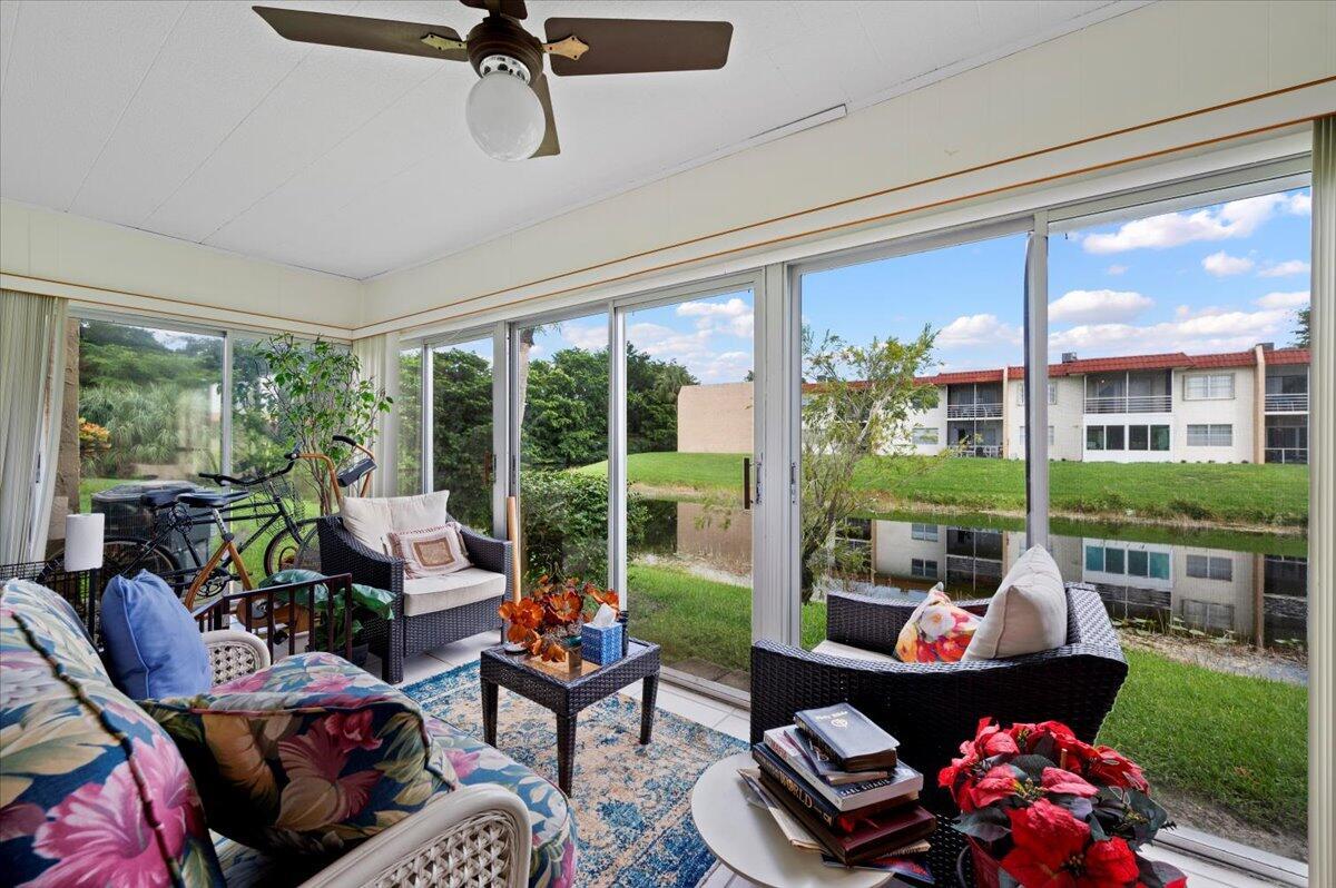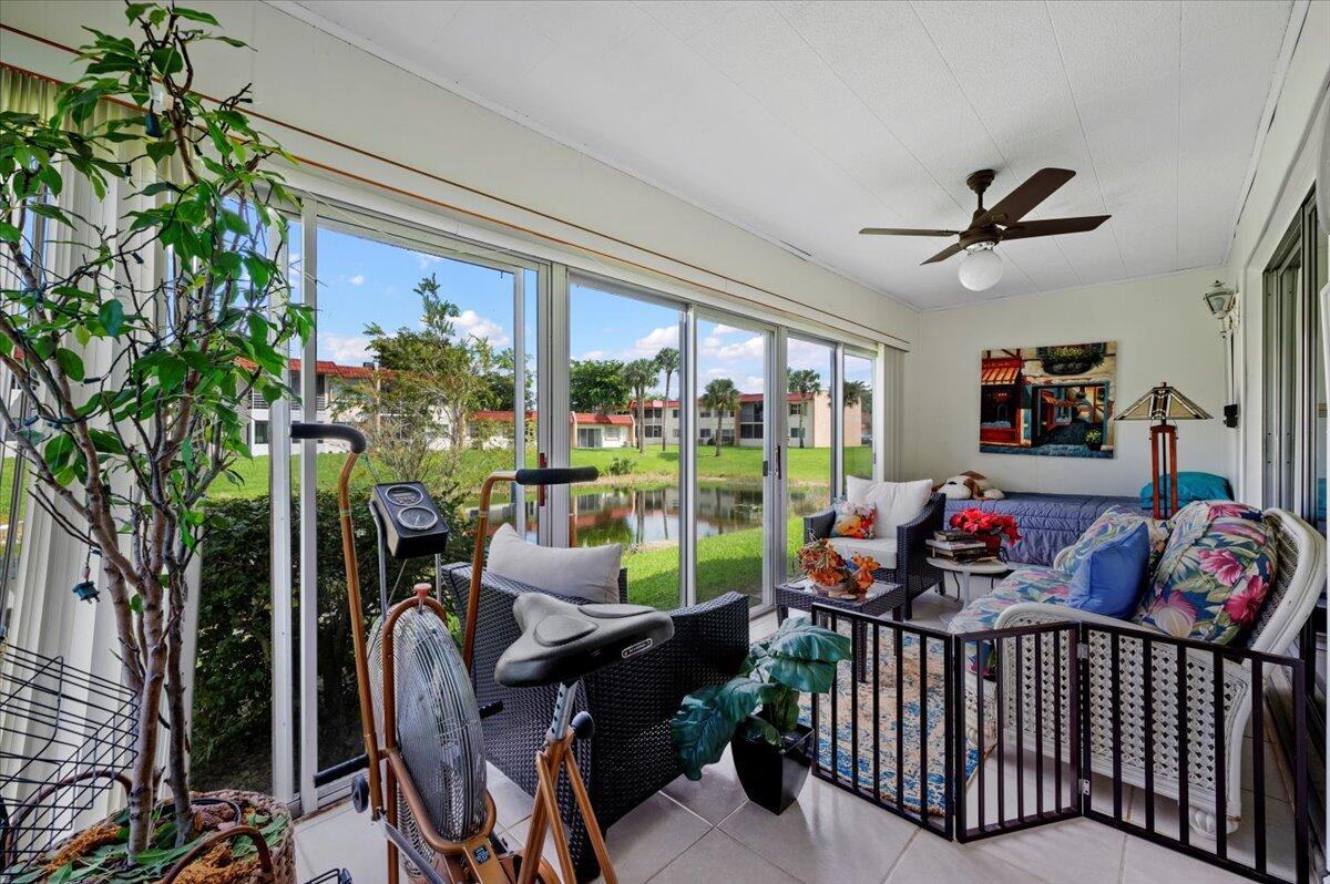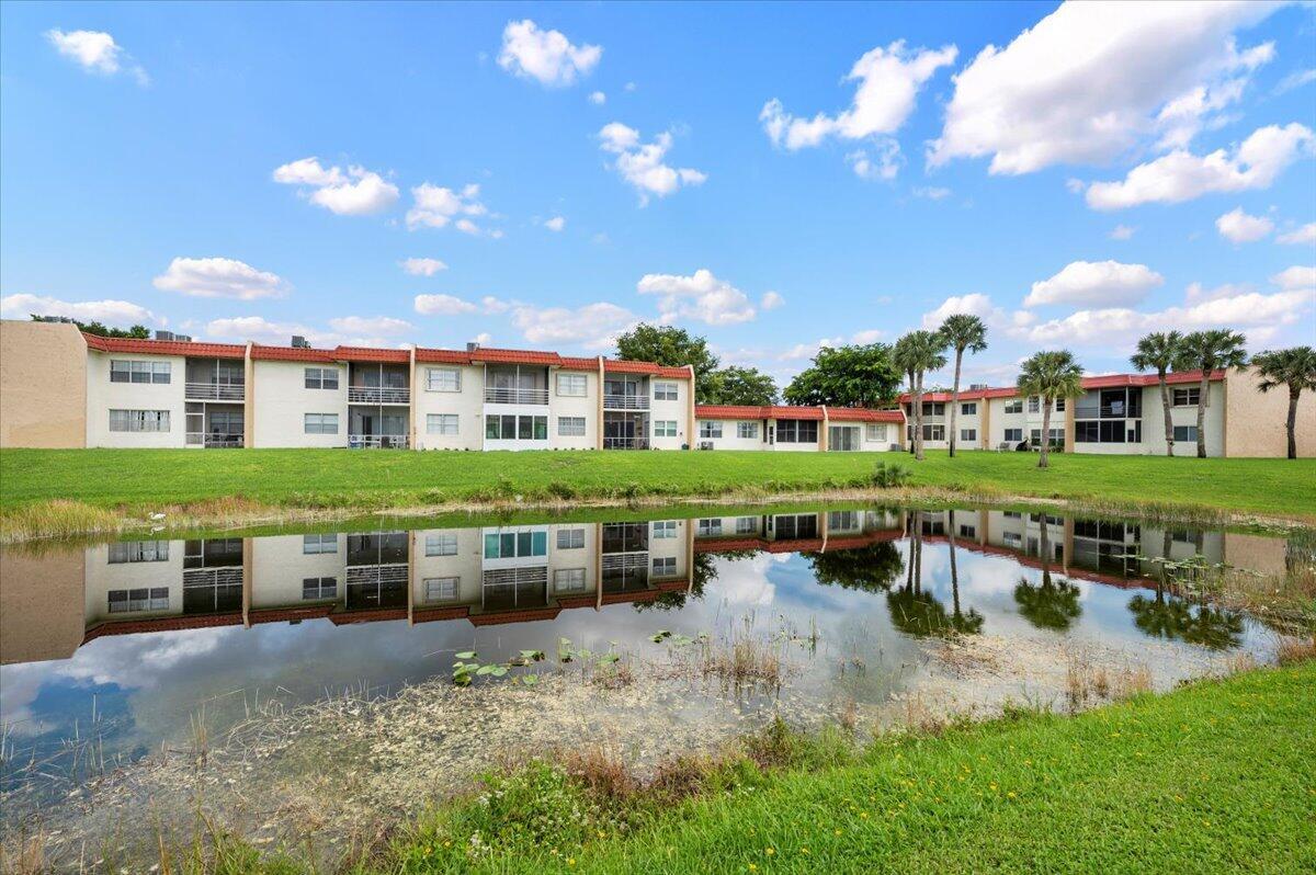 This 2-bedroom, 2-bath corner first-floor villa in the 55+ guard-gated Golden Lakes community offers stunning water views from your private patio. Enjoy Florida nature from the spacious 21.5 x 7.5 enclosed patio with sliders, perfect for relaxing or entertaining. Tile flooring runs throughout, with carpeting in the bedrooms. The living room features recessed lighting, and the front door includes a Phantom screen for added airflow. Convenient access to washers/dryers in the nearby laundry building. Two indoor pets are allowed, and a courtesy bus runs twice a week to local shops and malls.Situated in a tranquil, park-like setting with lake views, this villa is just steps from the largest satellite community pool with no through traffic.