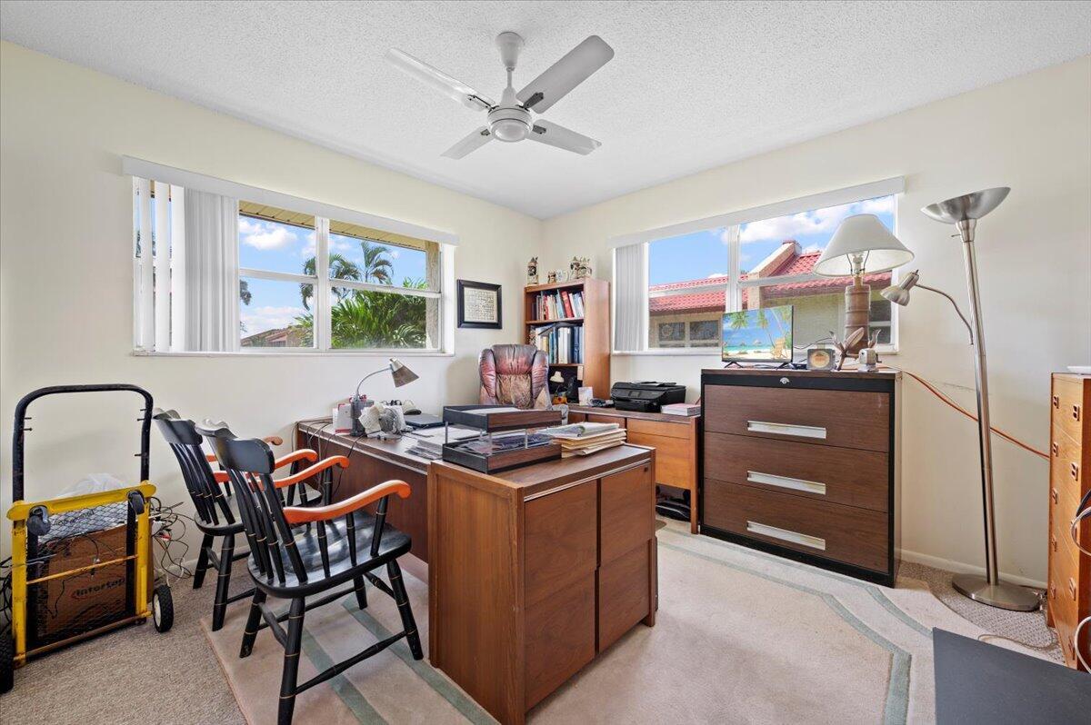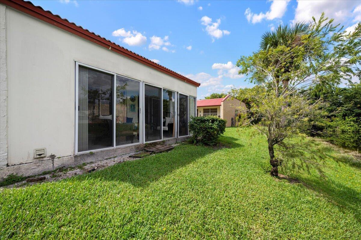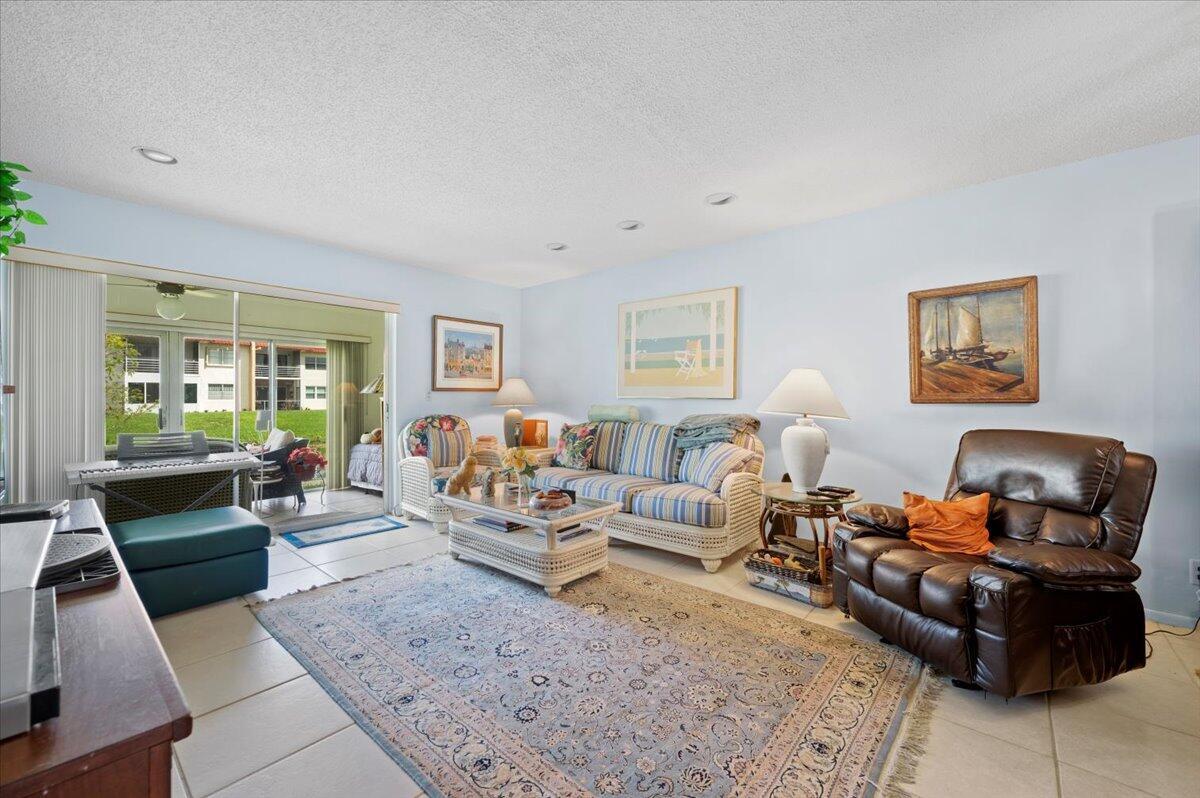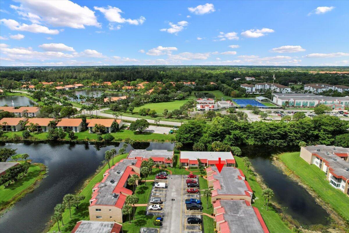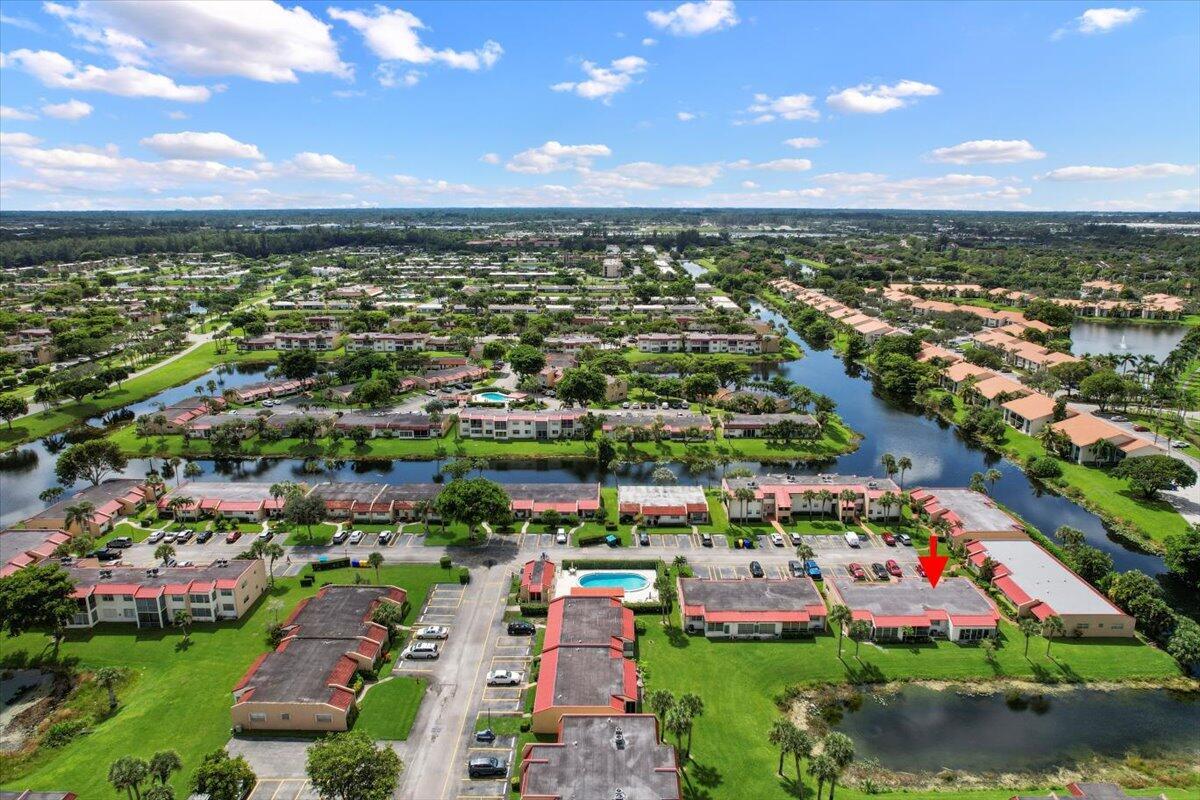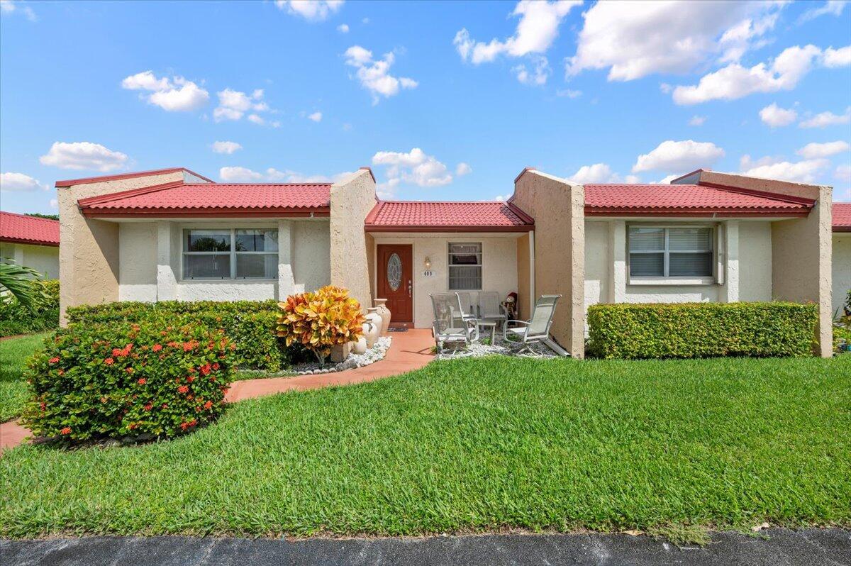 This 2-bedroom, 2-bath corner first-floor villa in the 55+ guard-gated Golden Lakes community offers stunning water views from your private patio. Enjoy Florida nature from the spacious 21.5 x 7.5 enclosed patio with sliders, perfect for relaxing or entertaining. Tile flooring runs throughout, with carpeting in the bedrooms. The living room features recessed lighting, and the front door includes a Phantom screen for added airflow. Convenient access to washers/dryers in the nearby laundry building. Two indoor pets are allowed, and a courtesy bus runs twice a week to local shops and malls.Situated in a tranquil, park-like setting with lake views, this villa is just steps from the largest satellite community pool with no through traffic.
