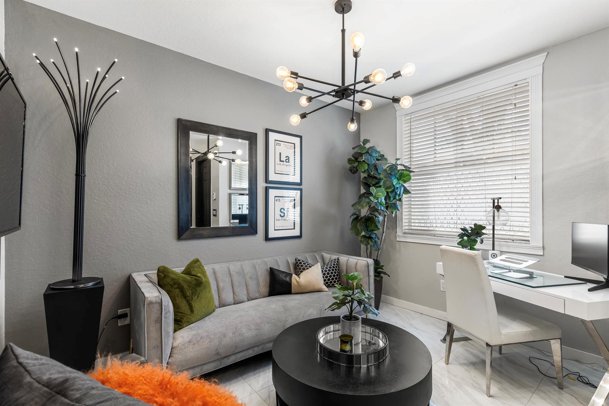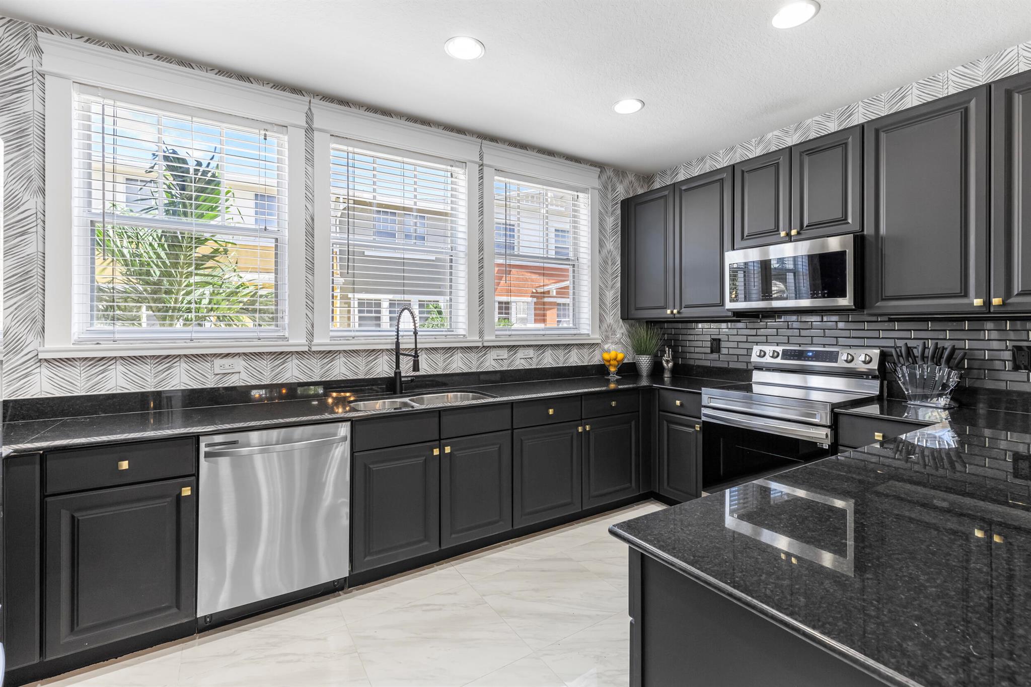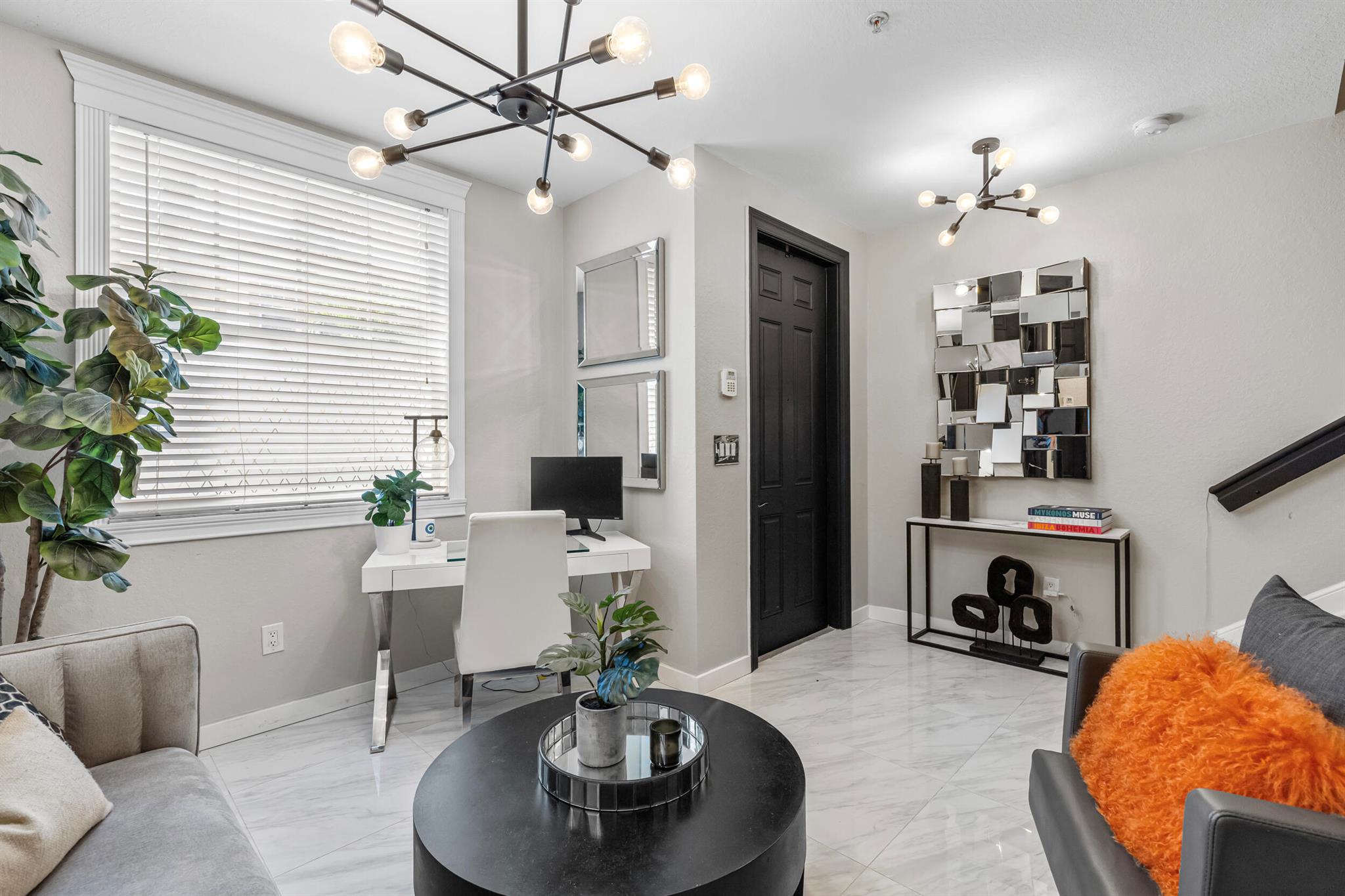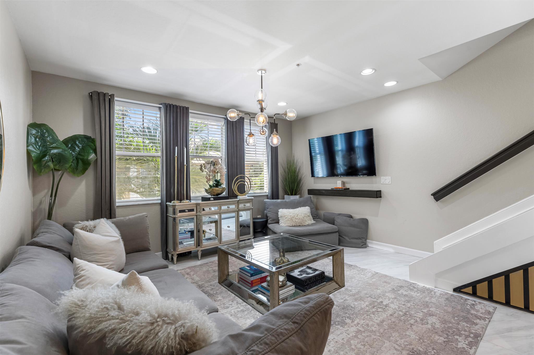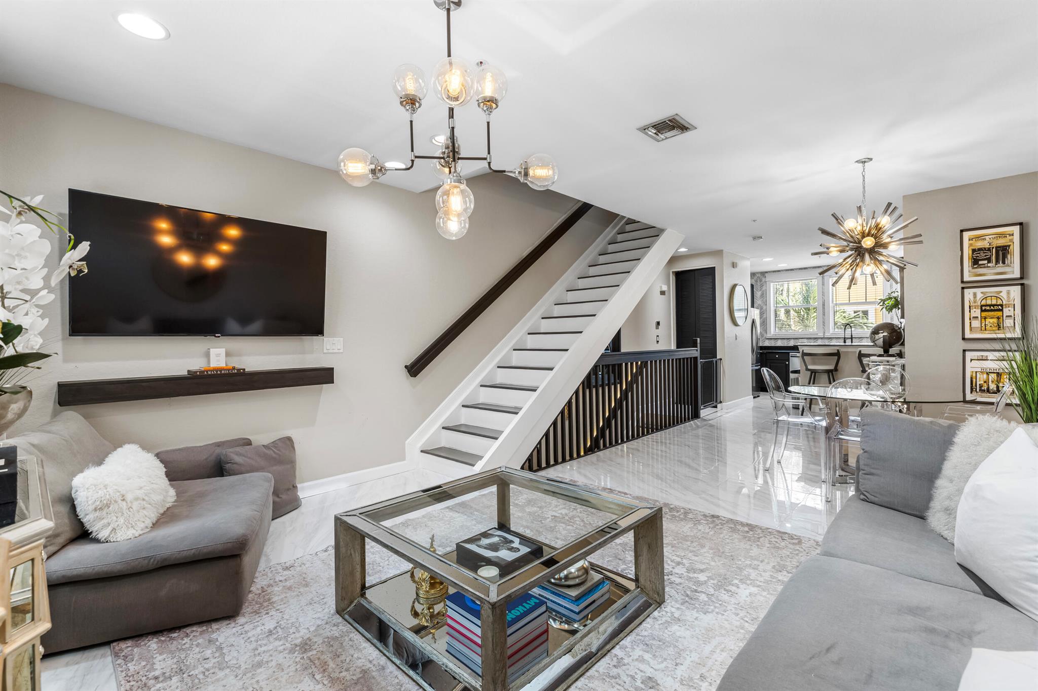 Don't miss this opportunity to own a stunning 2-bedroom + den, 3-bathroom townhome in the heart of West Palm Beach! Located in a secure gated community, this home boasts newly installed porcelain tile on both the first and second floors, a kitchen outfitted with brand-new appliances, and stylish designer lighting throughout. The HVAC system and stacked washer/dryer were both replaced within the past year. This Beautiful home is walking distance to the communities' amenities which feature a resort style pool and fitness rooms. Close proximity to top-rated charter and magnet schools, with Palm Beach Outlets just a mile away for all your shopping needs!