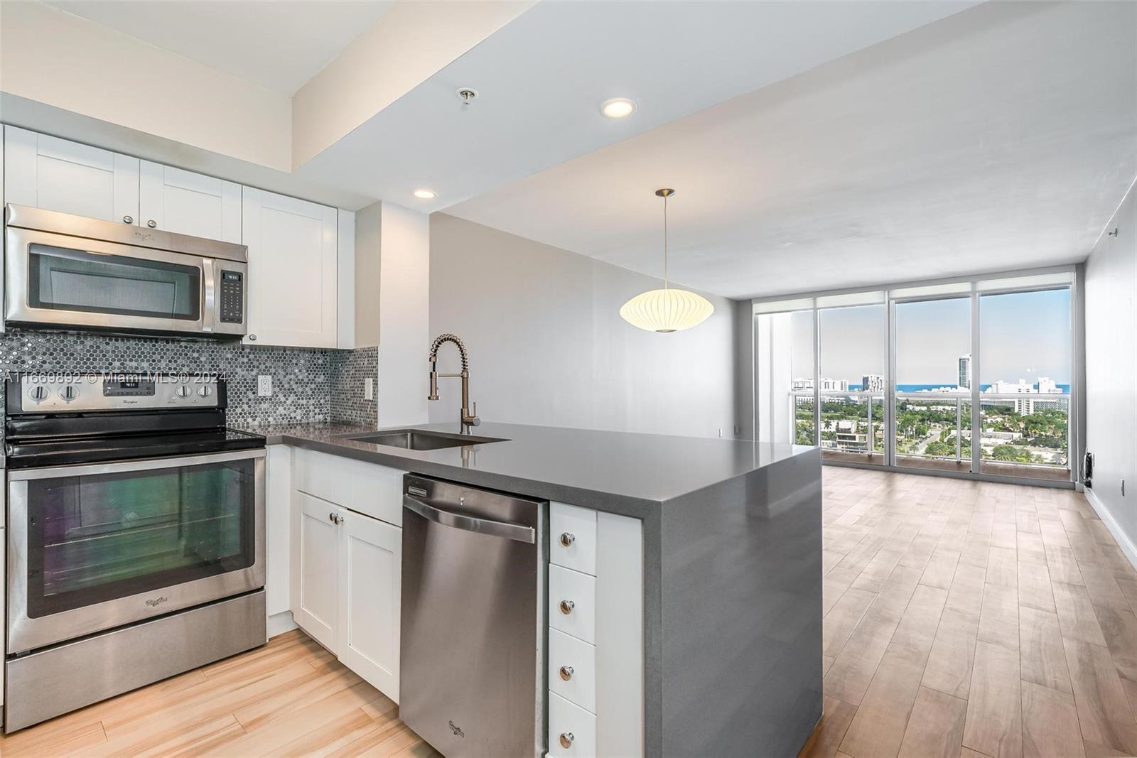 Best deal 1 Bd 1.5 Bath rarely available high floor unit in trendy Sunset Harbour. Completely renovated. Open kitchen with new cabinets & stainless-steel appliances, quartz countertops. Porcelain wood floors, Two closets, bath w/ Jacuzzi, shower & bidet, new cabinets, quartz countertop. W/D. Balcony w/unobstructed views of South Beach to the Ocean. Floor to ceiling glass doors. Full-service building, pool & hot tube overlooking the Bay, Gym, sauna, clubhouse, Concierge, Security 24/7. Valet, Parking, EV stations, bike & paddle racks, Bay Walk. Steps from upscale markets, restaurants, coffee shops, boutiques & gyms. Marina at your doorstep. Walk to New World Symphony, Lincoln Rd, beaches, golf, theatres & Conv Center. Seller will pay special assessment at closing. Owner financing available.