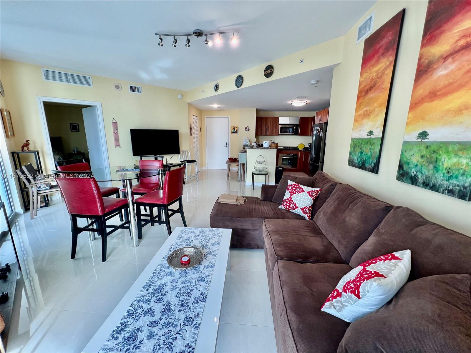 Best line in the building! Spacious 2BD/2BA condo, huge balcony offering stunning views of the bay and ocean. East exposure. Features elegant tile floors throughout. Located in the sophisticated Met 1 building in downtown Miami. Sliding doors in all rooms make it a very bright residence with views from every angle. Open kitchen with granite countertops, Italian cabinetry & stainless steel appliances. Electric shades in the living room. Newer washer and dryer. One assigned parking space. Walk to Whole Foods Market, Bayfront Park, metro mover, Novikov Restaurant, Gordon Ramsay Hell's Kitchen, Joe & the Juice plus 17 screens' Silverspot Cinema at Met Square. Building offers luxurious life style, 24-hr front desk attended. Chic downtown living at its best! Pool is closed for repairs.