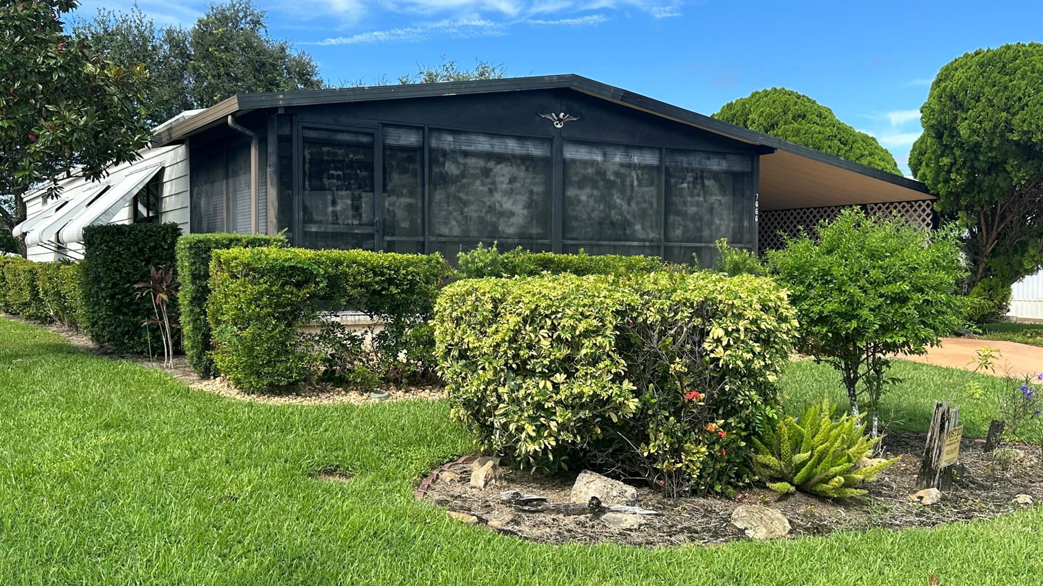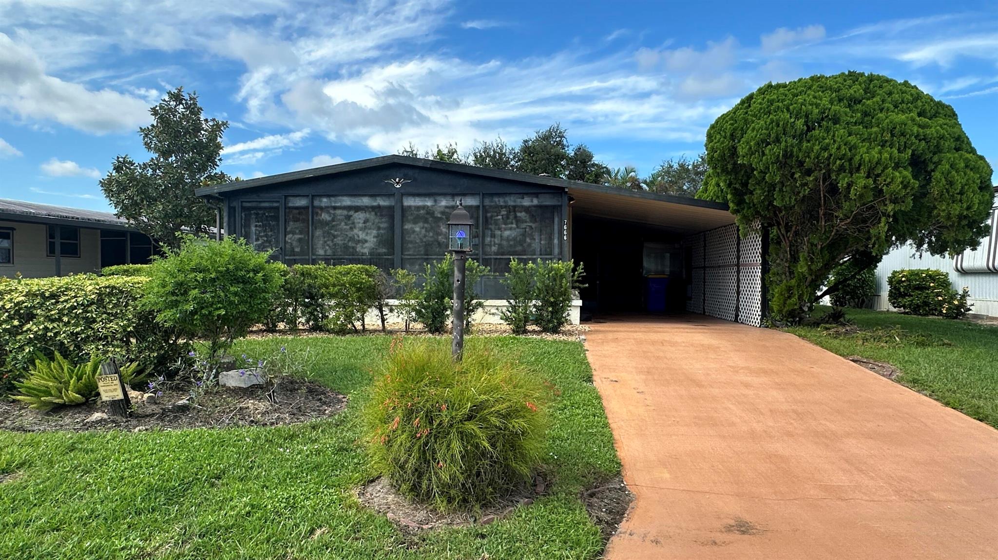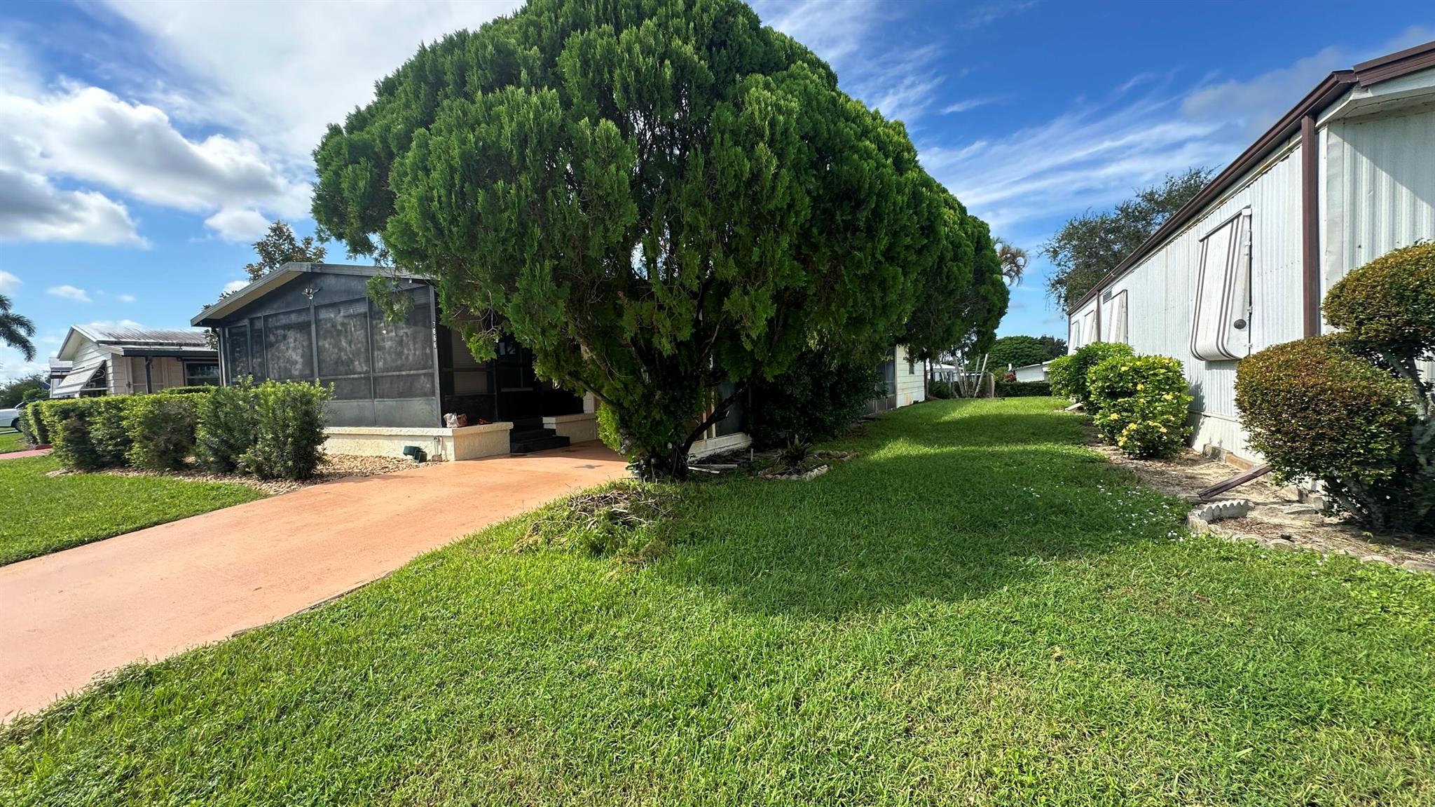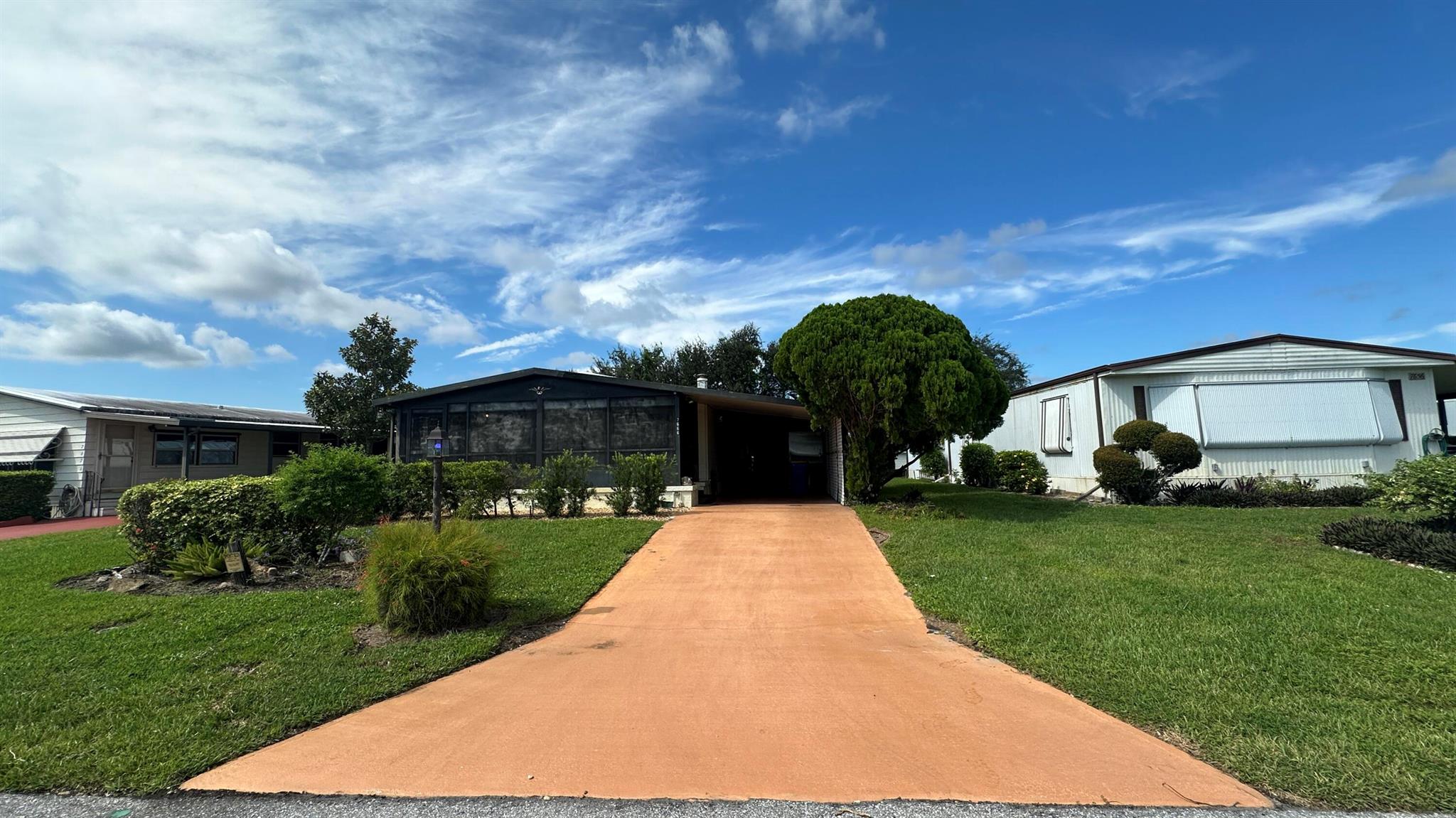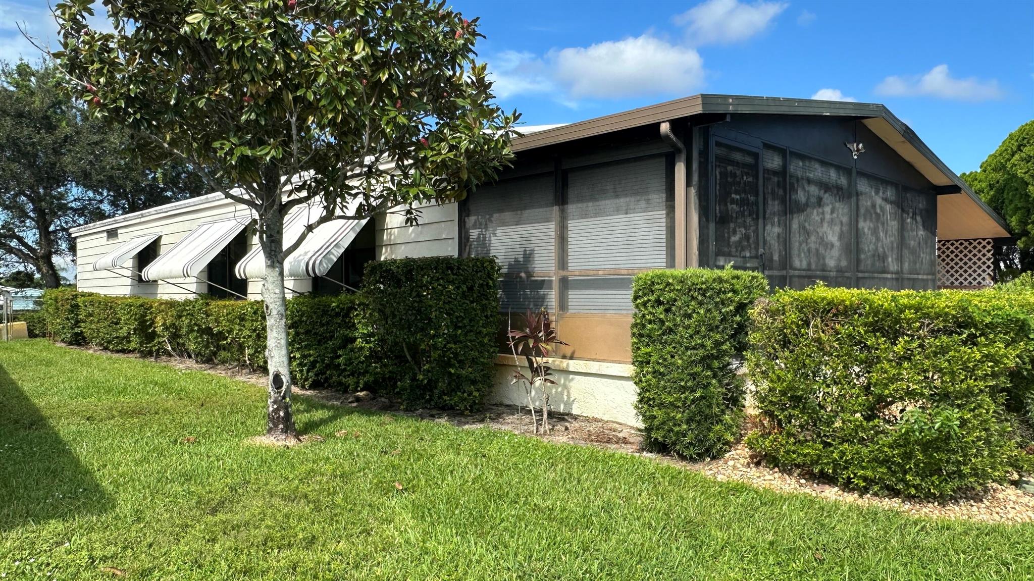 Lovely 2 Bedrm/2 Bath Manuf home in Cambridge 55+ community in Hobe Sound. REAL WOODBURNING FIREPLACE for occasional chilly nights. 1254 SF under A/C w 2 ADDITIONAL SCREEN ROOMS for your pleasure w roll down shutters! 2023 New Flooring in Kitchen, dining room & Primary Bedrm & bath. The Living Room is very large (13X23) w the formal Dining Room adjacent. The Kitchen is also large with newer Stainless appliances. The Primary Bedroom is large w so much storage. Primary bathroom has dual sinks, make up vanity, walk in closet & 2 additional closets & step in shower. The 2nd Bedrm is a good side w a walk in closet & full bath on the hall. The Front Lanai faces east for the morning sun & those famous Hobe Sound Breezes. YOU OWN THE LAND - ALL PETS WELCOME. 2017 3 TON A/C - 2005 AMS Aluminum Ro