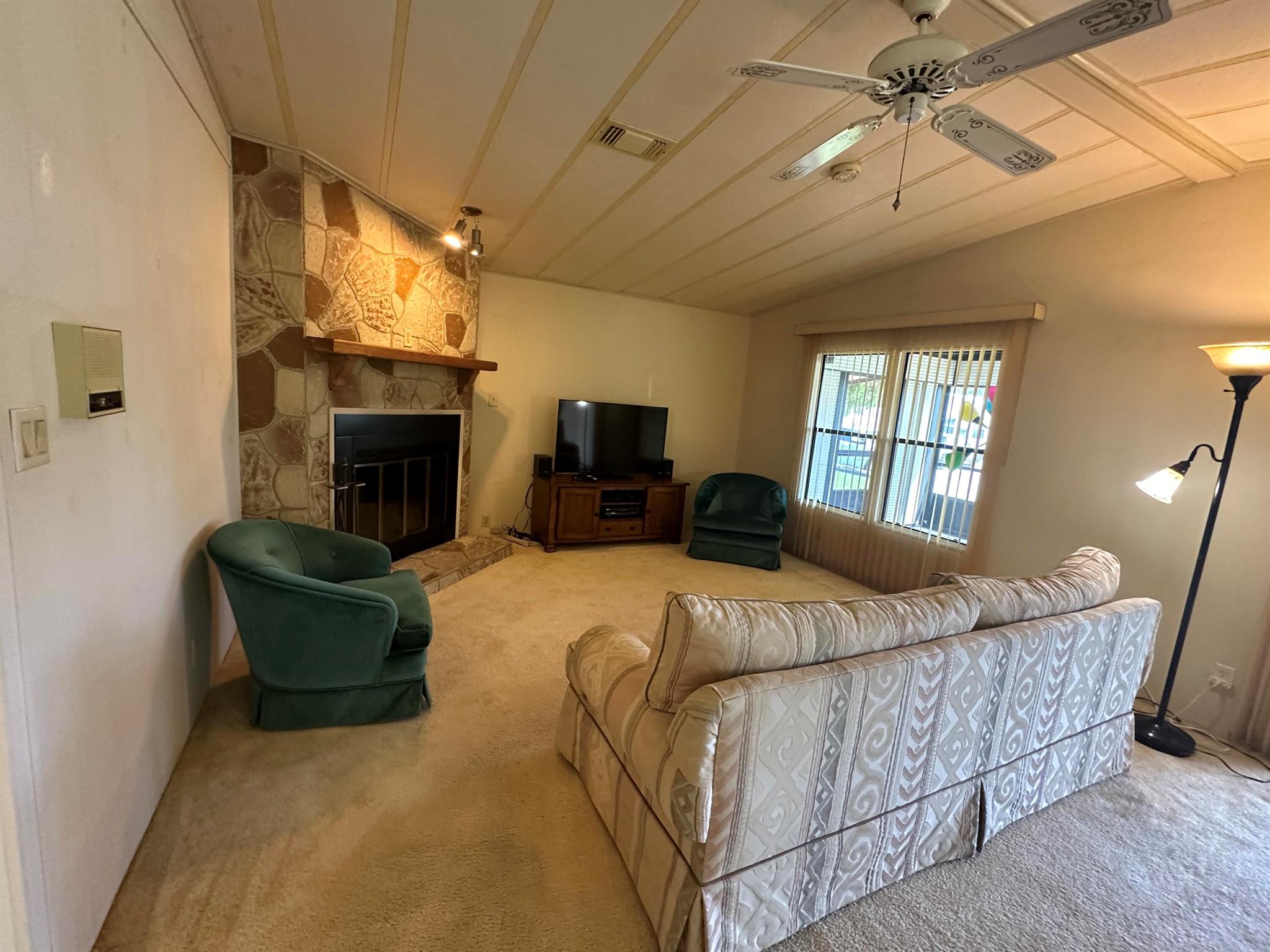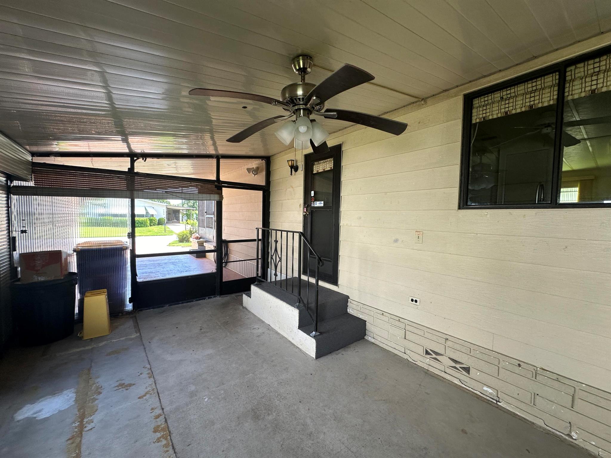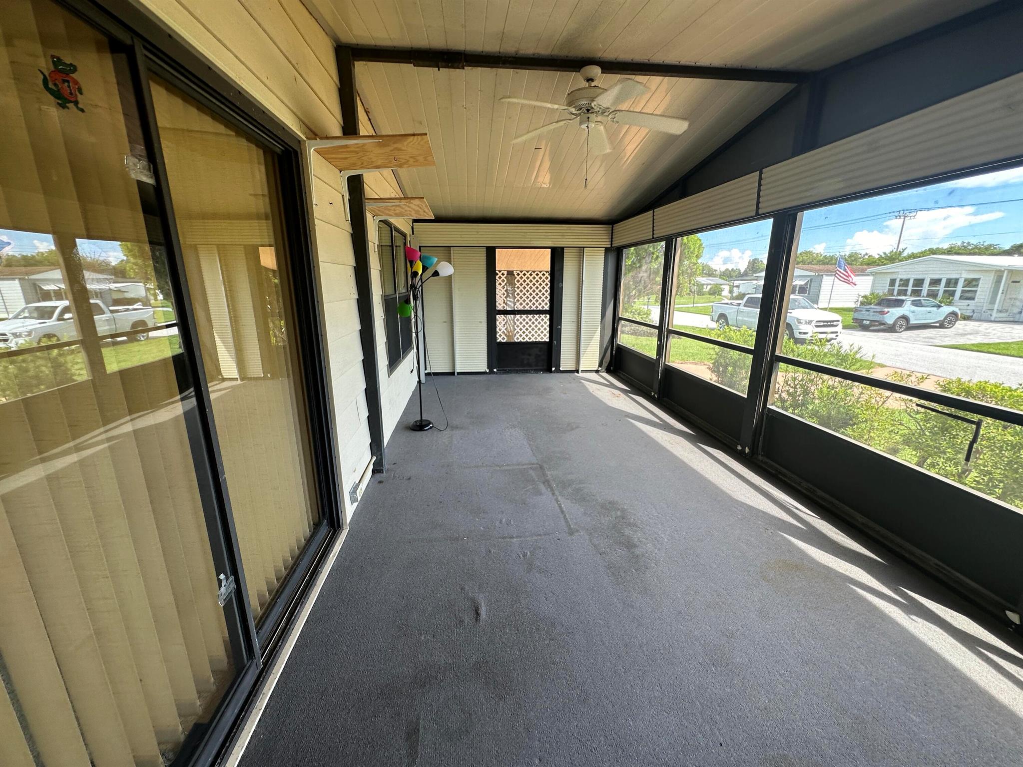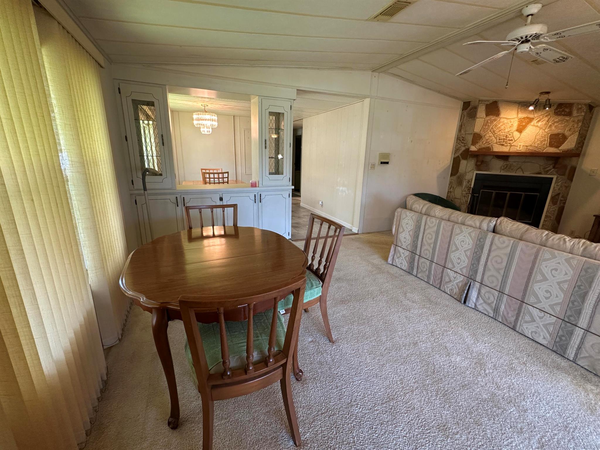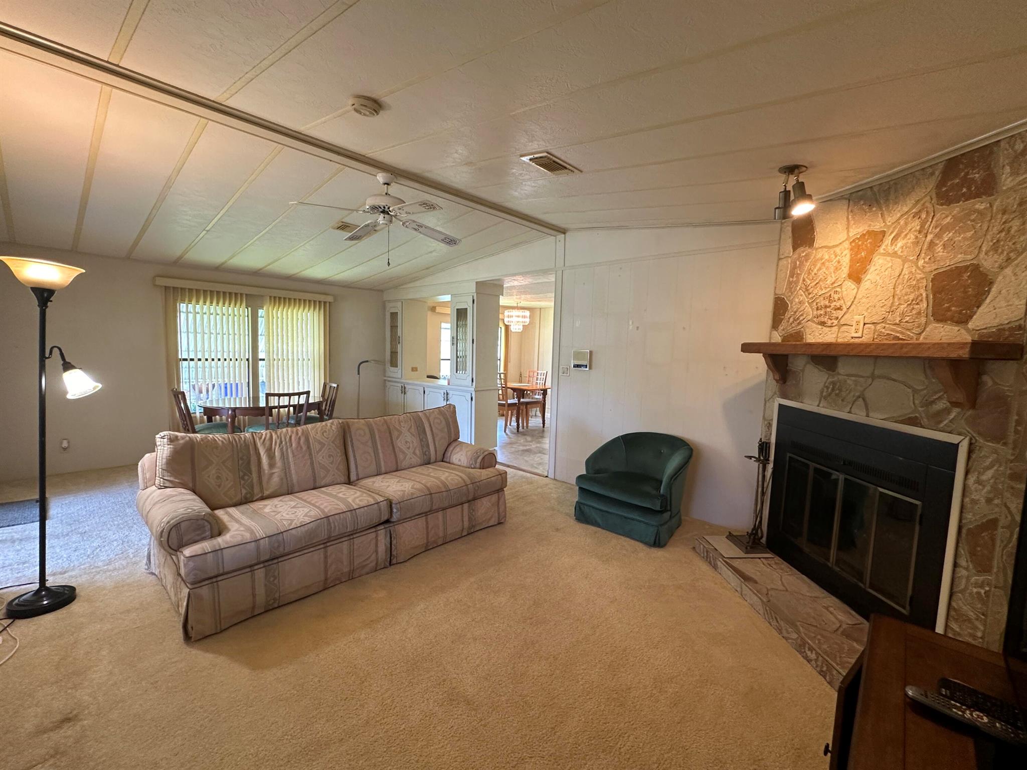 Lovely 2 Bedrm/2 Bath Manuf home in Cambridge 55+ community in Hobe Sound. REAL WOODBURNING FIREPLACE for occasional chilly nights. 1254 SF under A/C w 2 ADDITIONAL SCREEN ROOMS for your pleasure w roll down shutters! 2023 New Flooring in Kitchen, dining room & Primary Bedrm & bath. The Living Room is very large (13X23) w the formal Dining Room adjacent. The Kitchen is also large with newer Stainless appliances. The Primary Bedroom is large w so much storage. Primary bathroom has dual sinks, make up vanity, walk in closet & 2 additional closets & step in shower. The 2nd Bedrm is a good side w a walk in closet & full bath on the hall. The Front Lanai faces east for the morning sun & those famous Hobe Sound Breezes. YOU OWN THE LAND - ALL PETS WELCOME. 2017 3 TON A/C - 2005 AMS Aluminum Ro