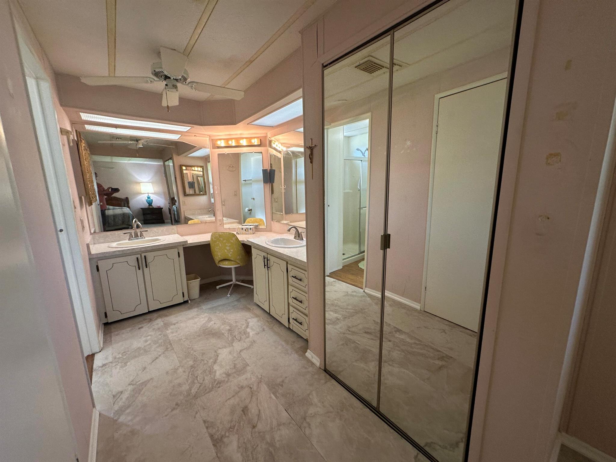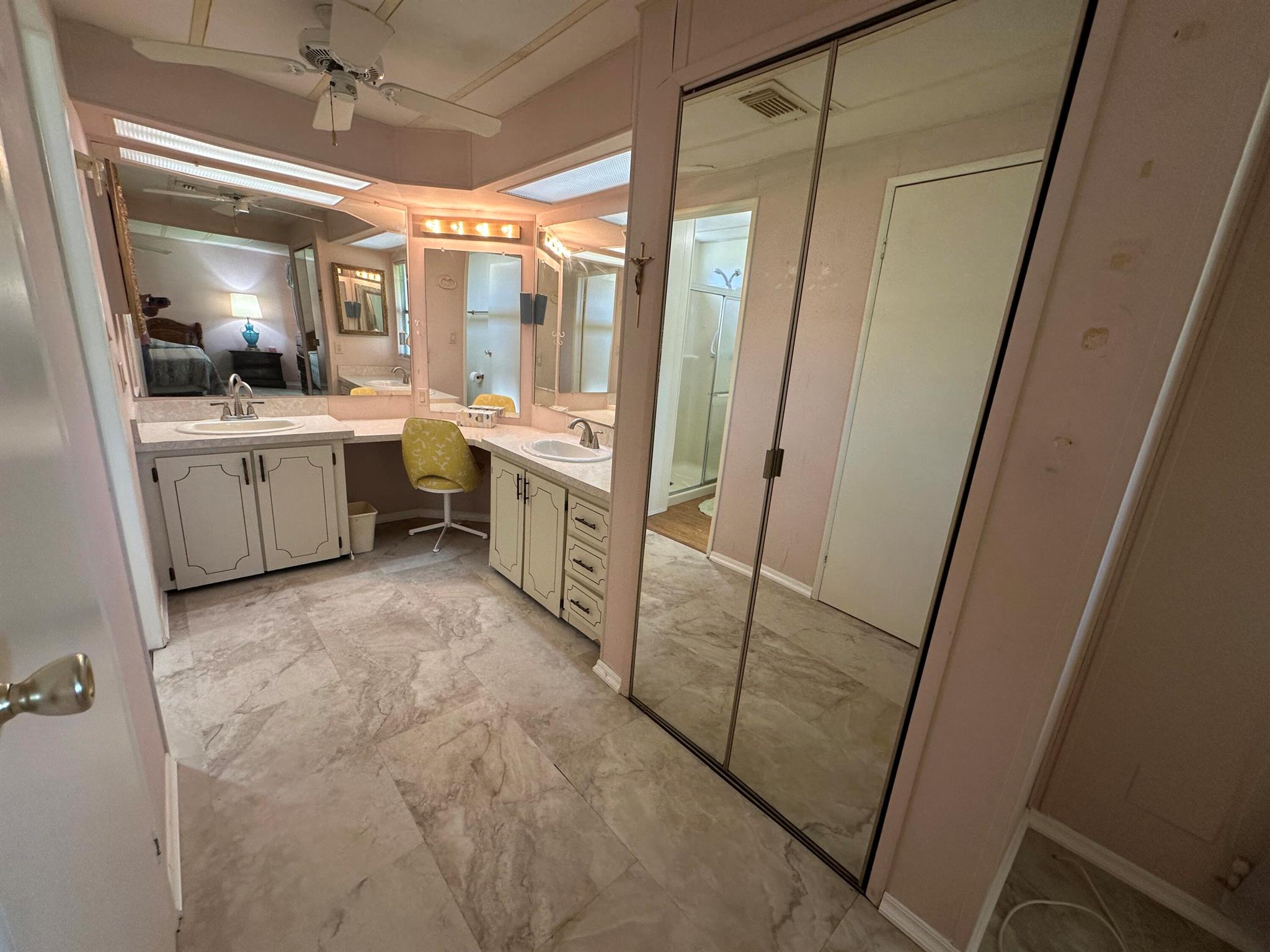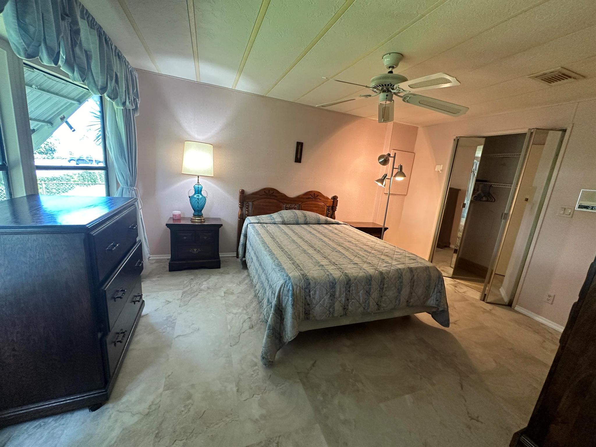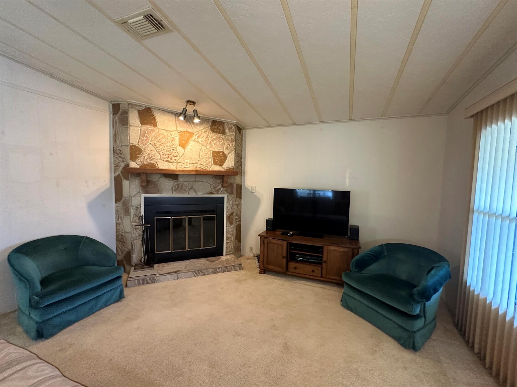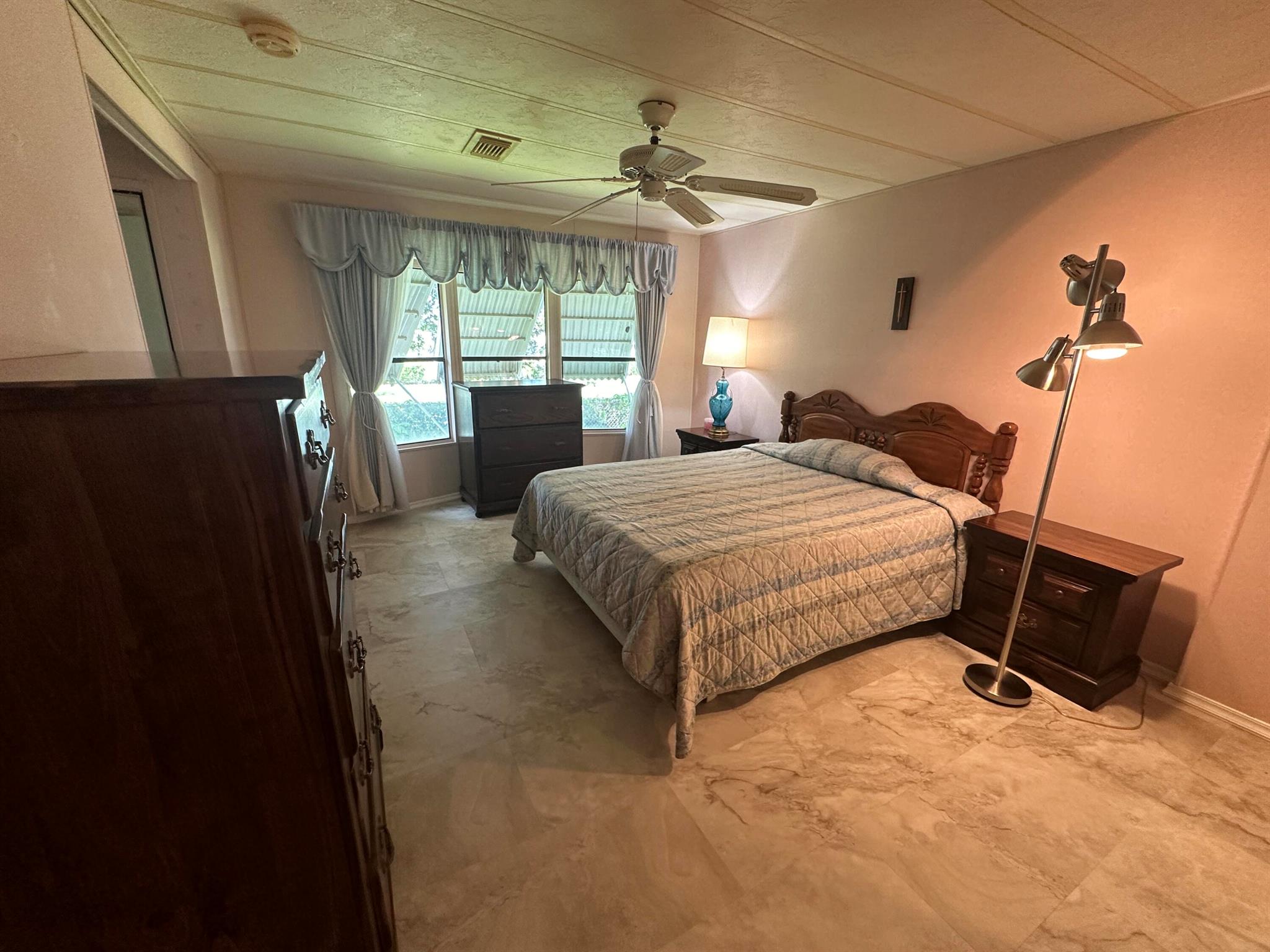 Lovely 2 Bedrm/2 Bath Manuf home in Cambridge 55+ community in Hobe Sound. REAL WOODBURNING FIREPLACE for occasional chilly nights. 1254 SF under A/C w 2 ADDITIONAL SCREEN ROOMS for your pleasure w roll down shutters! 2023 New Flooring in Kitchen, dining room & Primary Bedrm & bath. The Living Room is very large (13X23) w the formal Dining Room adjacent. The Kitchen is also large with newer Stainless appliances. The Primary Bedroom is large w so much storage. Primary bathroom has dual sinks, make up vanity, walk in closet & 2 additional closets & step in shower. The 2nd Bedrm is a good side w a walk in closet & full bath on the hall. The Front Lanai faces east for the morning sun & those famous Hobe Sound Breezes. YOU OWN THE LAND - ALL PETS WELCOME. 2017 3 TON A/C - 2005 AMS Aluminum Ro