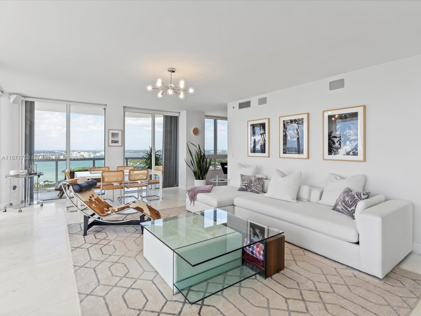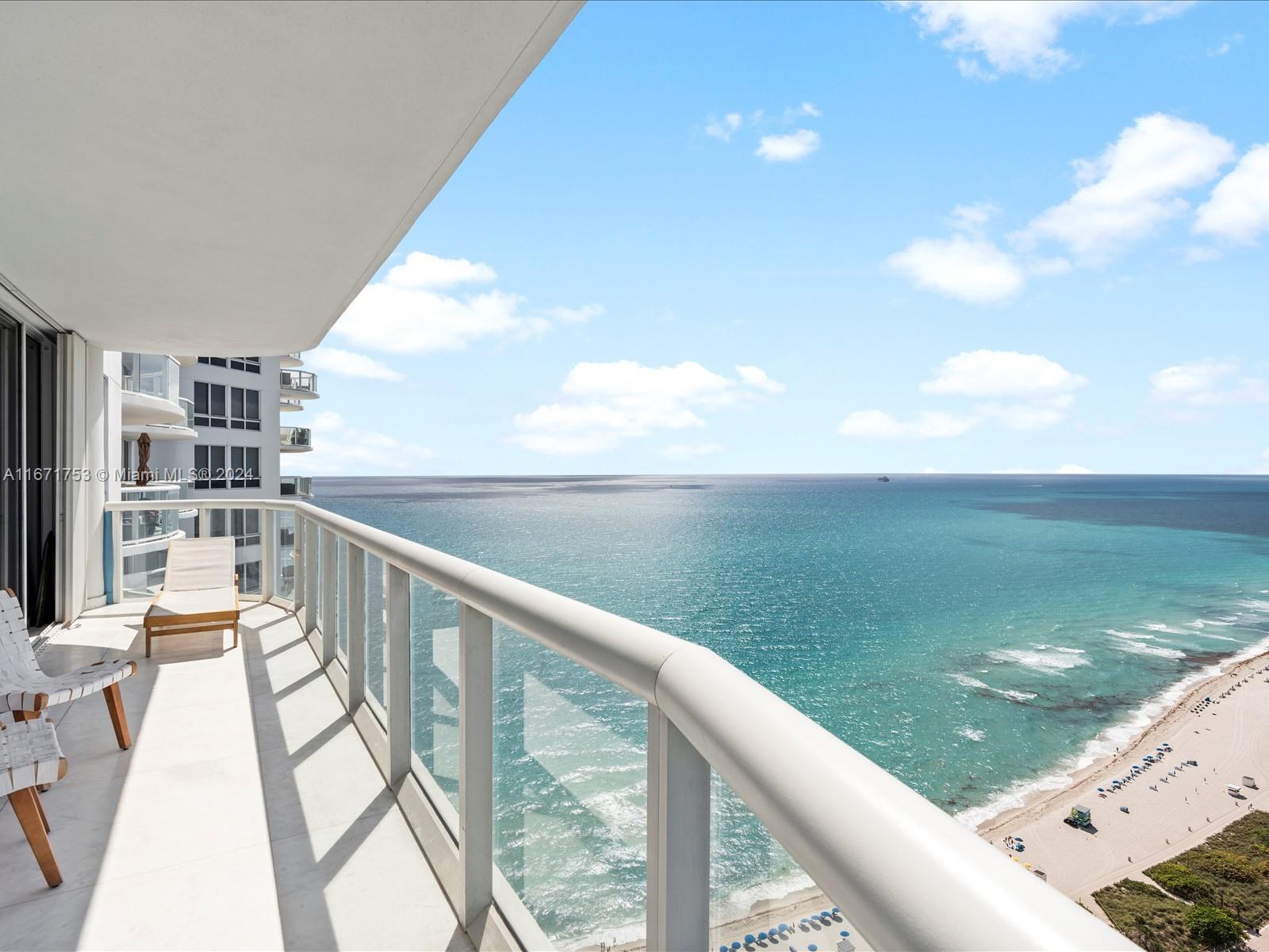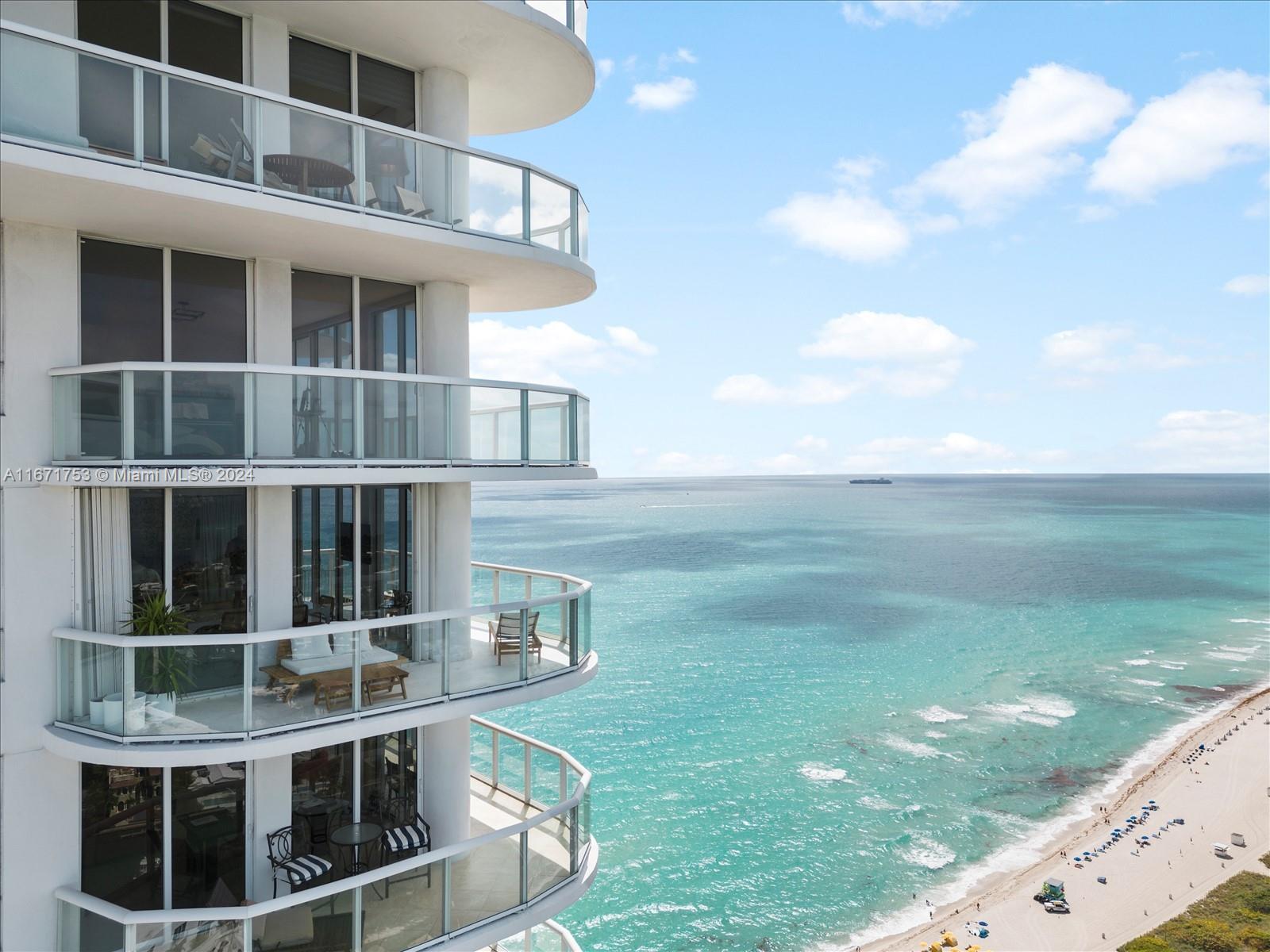 Magnificent views of the ocean, intracoastal and Downtown Miami. Astonishing sunrises, amazing sunsets! Endless views as far as the eye can see characterize this exclusive oceanfront unit. Featuring white marble floors throughout, high end furnishings and a gorgeous private wrap around balcony with glass railings, floor to ceiling windows and sliding glass doors. The luxurious primary suite, highlighting the tastefully just renovated bathroom, is separated from the living area by a solid glass wall. There are exquisite white silk curtains which, when closed, provides ultimate privacy. When open, beautiful panoramic views of the Atlantic Ocean and intracoastal can be enjoyed upon waking or while relaxing in bed.