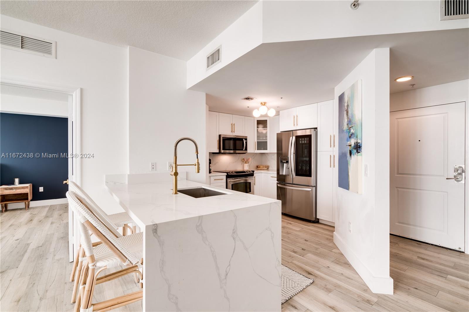 Welcome to your dream home! This exquisite 2 bedroom / 2 bath high-rise condo boasts breathtaking views of the bay, offering a serene backdrop to your everyday life. With an open-concept layout, the spacious living area flows seamlessly into a completely renovated kitchen featuring sleek/new stainless steel appliances and elegant countertops and waterfall island. Enjoy resort-style amenities, including fitness center, two pools, and 24-hour concierge services, clubhouse, valet, guest parking, private marina, and more. Located just minutes from vibrant dining, shopping, and entertainment options, this condo combines luxury living with convenience. Currently tenant occupied until April 2025 . Allow 1-2 weeks for condo approval.