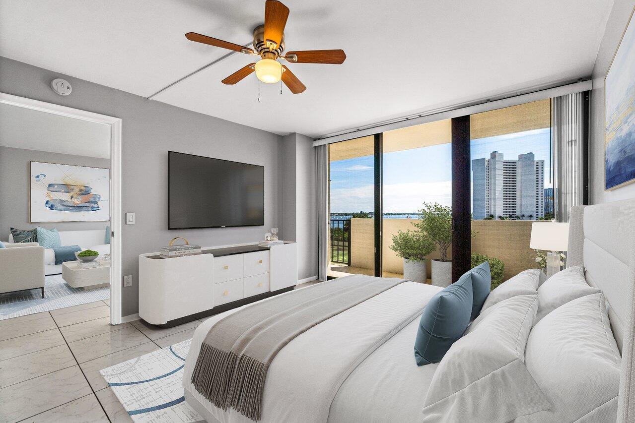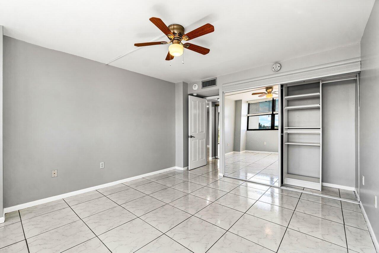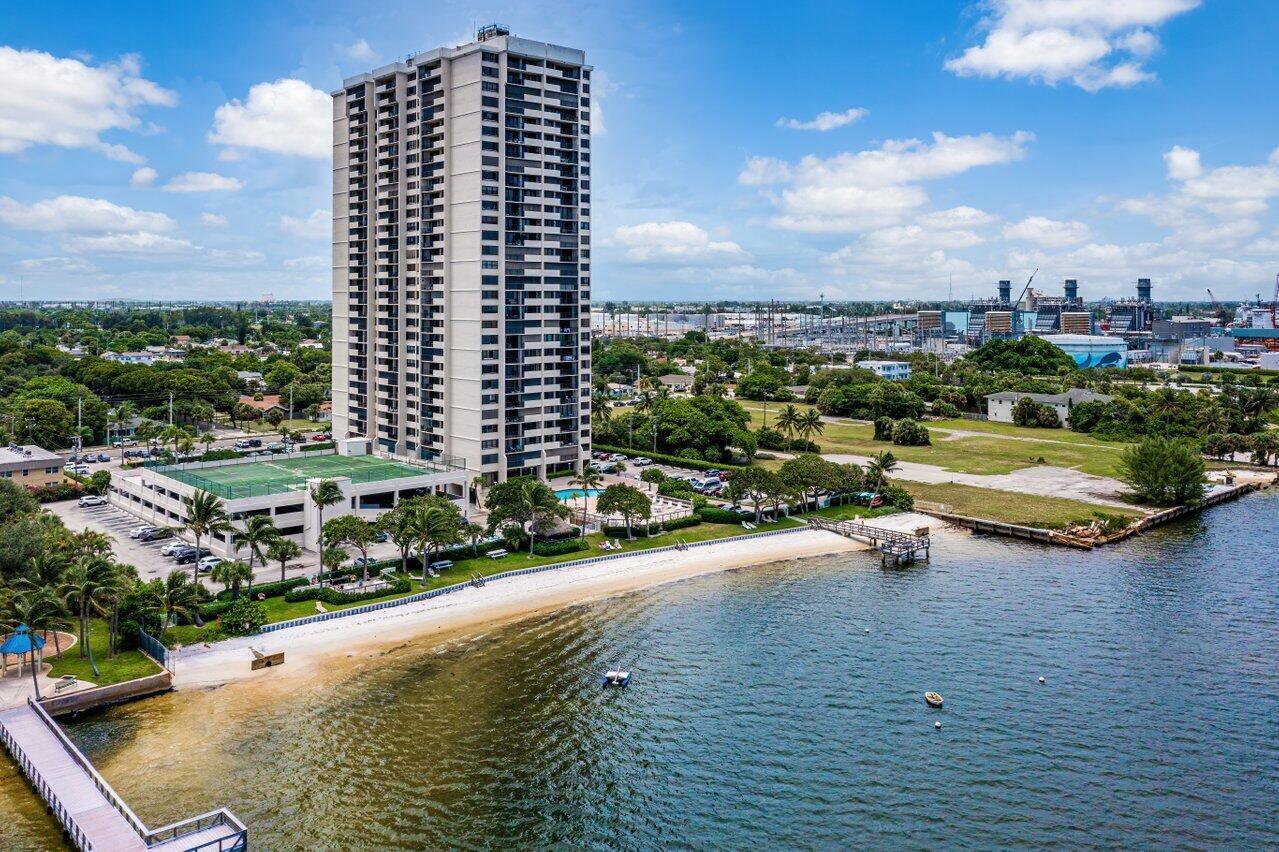 Great investment, tenant thru 7/2026. Large private beach! Updated 2BR/ 2BA condo w/large balcony & Intracoastal view! Large rooms & great living space! New interior paint, new recessed lighting, tiled floors throughout (NO CARPET), new dishwasher, ALL impact windows/sliders, foyer closet, trash chute conveniently nearby, air conditioned storage locker. Manned gated entry. Building: front desk attendant (8:30-5), lobby, activity room, 2 social rooms (1 w/catering kitchen, 1 w/wet bar), library, fitness, shower rm w sauna, pool w/waterfront sun deck, hot tub. tiki, grills, PRIVATE BEACH, pier w cleaning station, kayak/canoe ($120/yr rental). Quiet location close to waterfront dog park, flotilla club (w referral), sailing club, manatee lagoon, PBI airport, & Rybovich Marina!