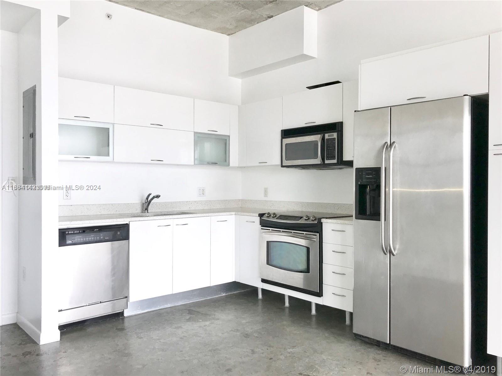 Welcome to The Loft Downtown II. This open (1) bedroom condo offers a compelling investment opportunity. Finishes include polished concrete floors, exposed concrete ceilings, terrazzo, and stainless steel. Extended balcony, large closet, washer/dryer in unit. You can lease up to 12 times per year at 30 day minimums. Take in breathtaking skyline and bay views from your private balcony. The property also features two swimming pools, a fully equipped gym, and a spacious club room. Located amidst many popular restaurants, shops, and offering easy access to the Metro-rail and Brightline, this property combines size, convenience, and prime location. Dog-friendly building.