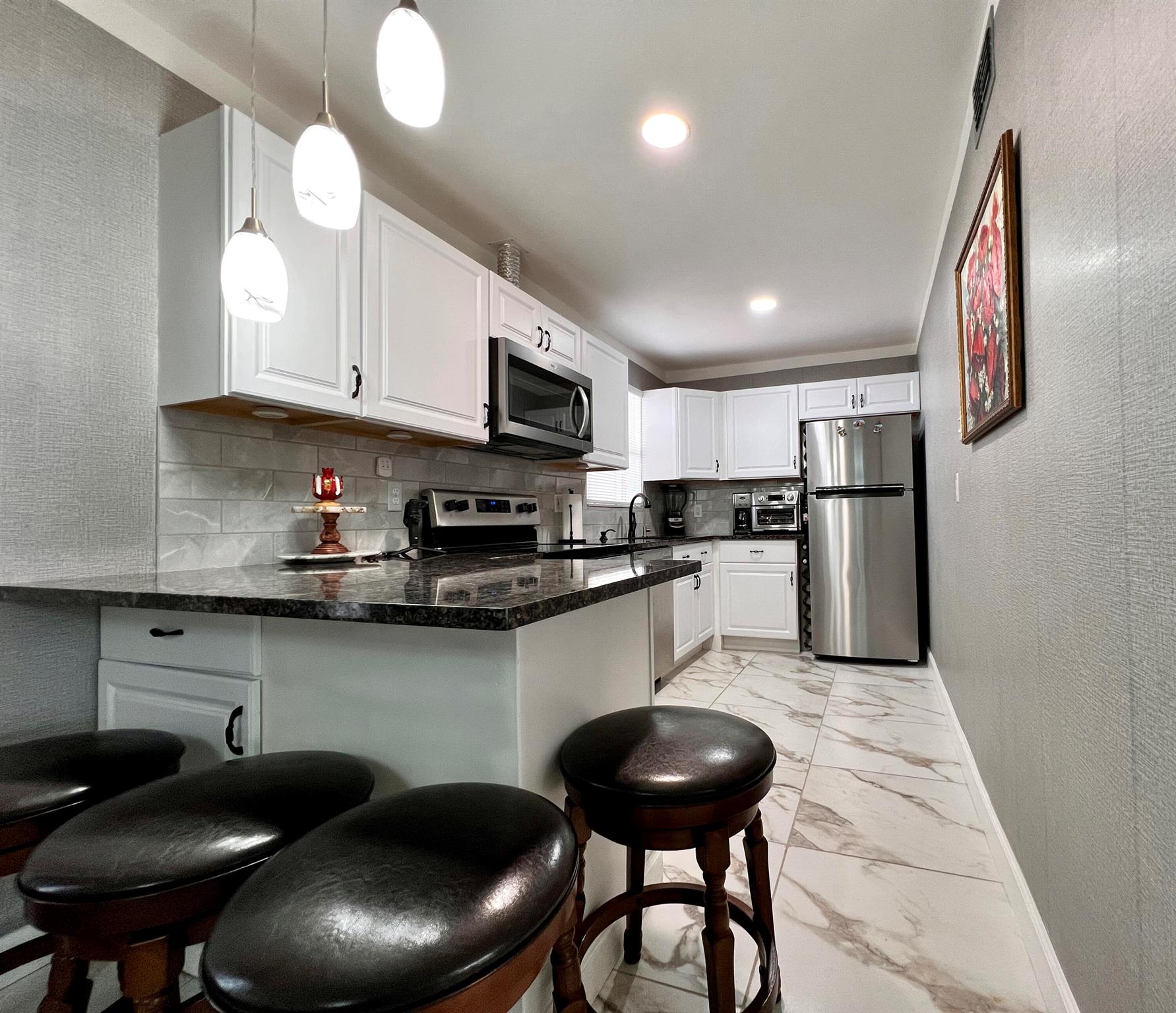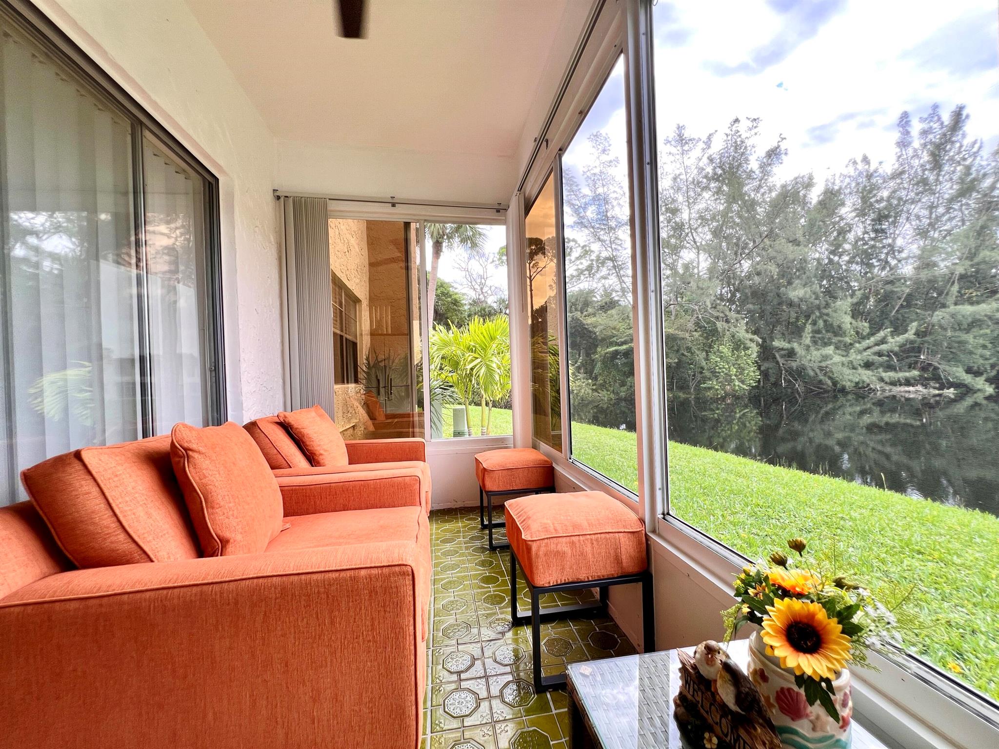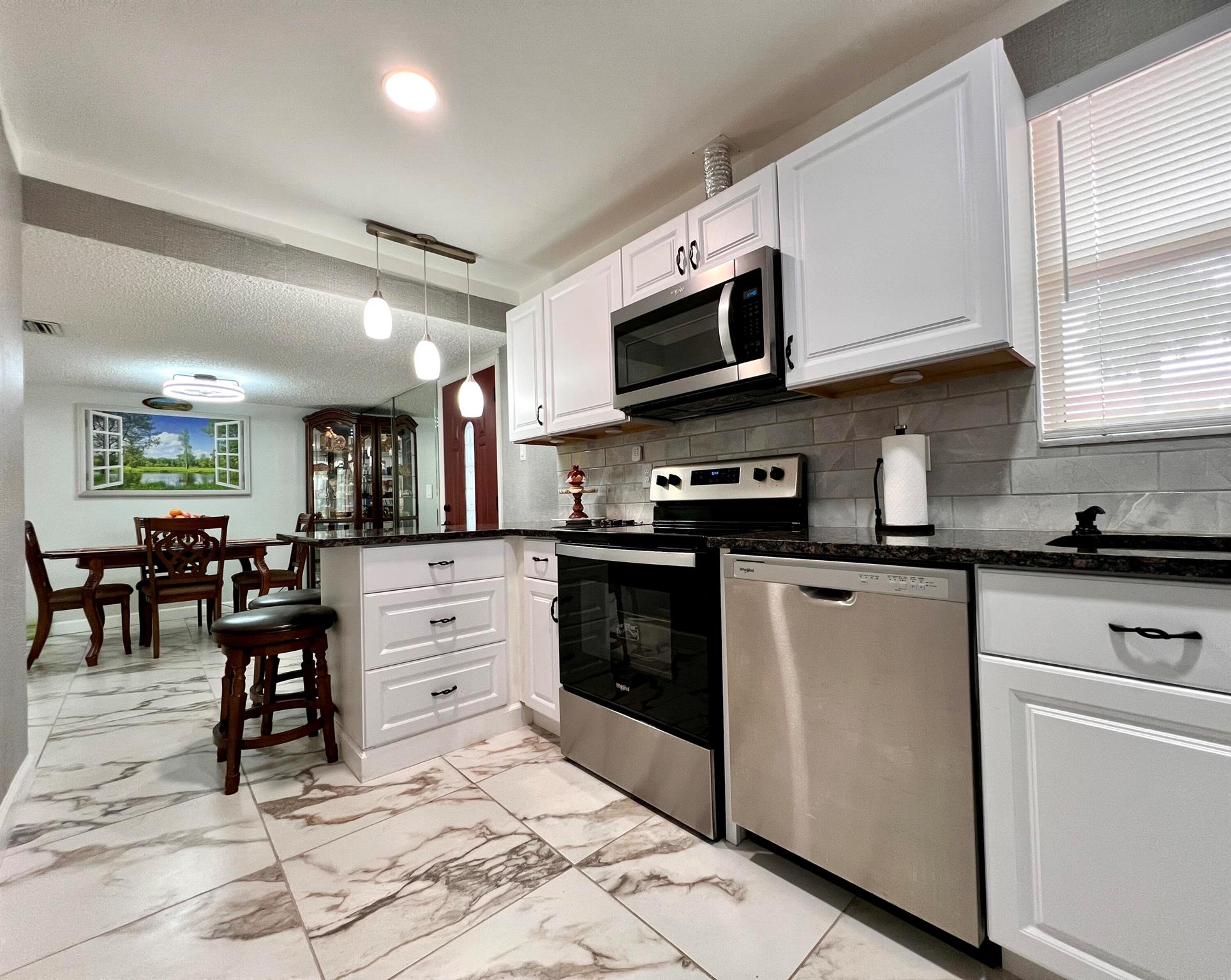 GORGEOUS & MUST SEE IN 55+ GOLDEN LAKES VILLAGE! Beautifully Updated & Meticulously Maintained FIRST FLOOR 2/2 With a Private Location & Peaceful Water Views! Updated Kitchen With White Cabinets, Expanse of Granite Counters - Including A Breakfast Bar, Subway Tile Backsplash, Upgraded Stainless Appliances, and High- Hat & Pendent Lights. Updated Baths. Designer Large Format Tile Flooring Throughout. Spacious Bedroom Suite W/ Updated Ensuite Bath & Walk-in Closet. Enclosed Lanai Offers Extra Space, Water Views, and Access to the Private Back Area W/ Pad for Gas Grill! AC New 2023. New Interior Doors. In Unit Stackable Washer/Dryer. Golden Lakes Phase A Allows Pets (Cats or Birds no Dogs). Golden Lakes Is A 55+ Community...