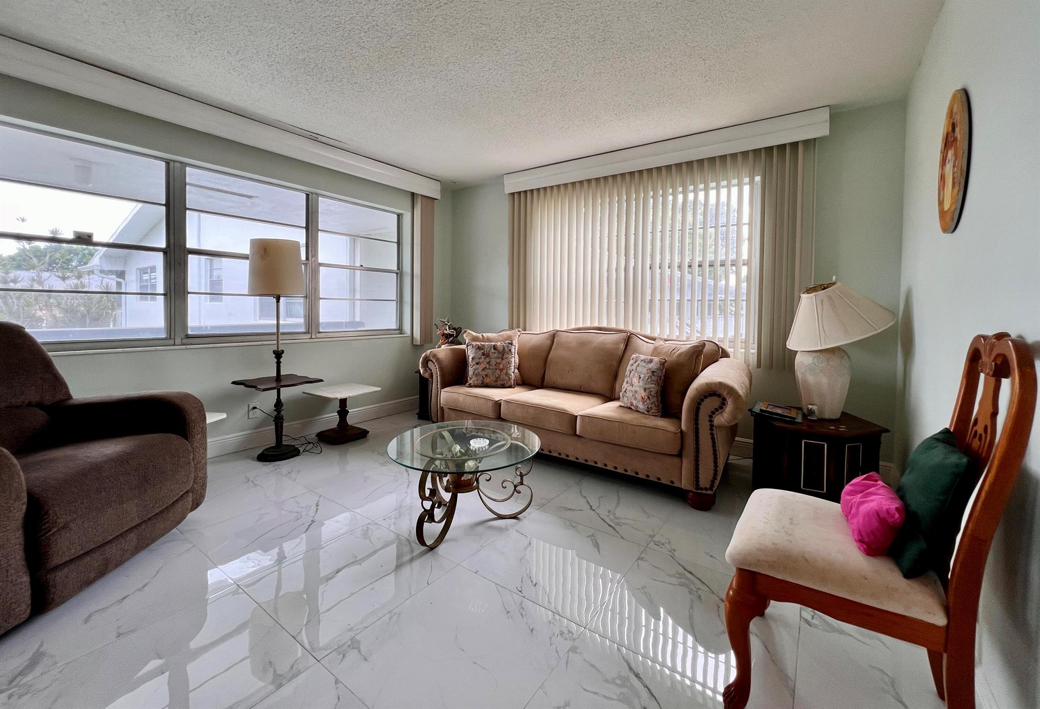 Cheerful & Bright in 55+ Century Village! Second Floor CORNER 1/1.5 With Central AC in the Popular Windsor Section. Gorgeous Gleaming Upgraded Large Format Marble Look Tile Flooring Throughout. Spacious Living/Dining Area. Large Bedroom Suite With Full Ensuite Bath. Screened Lanai With Garden Views. Building Features A New Roof (2024) and Reserves. Sold Furnished With Contents As Shown (Personal Items Excluded). Century Village Is A Resort Style 55+ Community With So Much to Offer...