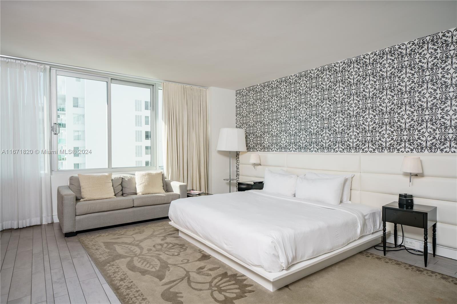 MONDRIAN SOUTH BEACH MIAMI..YOU FOUND IT! This stunning apartment in the prestigious South of Fifth area of Miami Beach offers a hassle-free lifestyle with incredible amenities, including a $20 million renovation. Enjoy 5-star dining, Sunset Bar, 2 pools, a fitness center, aqua spa, 24-hour room service, and beautiful bay beach and indoor restaurants. Owners enjoy exclusive hotel privileges for 60 days/year and benefit from an INCOME PRODUCING property managed by the condo hotel. Located just 15 minutes from Lincoln Road Mall and Marina, and close to Collins Avenue Shopping and Flamingo Park. This furnished studio, designed by Marcel Wanders, features a remodeled bathroom and mini kitchen. Condo Hotel Program renews in 2025 or you can AirBNB it whenever you like! It is a perfect mix!