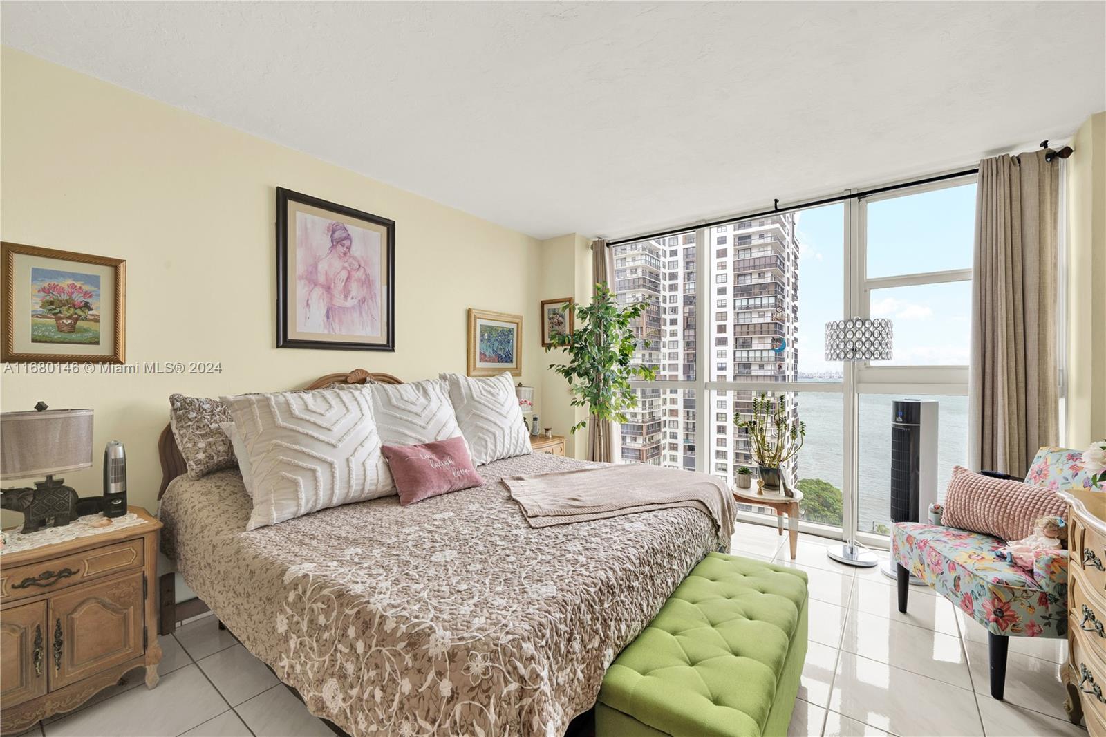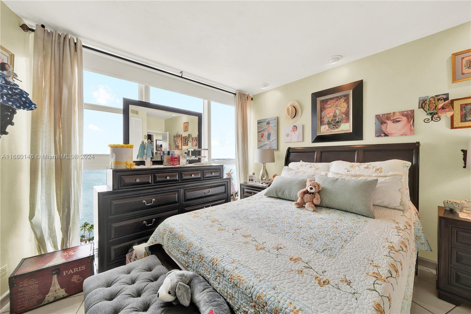 Stunning direct water views!! Experience breathtaking views from every room in this spacious 2 bedroom, 2 bath, with 1357 sqft, unit in excellent conditions, tile floor throughout, and a canvas ready for your personal touch. Building offers luxurious amenities such as a bayfront pool, fully equipped fitness center, convinience store, tennis facilities, valet parking, and much more. 1 parking space assigned.