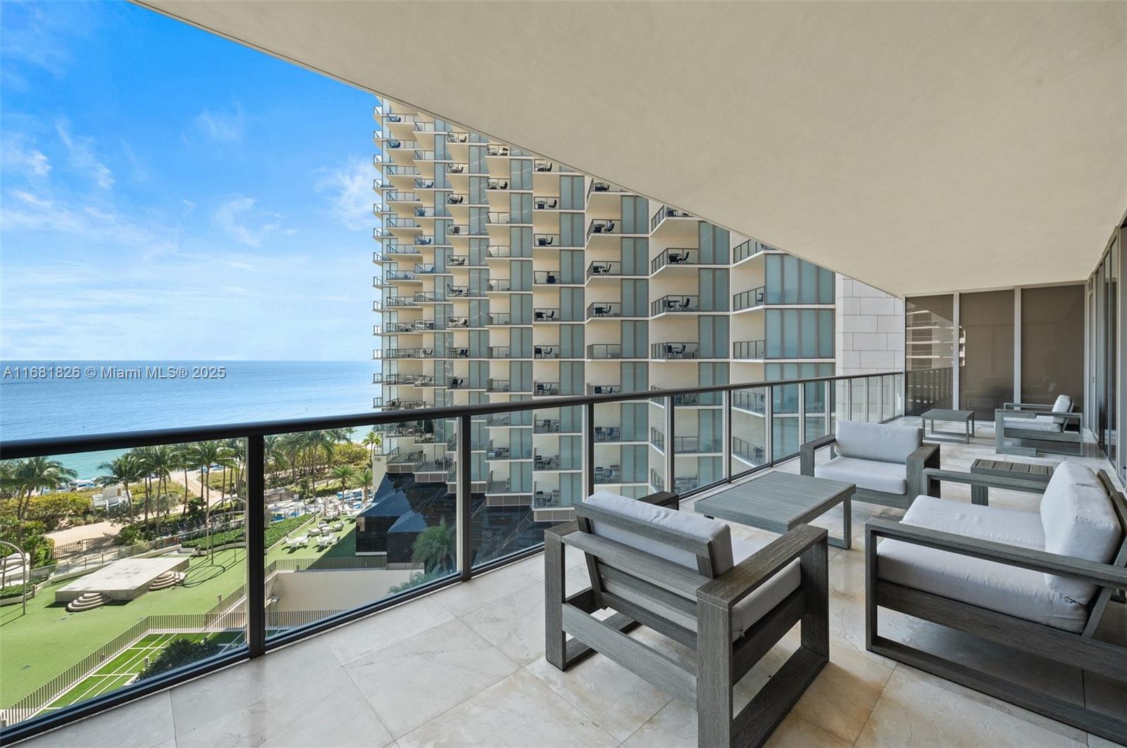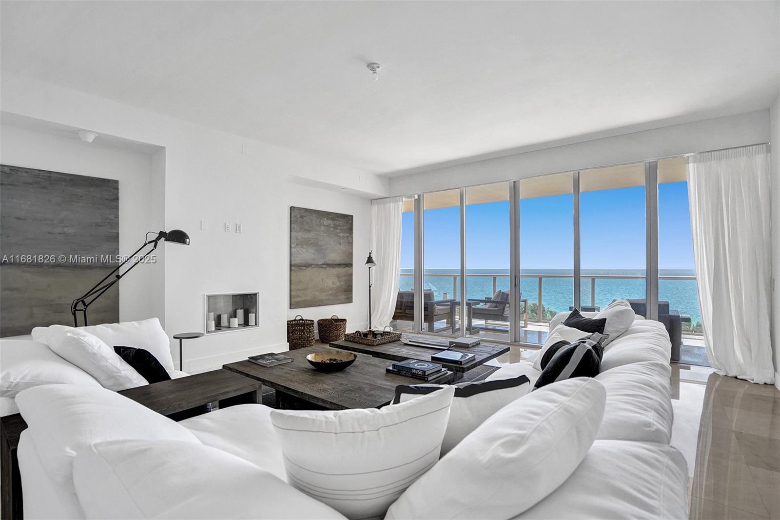 This spacious flow through 3 bedroom condo offers breathtaking, panoramic views of both the ocean and Intracoastal Waterway. Multiple terraces allow residents to enjoy both sunrise and sunset views. Includes a formal living room, den, expansive kitchen with terraces large enough to extend living space outdoors. Fully automated for ultimate convenience. Access to premium hotel services including multiple pools, full beach service, dining options, spa and fitness center, concierge, valet, & personalized butler service. Designed for ultimate luxury and convenience, ideal for those seeking a refined, resort-style living experience with impeccable services and amenities. Across the street from the prestigious Bal Harbour shops, and walkable to to restaurants and shops in the area. Furnished.