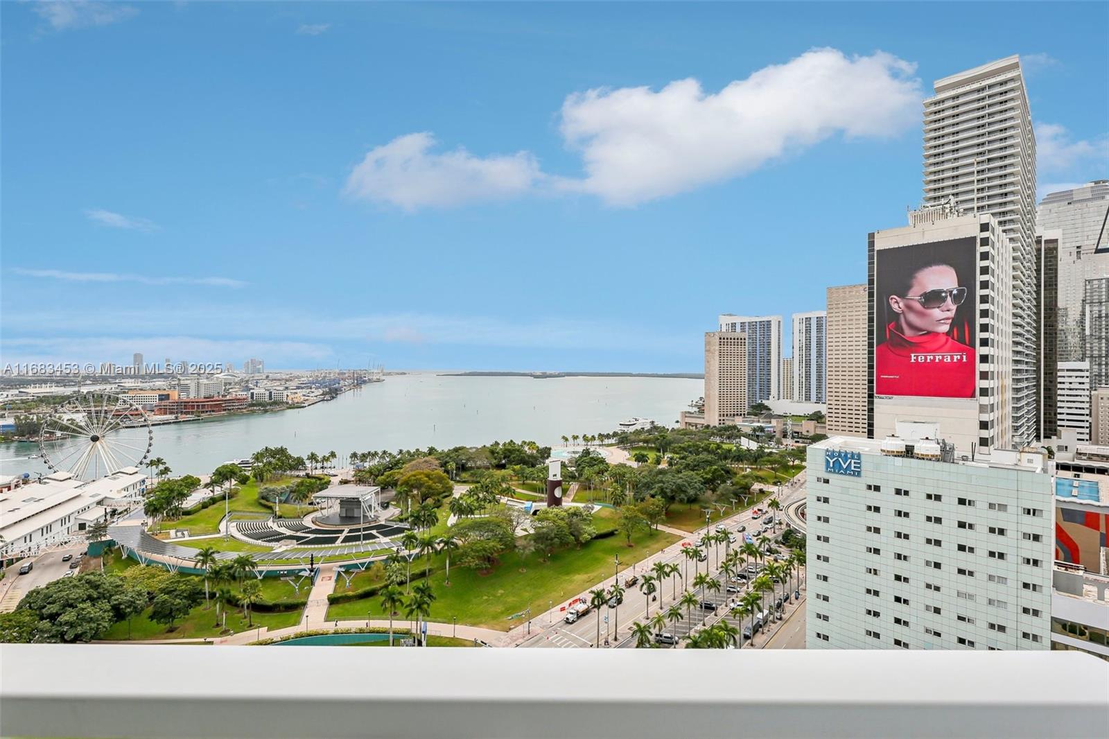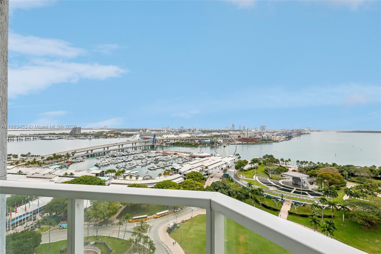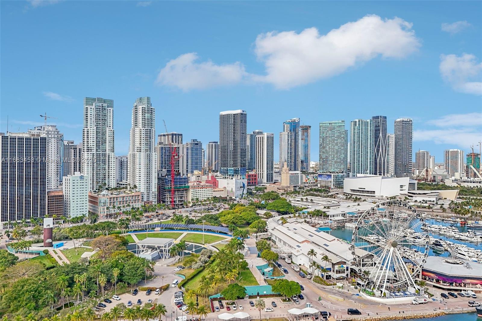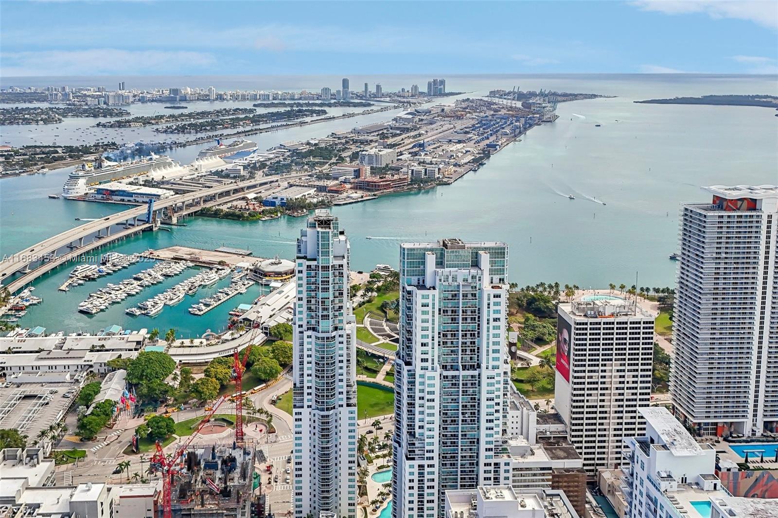 UNIQUE OPPORTUNITY – NOW $850,000! This spacious 2BD/2BA + DEN corner residence offers breathtaking views of Biscayne Bay and the Port of Miami. Recently upgraded with brand-new wood floors, the open layout features a modern kitchen with stainless steel appliances, Italian cabinets, and granite countertops. The bright living spaces include window shades throughout, while the primary suite boasts a large walk-in closet and a spa-style bath with dual sinks, soaking tub, and separate shower. Enjoy resort-style living with 4 pools, jacuzzi, spa, bar & lounge, movie theatre, game room, business center, fitness center, and 24-hour attended lobby. Located steps from shops, dining, and the Metro Mover for seamless city access. Easy to show.