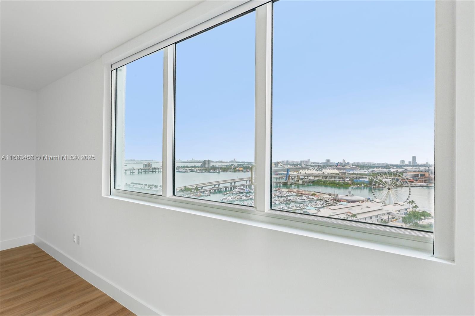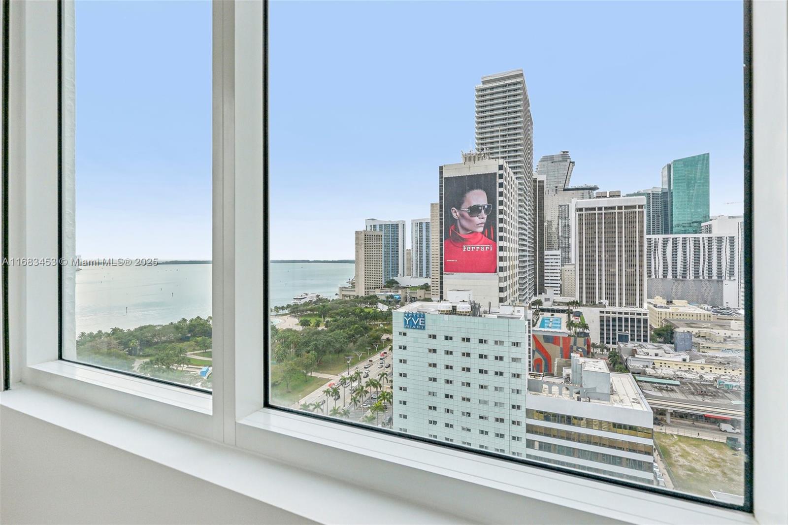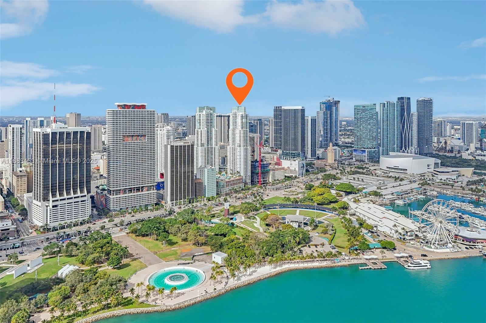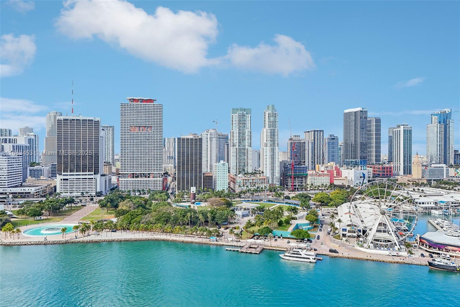 UNIQUE OPPORTUNITY – NOW $850,000! This spacious 2BD/2BA + DEN corner residence offers breathtaking views of Biscayne Bay and the Port of Miami. Recently upgraded with brand-new wood floors, the open layout features a modern kitchen with stainless steel appliances, Italian cabinets, and granite countertops. The bright living spaces include window shades throughout, while the primary suite boasts a large walk-in closet and a spa-style bath with dual sinks, soaking tub, and separate shower. Enjoy resort-style living with 4 pools, jacuzzi, spa, bar & lounge, movie theatre, game room, business center, fitness center, and 24-hour attended lobby. Located steps from shops, dining, and the Metro Mover for seamless city access. Easy to show.
