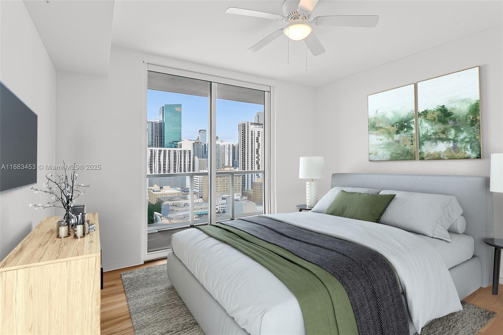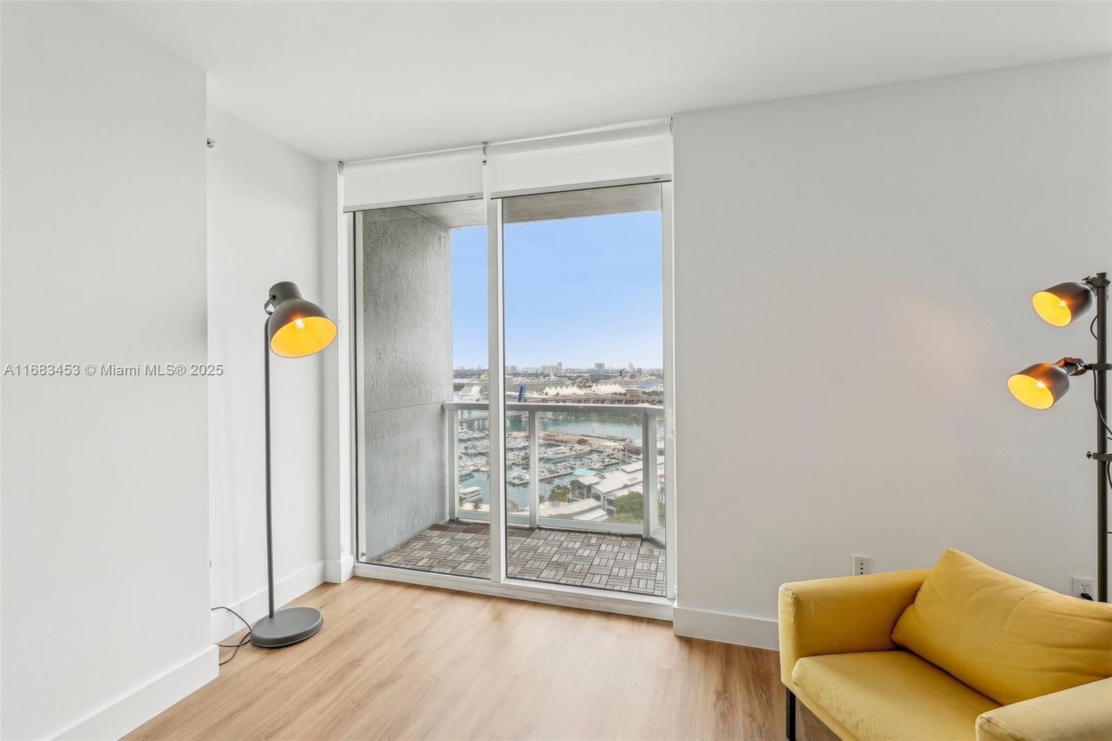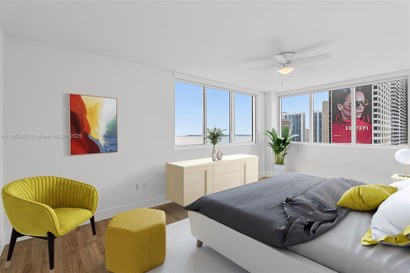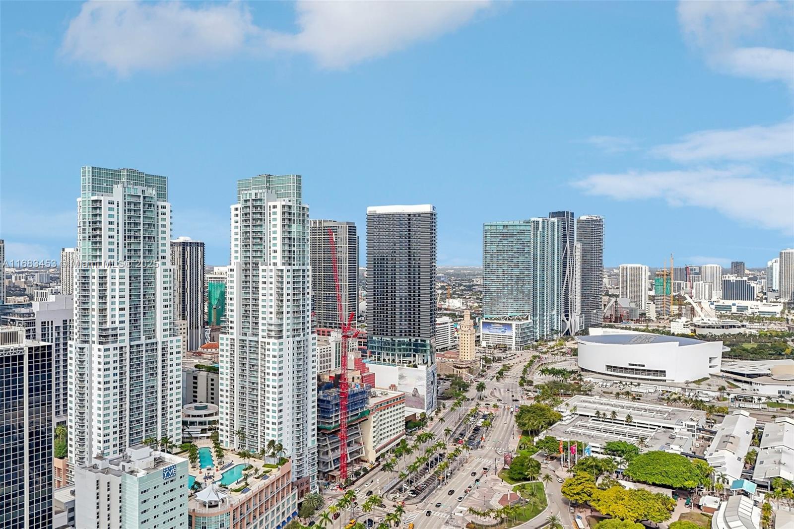 UNIQUE OPPORTUNITY – NOW $850,000! This spacious 2BD/2BA + DEN corner residence offers breathtaking views of Biscayne Bay and the Port of Miami. Recently upgraded with brand-new wood floors, the open layout features a modern kitchen with stainless steel appliances, Italian cabinets, and granite countertops. The bright living spaces include window shades throughout, while the primary suite boasts a large walk-in closet and a spa-style bath with dual sinks, soaking tub, and separate shower. Enjoy resort-style living with 4 pools, jacuzzi, spa, bar & lounge, movie theatre, game room, business center, fitness center, and 24-hour attended lobby. Located steps from shops, dining, and the Metro Mover for seamless city access. Easy to show.