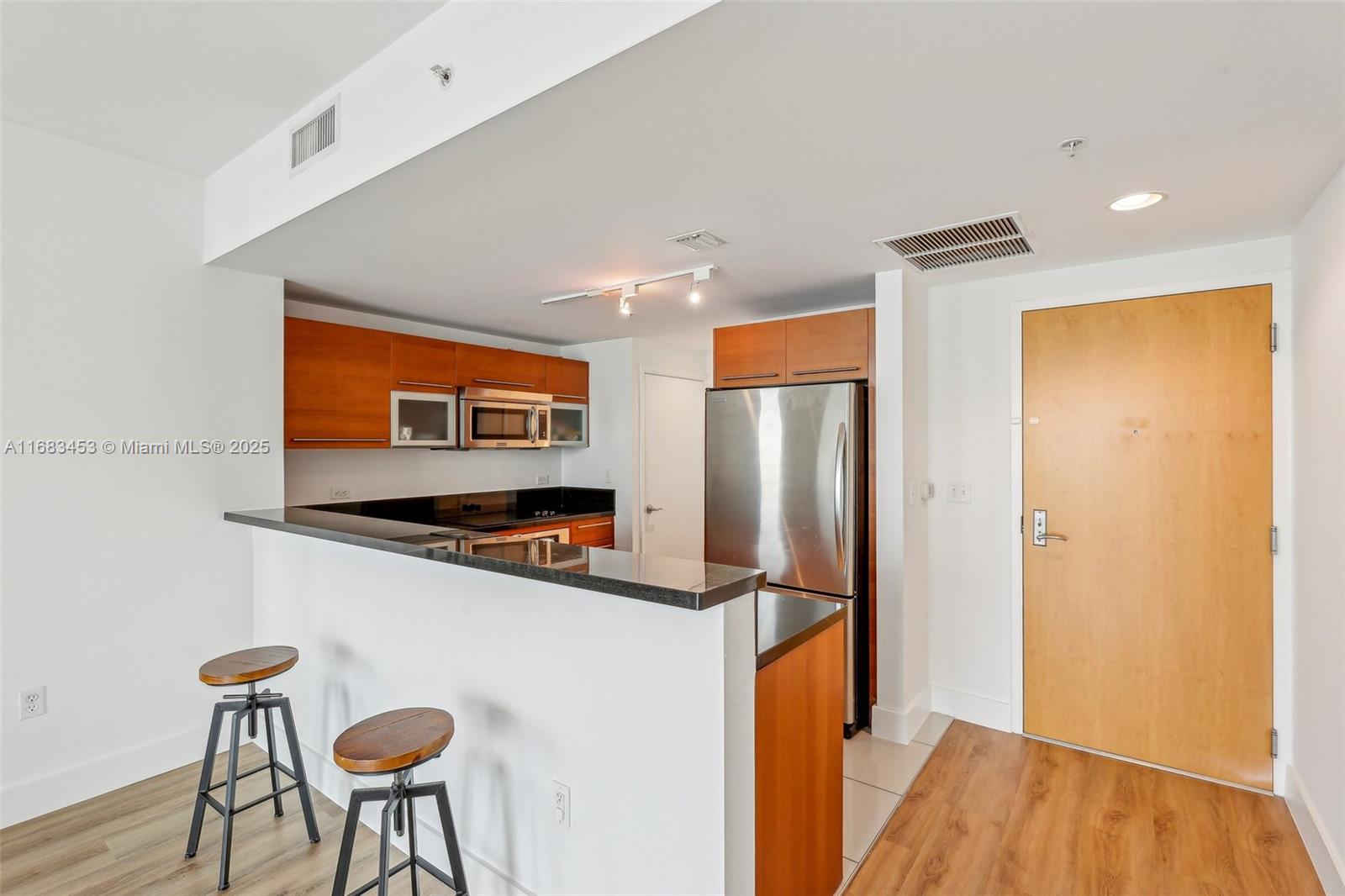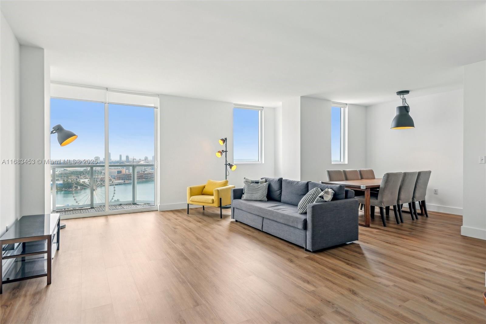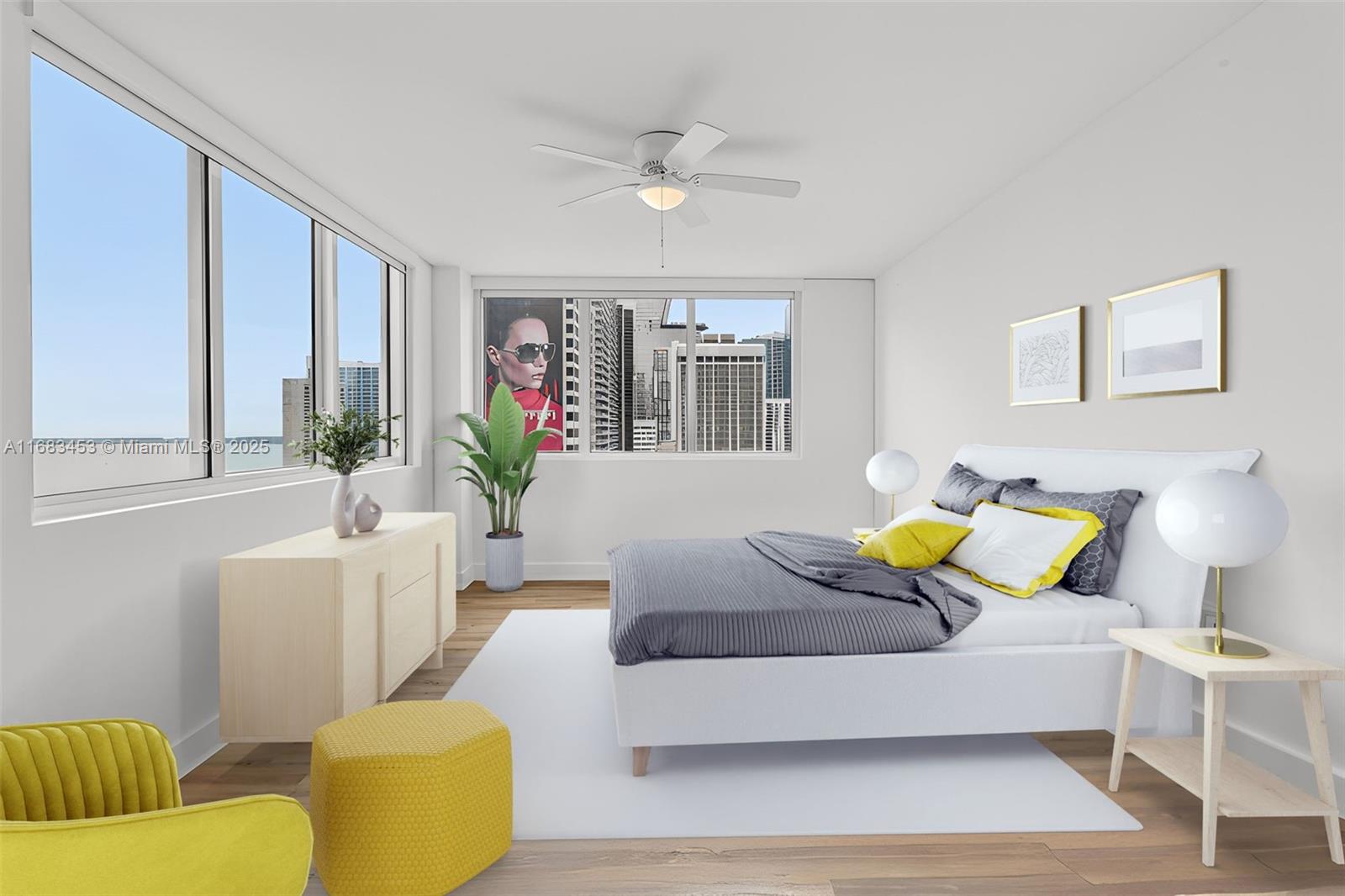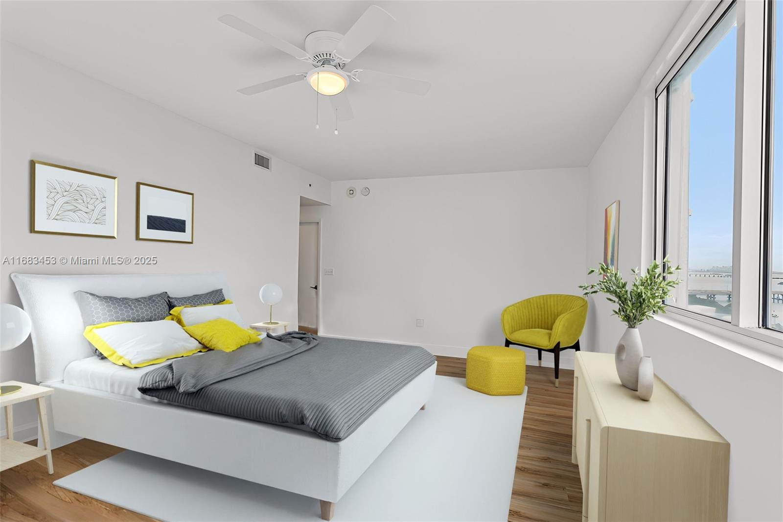 UNIQUE OPPORTUNITY – NOW $850,000! This spacious 2BD/2BA + DEN corner residence offers breathtaking views of Biscayne Bay and the Port of Miami. Recently upgraded with brand-new wood floors, the open layout features a modern kitchen with stainless steel appliances, Italian cabinets, and granite countertops. The bright living spaces include window shades throughout, while the primary suite boasts a large walk-in closet and a spa-style bath with dual sinks, soaking tub, and separate shower. Enjoy resort-style living with 4 pools, jacuzzi, spa, bar & lounge, movie theatre, game room, business center, fitness center, and 24-hour attended lobby. Located steps from shops, dining, and the Metro Mover for seamless city access. Easy to show.