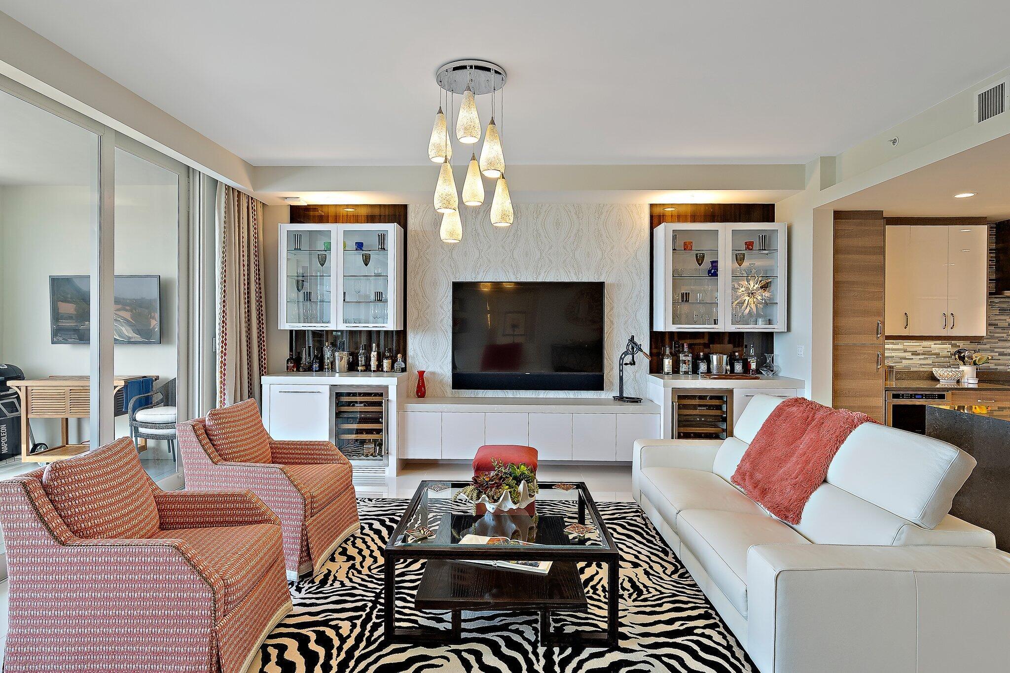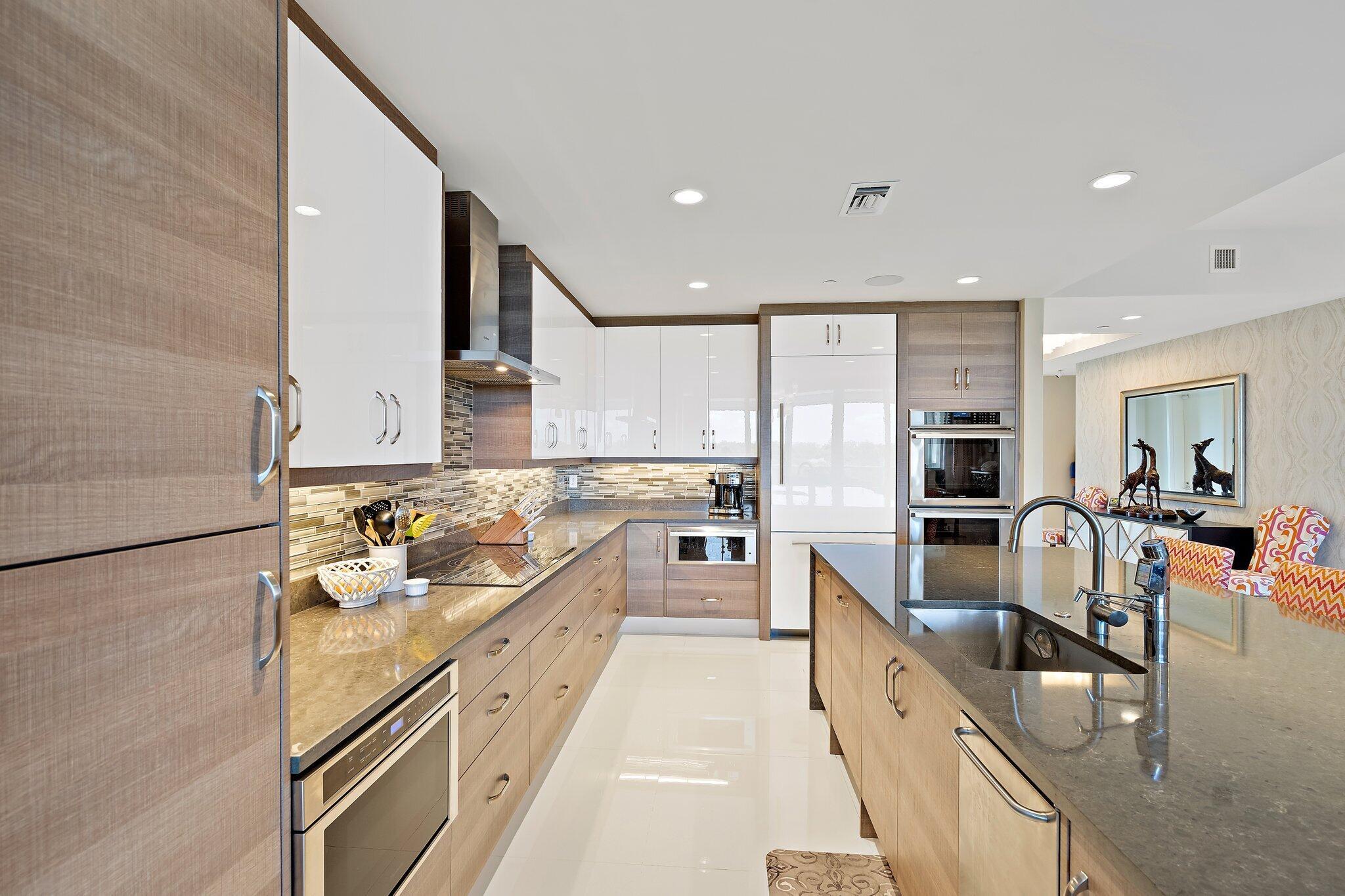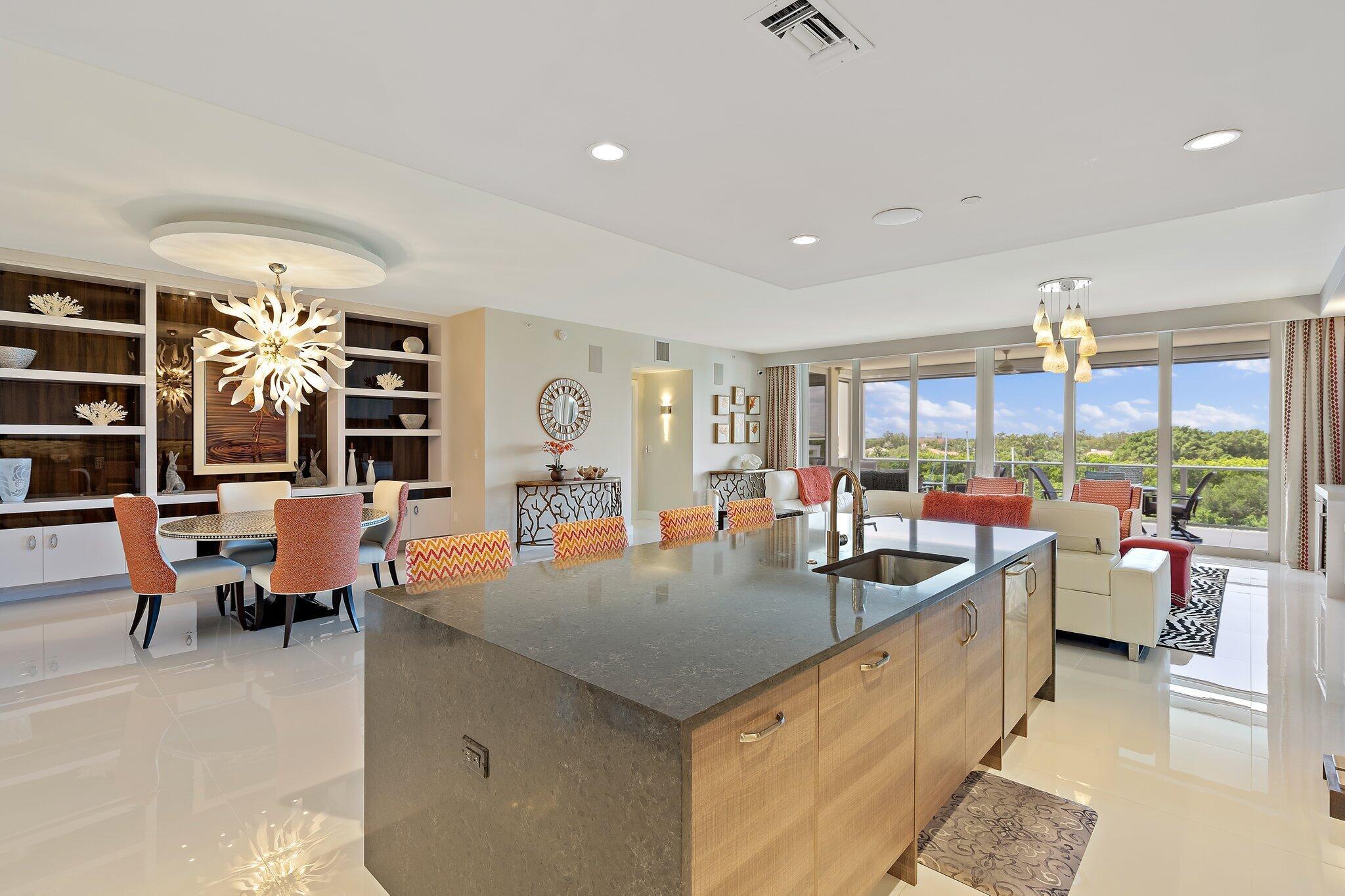 Enjoy breathtaking marina views from this contemporary, furnished 3-bedroom, 3-bath penthouse in Azure. Designed for effortless living, this space features numerous upgrades, including stylish polished tile floors, custom wallpaper, motorized blinds, and phantom screens. The expansive terrace feels like an additional living area. The gourmet kitchen is equipped with a spacious island, Thermador appliances, a Caesarstone dry bar with two Subzero wine fridges, and an ice maker. The primary suite offers two custom California closets and a luxurious oversized en suite bath. There are two generous guest rooms--one with its own terrace and another set up as a den/office. A large laundry room includes a new washer and dryer, and the elevator provides direct access to a private entry.