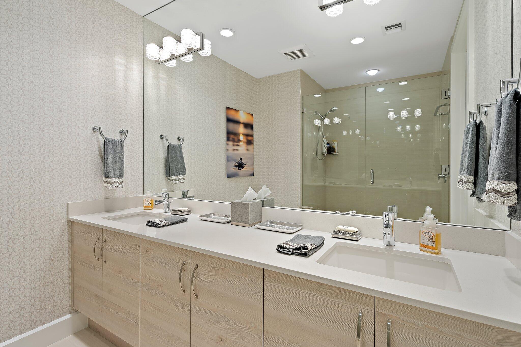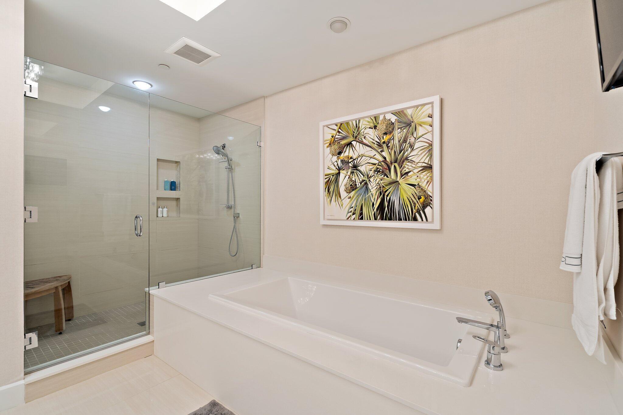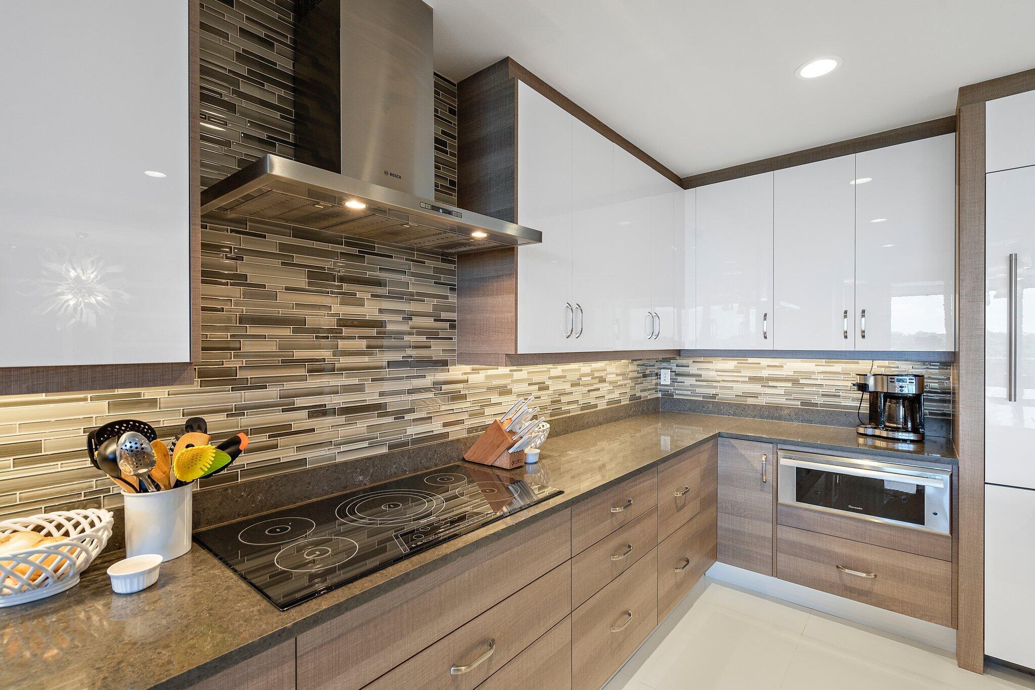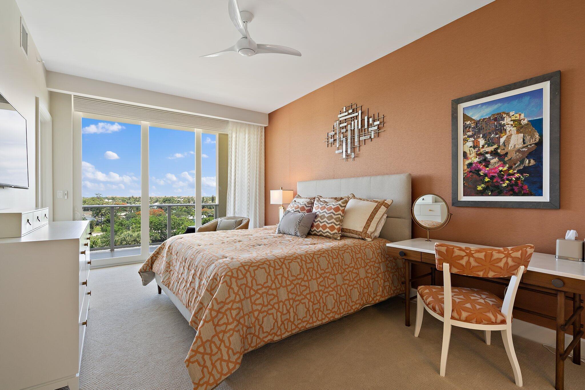 Enjoy breathtaking marina views from this contemporary, furnished 3-bedroom, 3-bath penthouse in Azure. Designed for effortless living, this space features numerous upgrades, including stylish polished tile floors, custom wallpaper, motorized blinds, and phantom screens. The expansive terrace feels like an additional living area. The gourmet kitchen is equipped with a spacious island, Thermador appliances, a Caesarstone dry bar with two Subzero wine fridges, and an ice maker. The primary suite offers two custom California closets and a luxurious oversized en suite bath. There are two generous guest rooms--one with its own terrace and another set up as a den/office. A large laundry room includes a new washer and dryer, and the elevator provides direct access to a private entry.