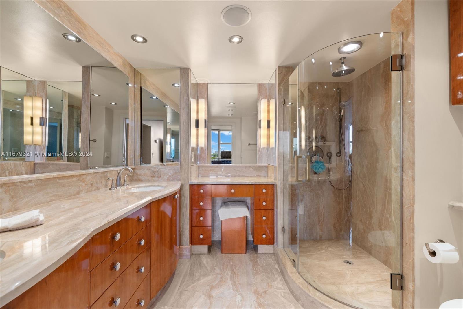 Unit 422+ CABANA 13 + 4 Parking Spots + 2 storages! This exclusive 4th-floor unit, #422 offering luxurious living space with 2 bedrooms and 2 bathrooms. $895,000 in custom upgrades completed in 2013, this residence exudes sophistication and elegance, designed for those seeking the ultimate Miami lifestyle. Step onto your private balcony, where tranquil city views provide a perfect backdrop for morning coffee or evening relaxation. Miele integrated espresso machine, Viking stove, and Sub-Zero mini bar for high-end living. Elegant wood flooring & marble flooring, adding warmth and elegance to every room. Rolls Royce finish leather sliding couch and a striking Blue Murano chandelier to create a luxurious living space. Close to the Bal Harbour Shops and Surfside restaurants.