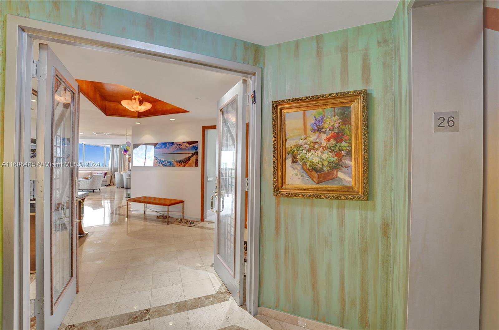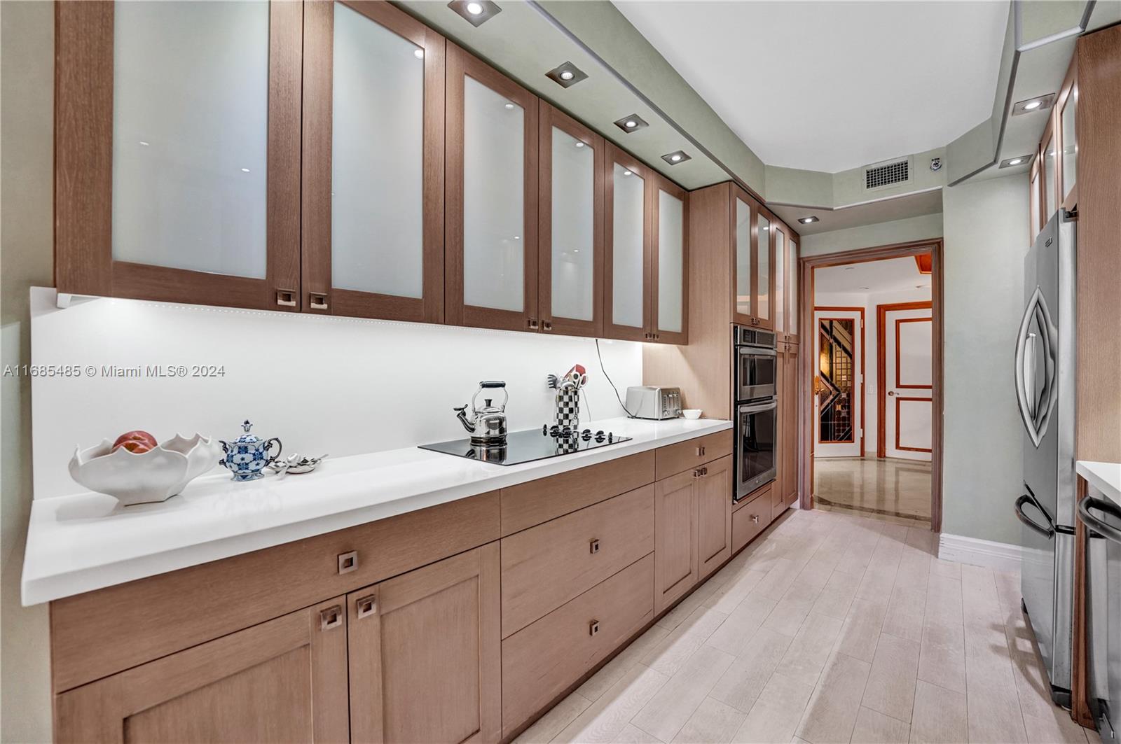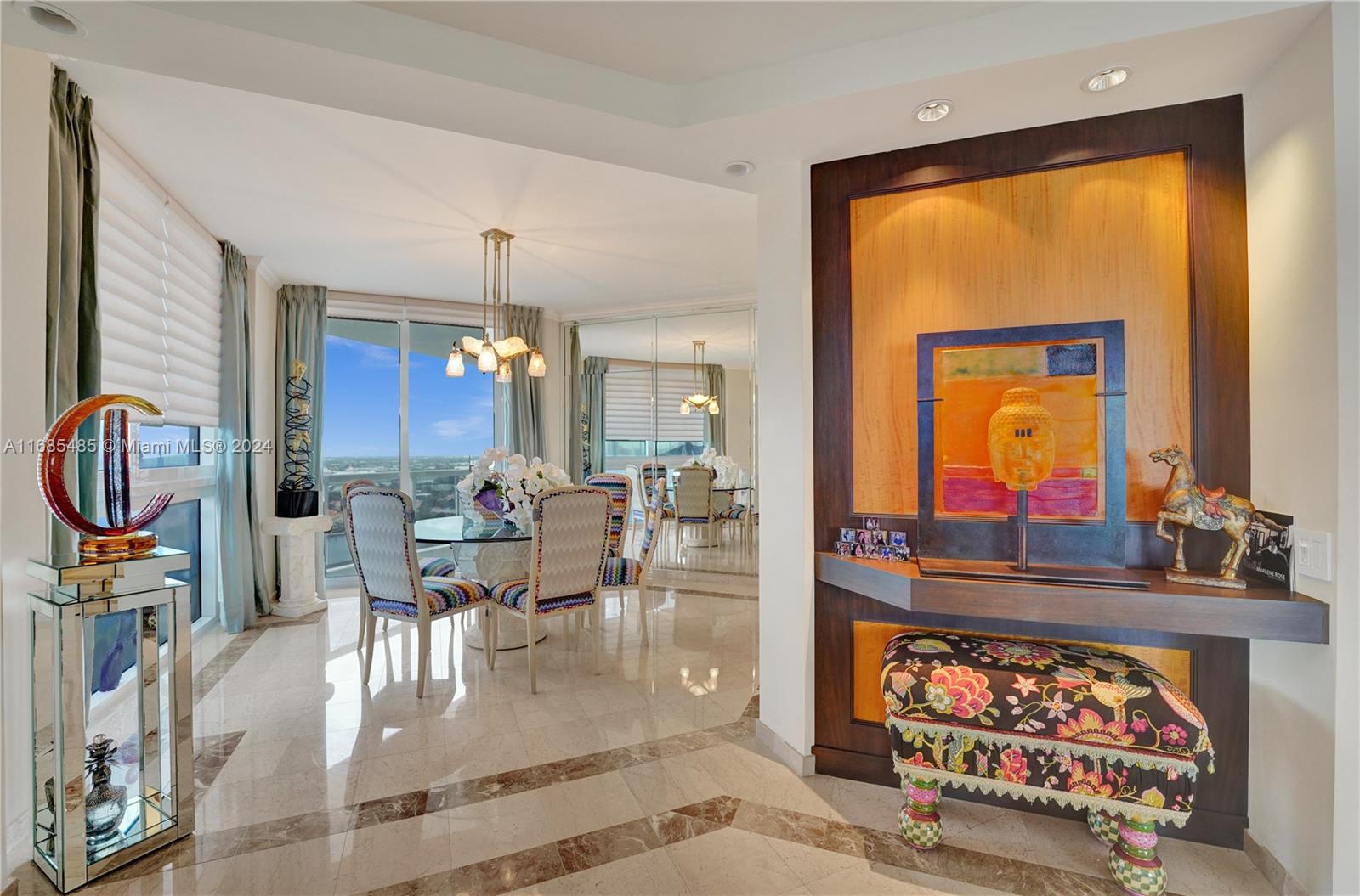 Come home in your private elevator straight to your foyer. This expansive unit encompasses 2,240 sq. ft. of thoughtfully designed living space, 2BD, 3BD. Layout maximizes natural light, creating a bright & inviting atmosphere. Elegant finishes enhance the sophisticated feel of the home. Kitchen: fully renovated, KitchenAid SS appliances, custom solid wood & glass cabinetry, quartz countertops & backsplash. Bar area. Enjoy breathtaking views of the Ocean, Intracoastal waterways marina & skyline. Electric shades throughout except in the liv. rm. Recessed lighting. 2 BA’s updated. New HVAC- 2018. Impact windows & doors. One Island Place, gated resort style community w/direct access to the Waterways Marina. Easy access to beaches, restaurants, shopping, houses of worship & top-tier schools.