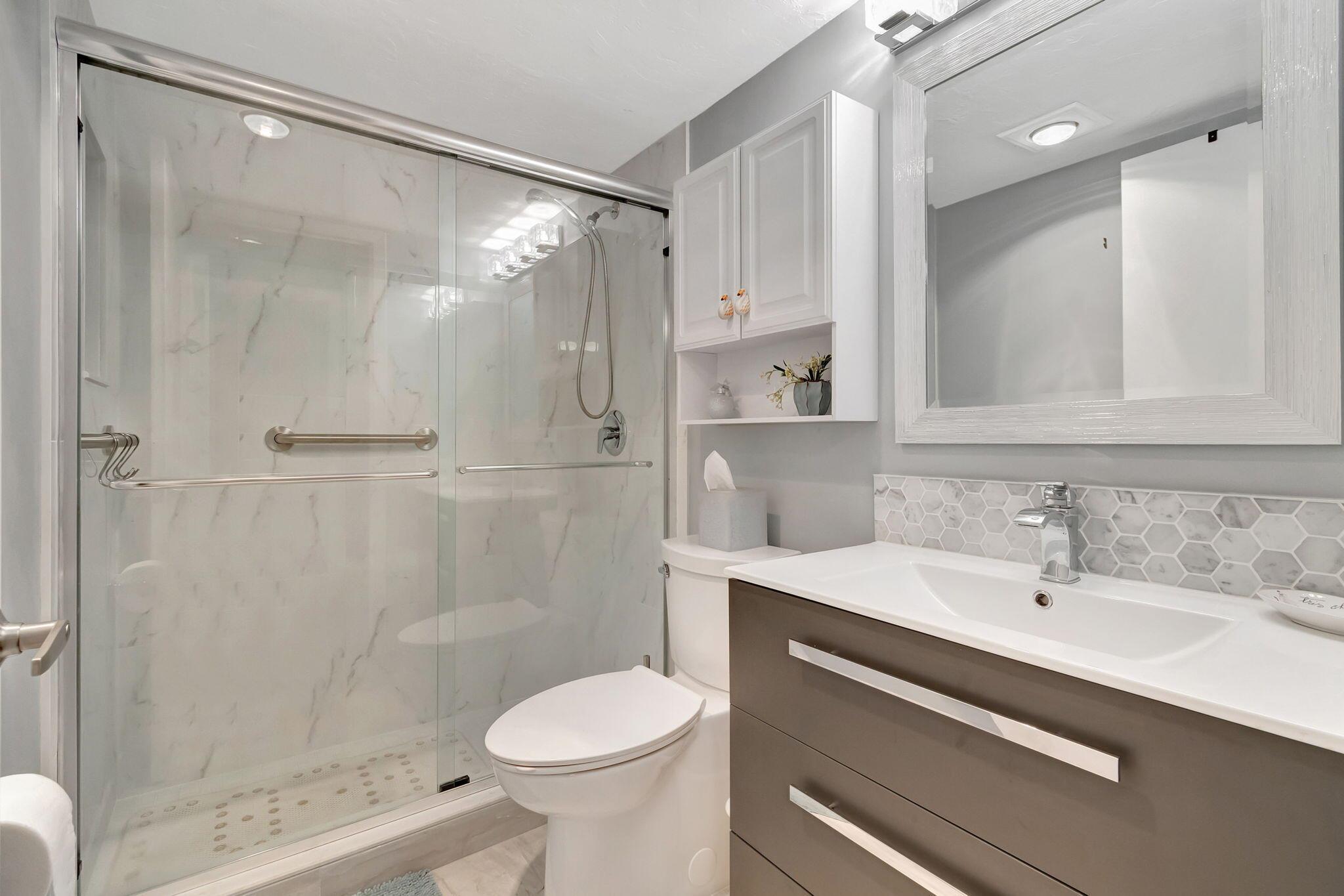 Investor's Dream--Turnkey Condo in Century Village! This beautifully renovated 2-bedroom, 1.5-bath condo in Boca Raton's sought-after 55+ community offers an exceptional investor opportunity with lease eligibility from day one of ownership. Fully furnished and updated, this ground-floor unit features an open kitchen layout for modern living and newly remodeled bathrooms, creating a fresh and inviting space.Convenience is unmatched here: not only is the dedicated parking space directly in front of the front door, but the mailboxes are just 10 steps away, with the trash chute, laundry, and storage room only a few steps further.