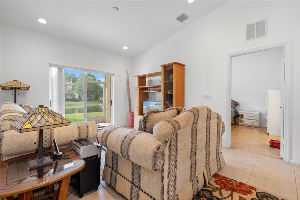 Florida living at its finest! This immaculate 2-bedroom, 2-bath villa with a versatile bonus room offers style and comfort. Vaulted ceilings and neutral tile set a bright, open tone, complemented by an extra-large screened patio with peaceful water views. The spacious primary suite features dual closets and a private bathroom. 2020 new AC and water heater, plus carbon monoxide detectors for added safety. Located in a gated community with top-tier amenities--clubhouse, pools, fitness center, pickleball, and more--just 11 miles from Palm Beach and near great shopping and dining. See it today!