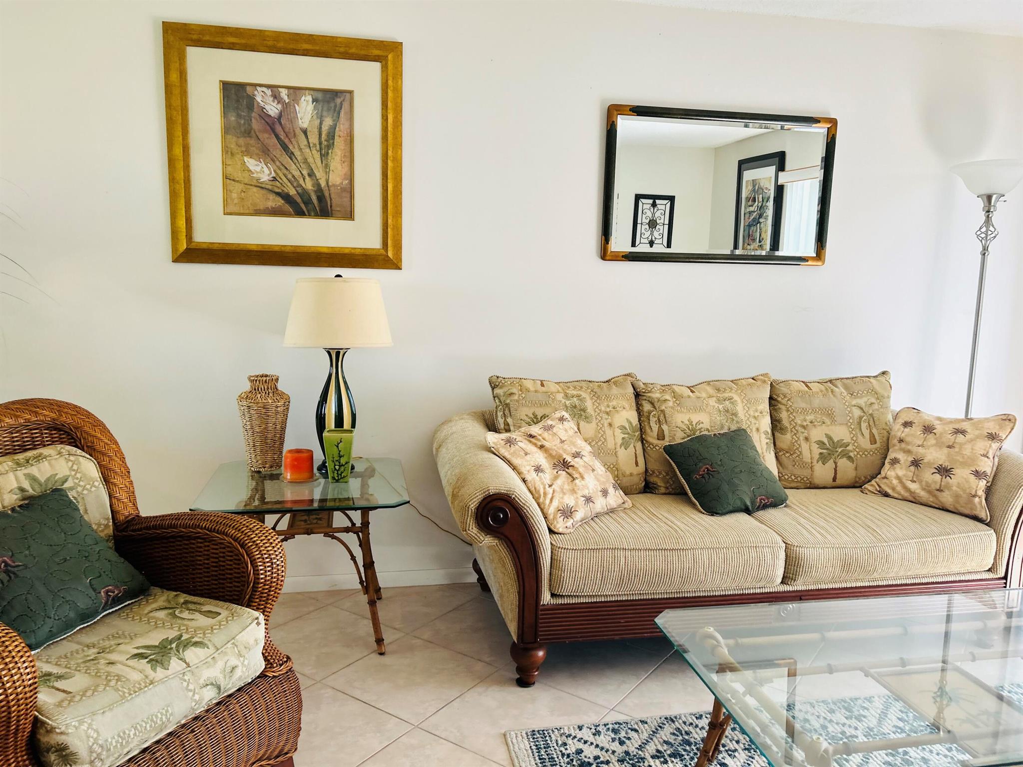 MOVE INTO THIS DELIGHTFUL 2 BED 2 BATH CORNER UNIT ON THE SECOND FLOOR IN THE THE ACTIVE 55+ COMMUNITY OF CENTURY VILLAGE. THIS SUN FILLE D BEAUTIFULLY FURNISHED, TURNKEY PROPERTY FEATURES LARGE TILE, CENTRAL AIR, WHITE KITCHEN WITH DOUBLE SINK, HURRICANE IMPACT WINDOWS AND SHUTTERS, MAKING IT MOVE IN READY! ENJOY THE FANTASTIC LOCATION THAT OFFERS PRIVACY, GARDEN VIEW AS WELL AS THE CONVENIENCE OF BEING STEPS AWAY FROM THE GOLFS EDGE POOL AND A VERY SHORT WALK TO THE CLUBHOUSE. PLUS WATER IS INCLUDED IN THE MONTHLY MAINTENANCE FEE. COME AND ENJOY RESORT STYLE LIVING IN THIS GATED COMMUNITY FOR ADULTS 55+. Clubhouse with theater, shows, movies, craft and card rooms, billiards, aerobics, yoga, and dance classes. GREAT LOCATION: close to shops, restaurants, PBI airport and bea