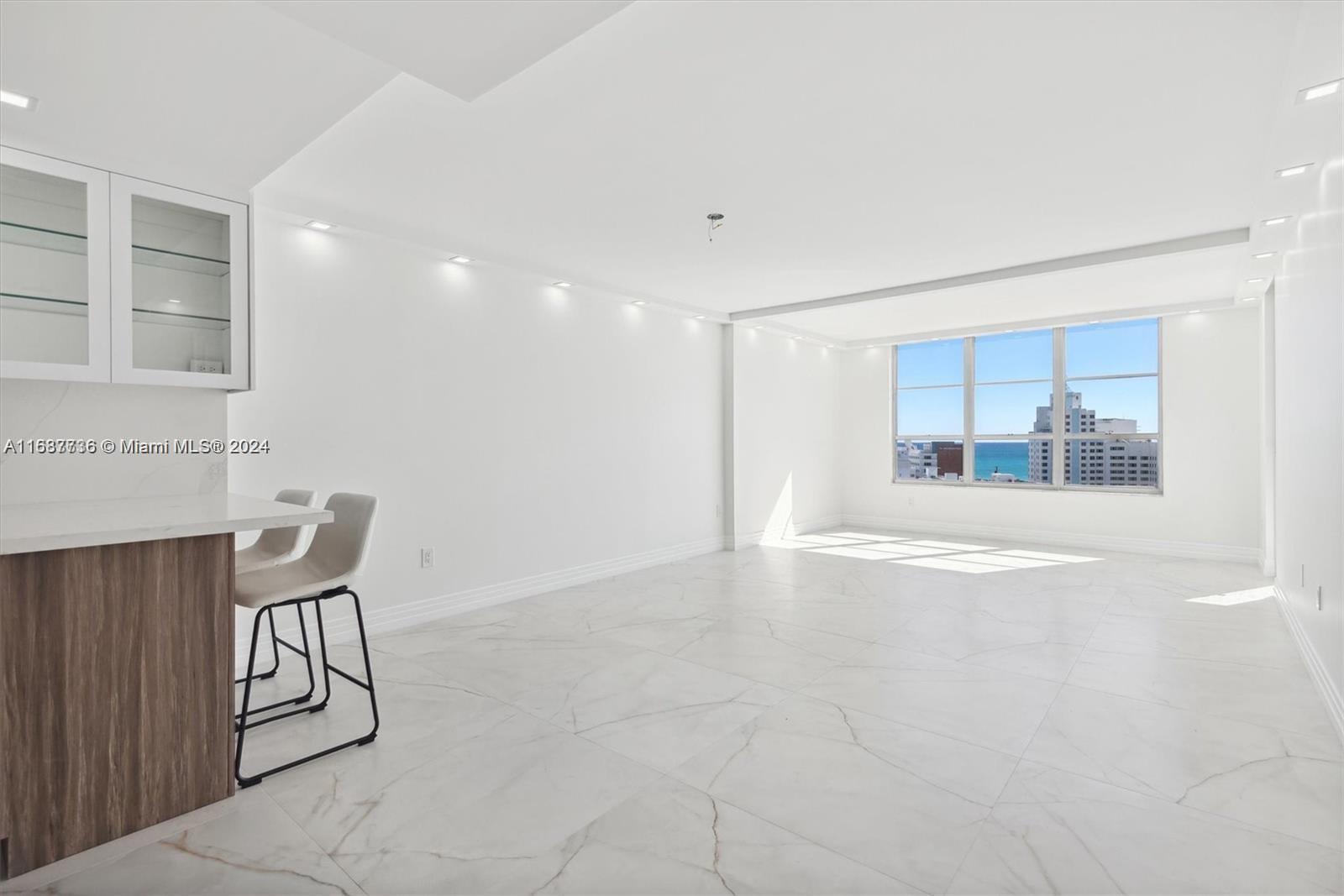 Repriced and back on the market! Direct ocean tastefully renovated one bedroom, 2 full bath with designer touches in every room. A sophisticated, sliding, fabric panel divider creates a private 2nd sleeping space. Natural light fills each room by day and chic, square, recessed lighting by night. Gorgeous porcelain floors throughout. The fashionable and functional open kitchen has sleek granite counters, high end appliances and generous cabinets. 2 flawlessly designed bathrooms, built in closets completes this amazing , must see, move-in ready apartment. W/D in unit. Building has 24 hour security, heated pool, kids playground and playroom, tennis courts and more. Short walk to shopping, schools, synagogue, and the beach! Easy to show - No Saturday showings
