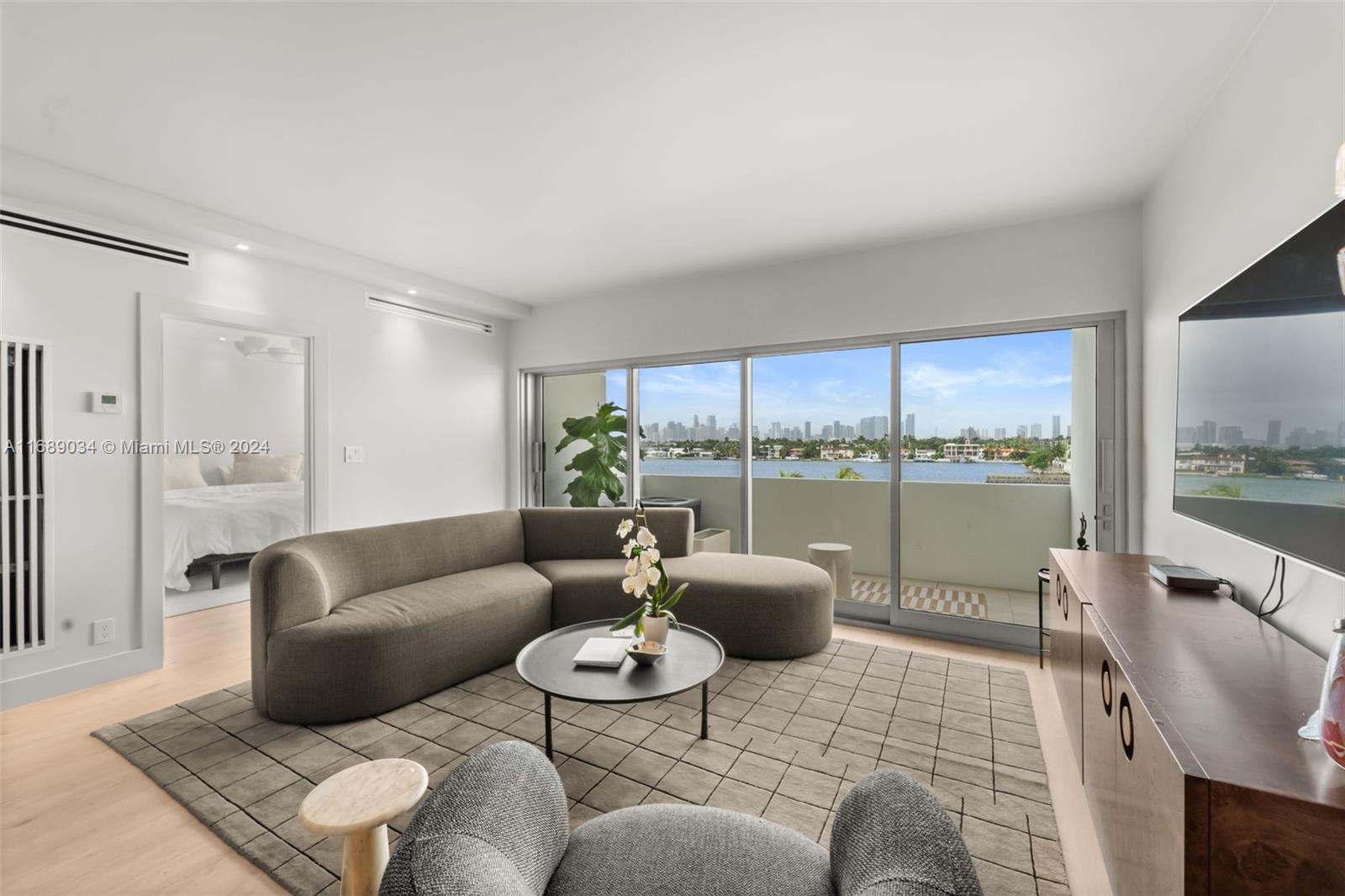 Presenting 3 Island Ave 5F on Belle Isle—an "Architectural Digest" quality renovation with no detail overlooked. This exquisite 1 bedroom, 1.5 bath residence boasts sweeping views of Biscayne Bay. The custom-designed kitchen features sleek Italian cabinetry and top-of-the-line appliances, including a Fisher Paykel refrigerator and wine cooler. The oversized terrace, framed by brand-new impact windows, showcases breathtaking bay views. Located in a mid-century modern gem, this building was designed by renowned architect Morris Lapidus, making this home a perfect blend of luxury, style, and timeless design