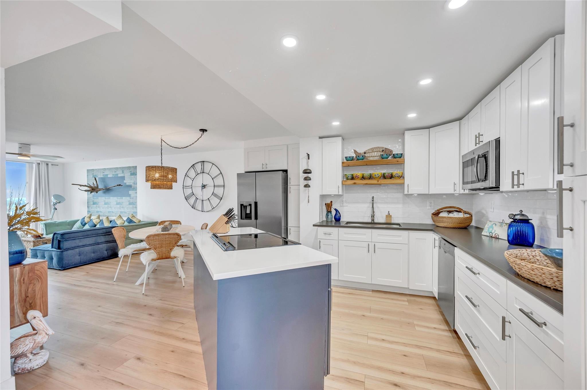 Completely remodeled corner unit offering panoramic direct Intracoastal views and captivating sunsets from its west- and south-facing balcony. This 2BD, 2BA boasts a sleek, modern kitchen with premium appliances, spacious open-plan living and dining areas, and elegant, stylish finishes throughout. The primary suite includes a luxurious bathroom and ample closet space, while the second bedroom offers flexibility as a guest room or office. Building amenities feature a pool overlooking the intracoastal, sauna, community room, BBQ/picnic area, and more. Ideally situated within walking distance of the beach, Pompano Beach Pier, Hillsboro Lighthouse, and fine dining. Conveniently close to golf courses, grocery stores, and shopping.