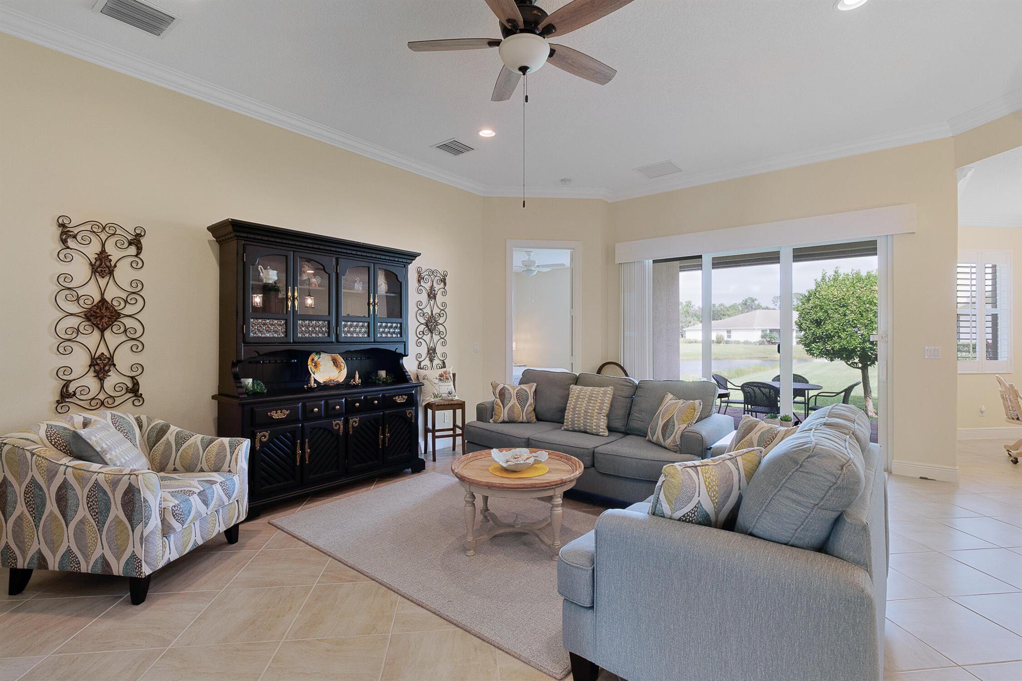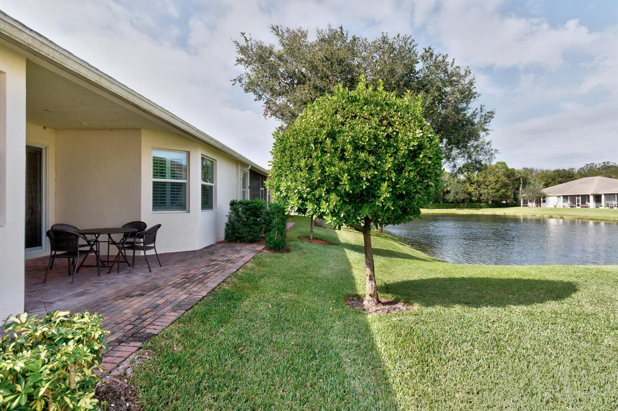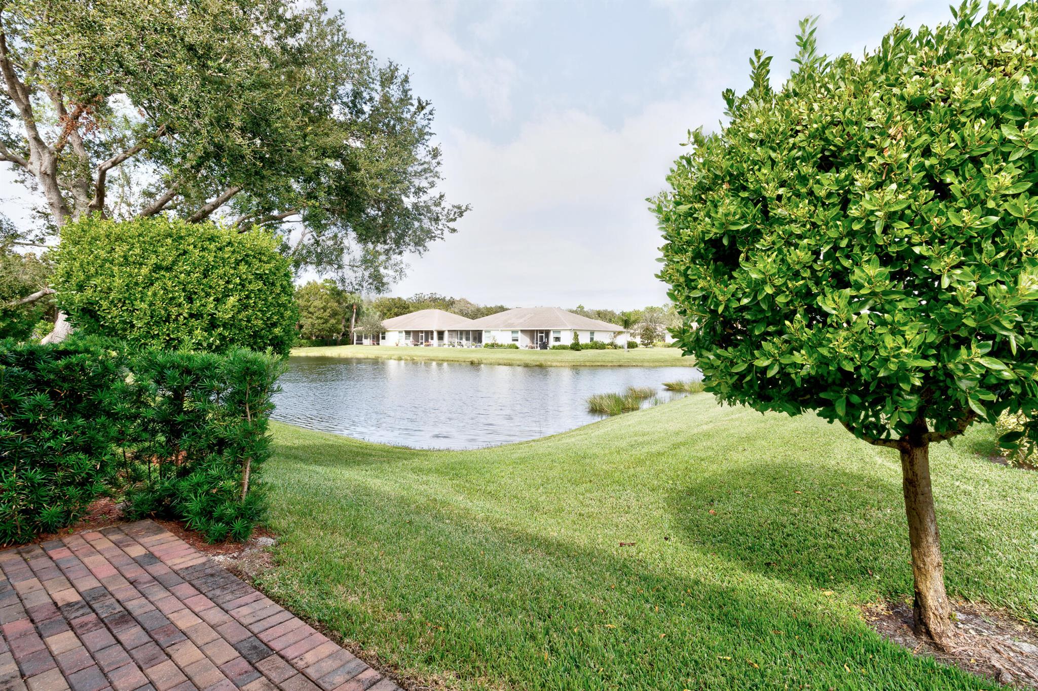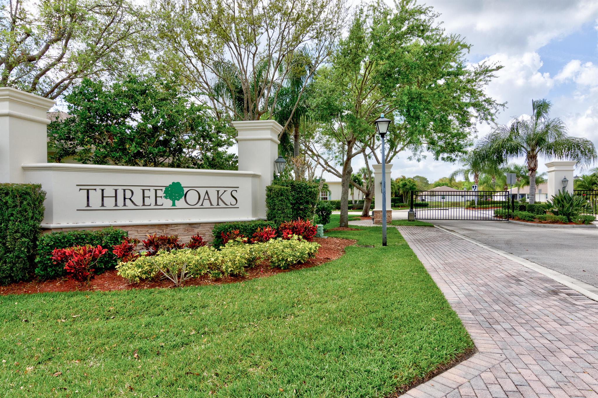 Seller motivated! Custom modified Larkin Grande Villa in Three Oaks. As you enter the lakeside Larkin Grande with 3 bedrooms, 2 bathrooms & a generous 2-car garage you'll notice the extras: tile set on the diagonal, impact windows & doors, plantation shutters, crown molding. The kitchen island becomes the focal point for this home. Enjoy the enlarged dining room with lake views. Add to that, pocket doors on the 3rd bedroom, beautiful cut glass front door insert, elevated TV plugs, extended patio, custom landscaping. The primary bedroom has lake views and custom closets. The primary bath has an open concept shower, dual sinks and custom lighting. Clubhouse w/pool & fitness center. Close to great dining, shopping and, of course, Vero's beautiful beaches.