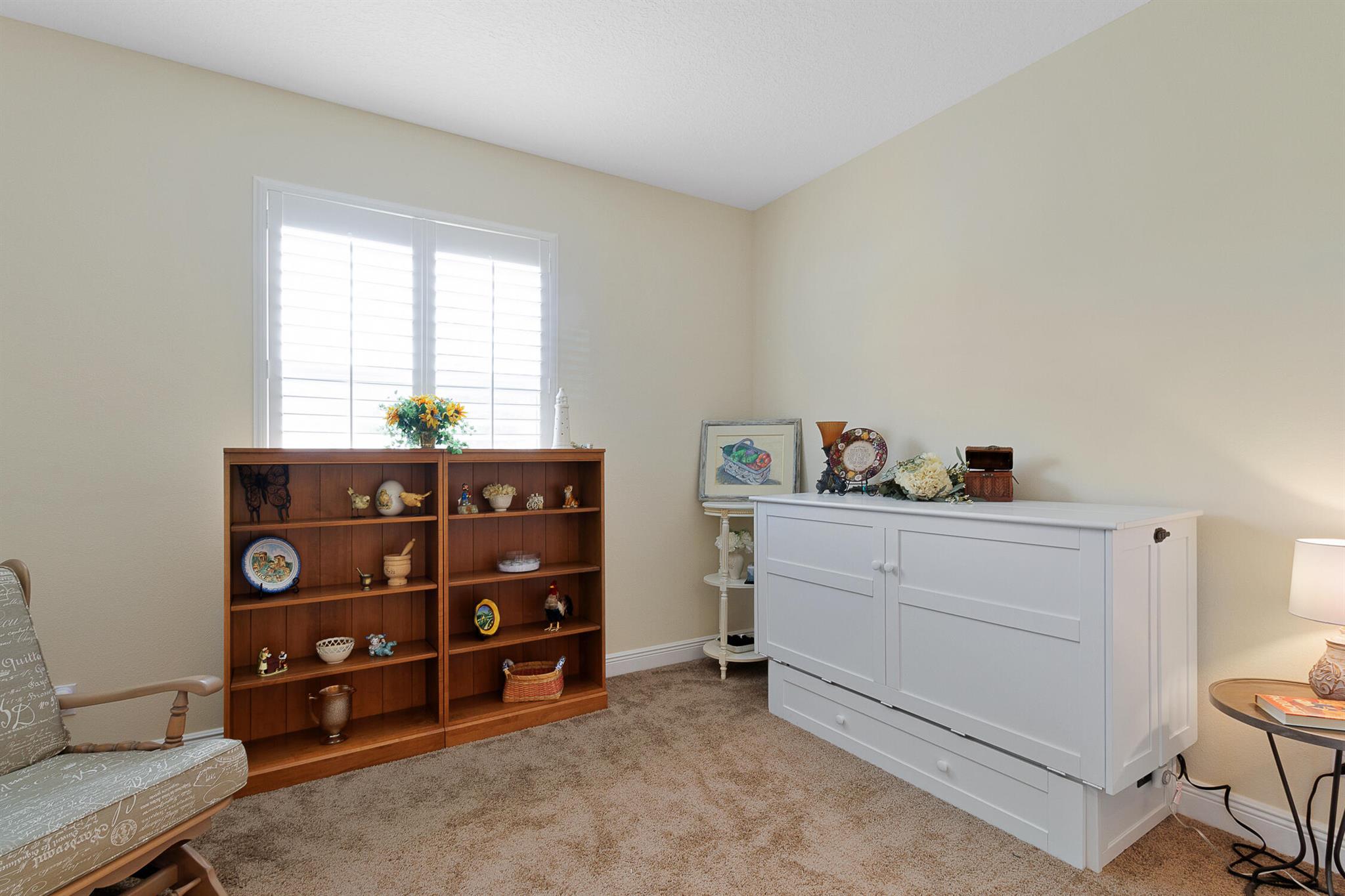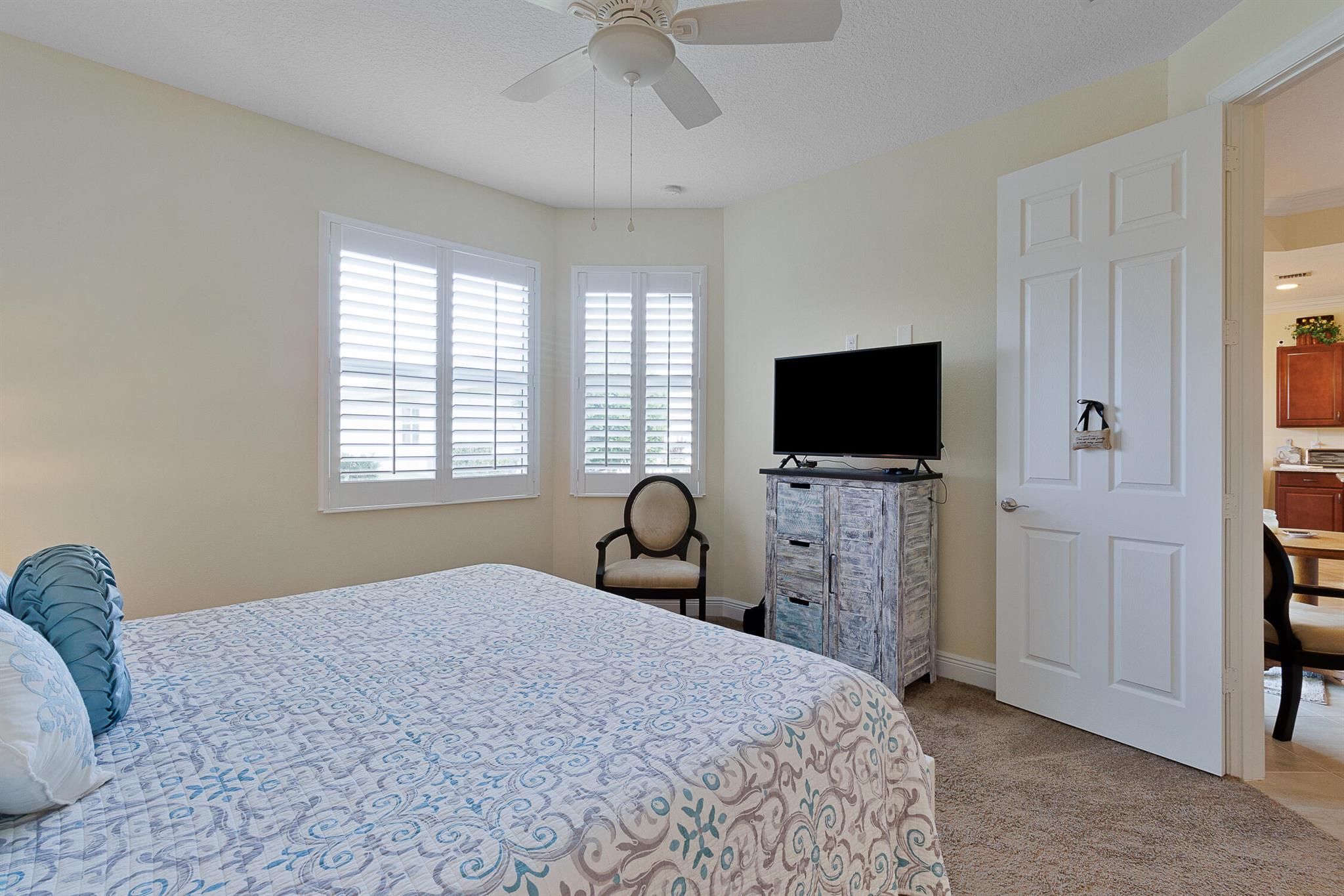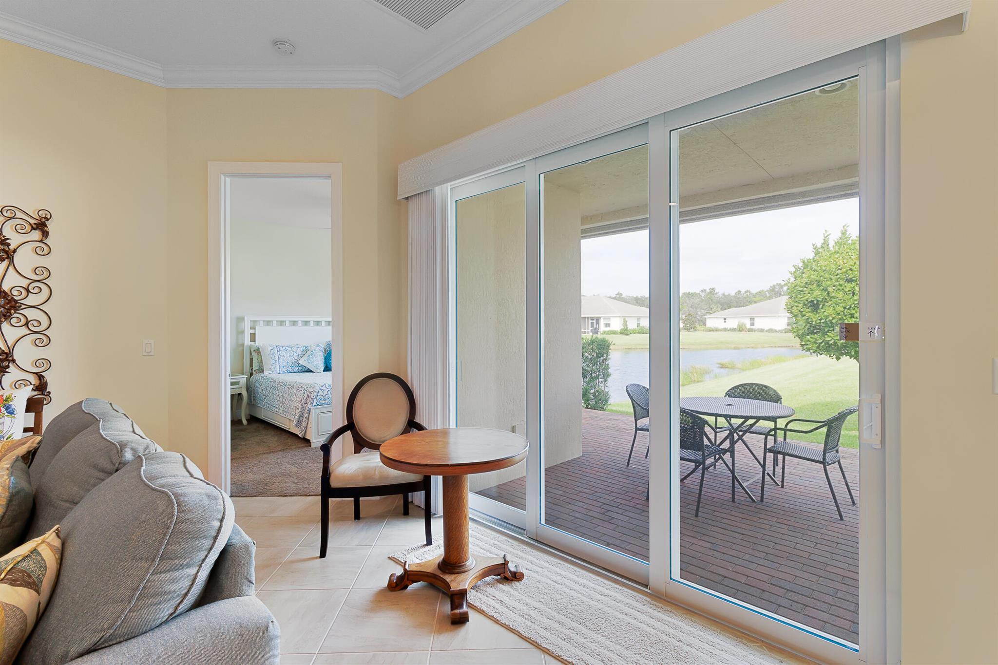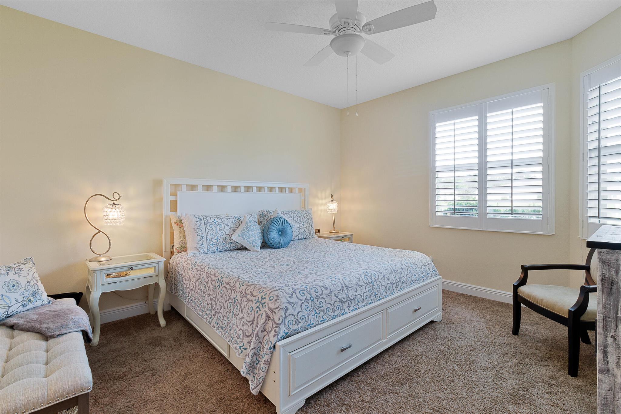 Seller motivated! Custom modified Larkin Grande Villa in Three Oaks. As you enter the lakeside Larkin Grande with 3 bedrooms, 2 bathrooms & a generous 2-car garage you'll notice the extras: tile set on the diagonal, impact windows & doors, plantation shutters, crown molding. The kitchen island becomes the focal point for this home. Enjoy the enlarged dining room with lake views. Add to that, pocket doors on the 3rd bedroom, beautiful cut glass front door insert, elevated TV plugs, extended patio, custom landscaping. The primary bedroom has lake views and custom closets. The primary bath has an open concept shower, dual sinks and custom lighting. Clubhouse w/pool & fitness center. Close to great dining, shopping and, of course, Vero's beautiful beaches.