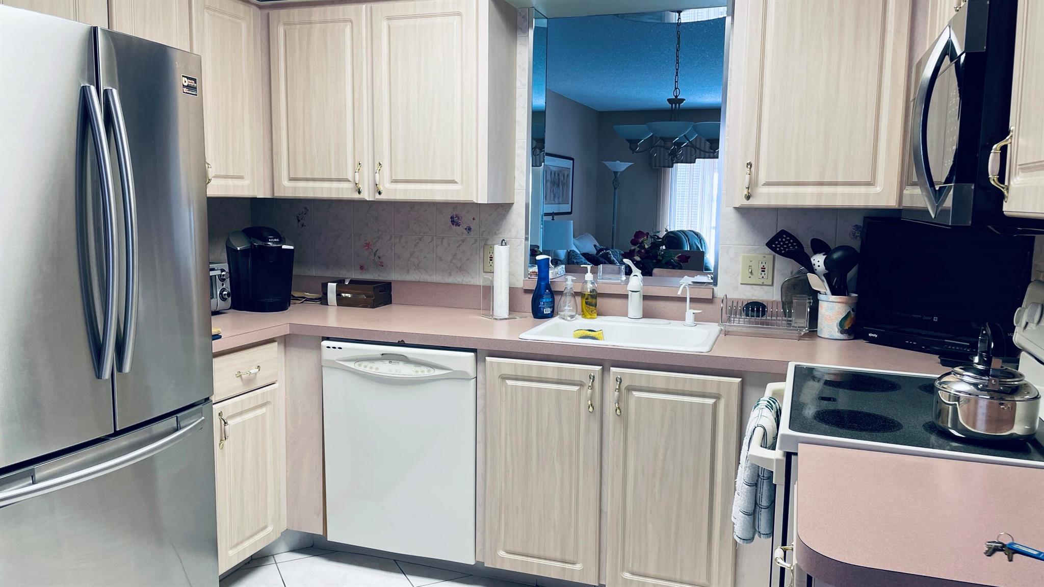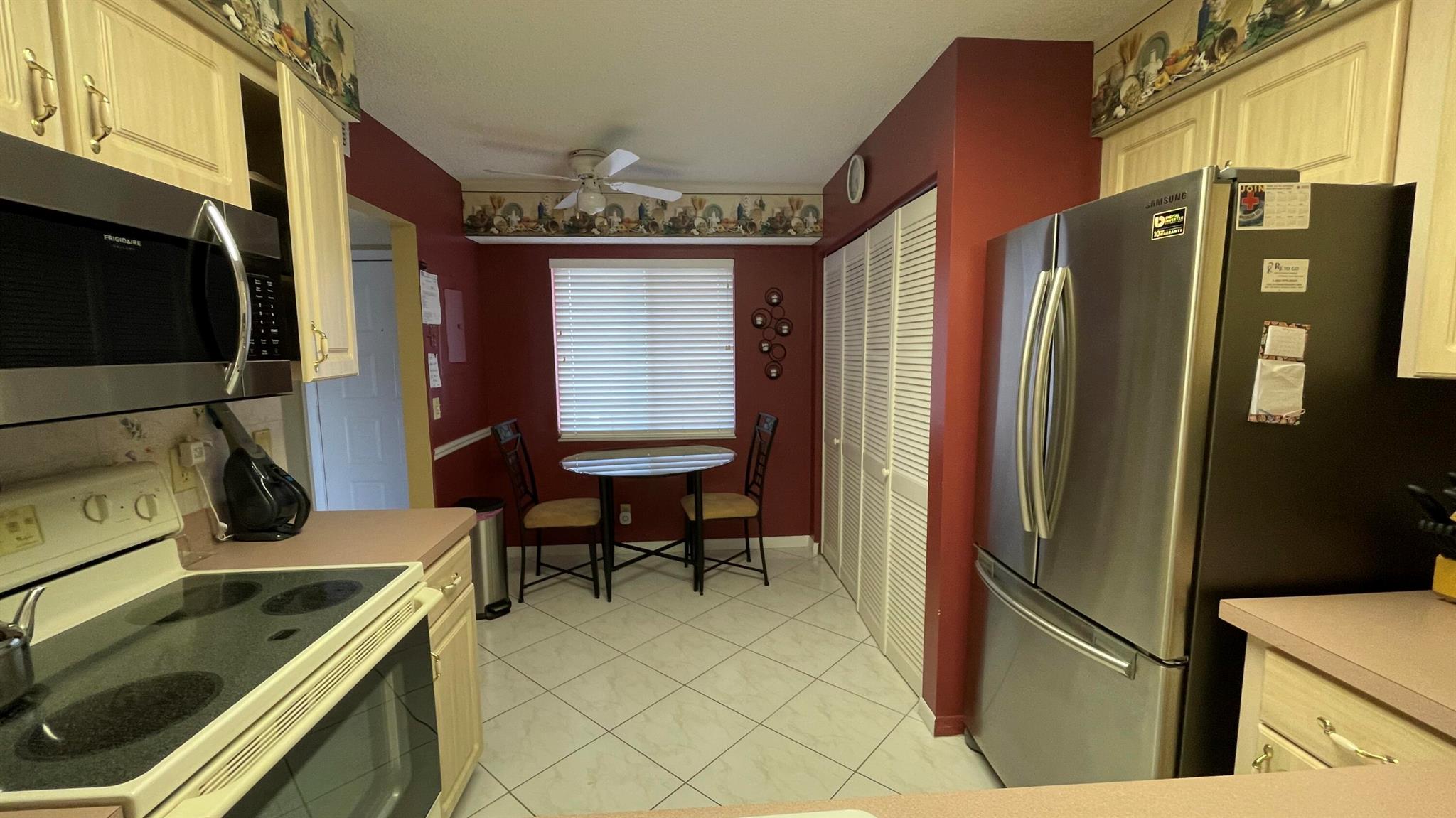 Enjoy serene lake views from the screened patio of this spacious Westchester model. This fully tiled condo offers an eat-in kitchen, two closets in the primary bedroom, and a washer/dryer tucked neatly into the kitchen closet. Includes roll down shutters for added protection. Ideally located next to the outdoor pool, the unit is available fully furnished--ready for you to move right in. HOA fees include water, cable TV, and internet.Located in the sought-after 55+ gated community of Huntington Lakes, residents enjoy access to a spectacular newly renovated clubhouse with amenities including an indoor pool, fitness center, tennis courts, movies, live entertainment, and more.