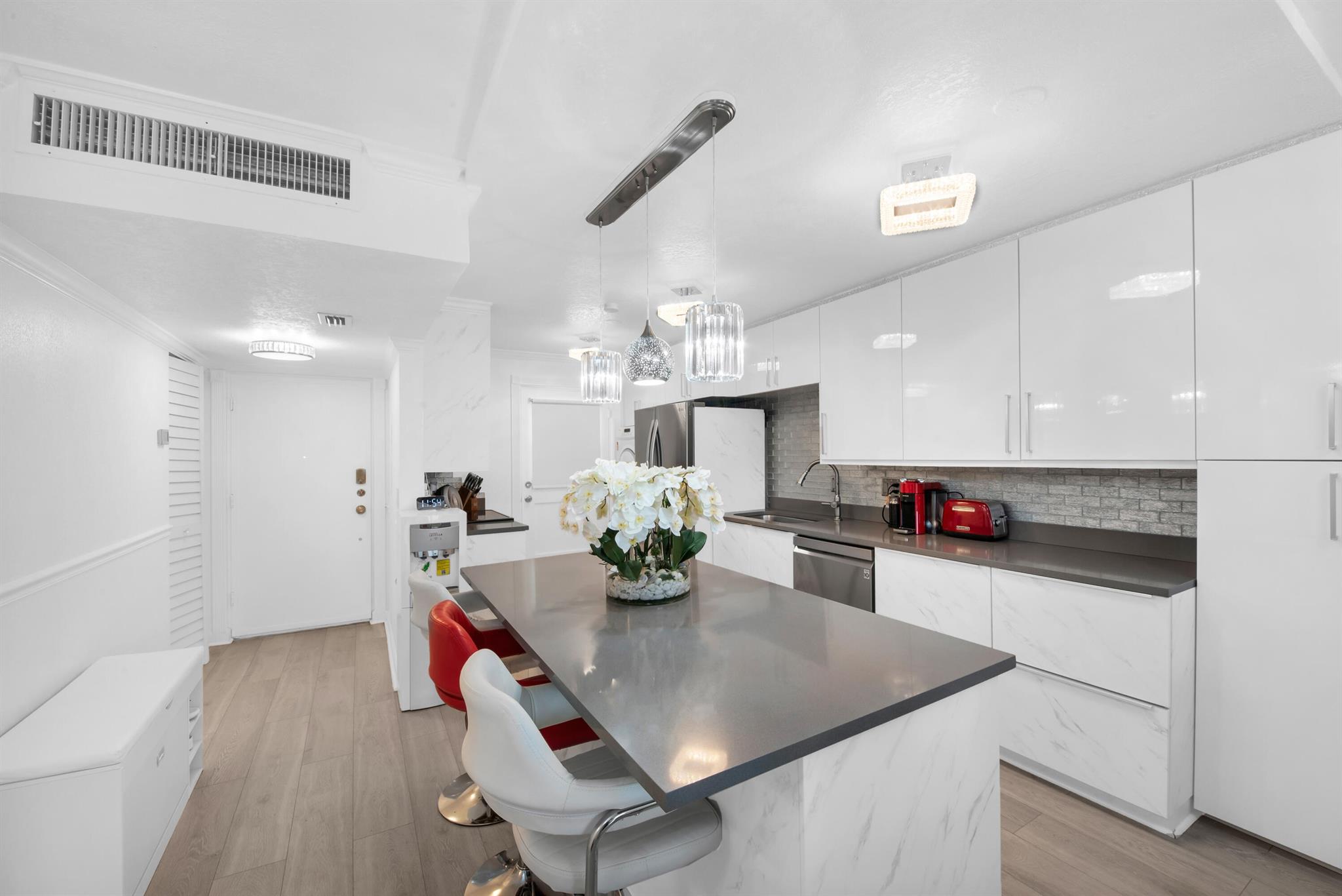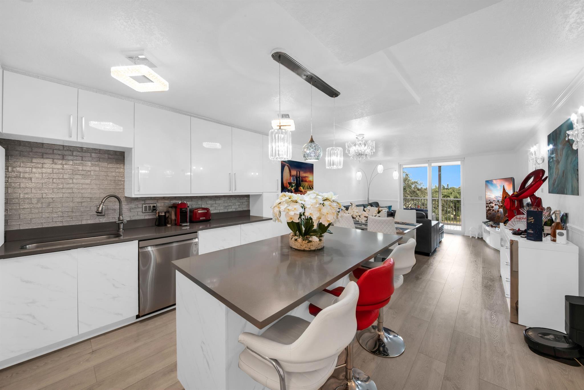 This meticulously remodeled 3 bedroom unit in Boca Teeca is calling the pickiest buyers to come make it their home! It has been completley remodeled with exquisite attention to detail.The top-notch work is evident in every corner, from the open concept granite countertop kitchen to the laminate floors throughout the entire condo and impact windows throughout. Additionaly, it comes fully furnished with tasteful and high-quality furniture.The balcony offers unobsructed views of a golfcourse, with palns to transform it to a park, ensuring that the view remains sereneCovenience is a key-located in a A rated school zone makes it ideal for families.Proximity to beaches, highways, hospital and airports ensures easy access to all the amenities and atractions. Special assessment paid in full