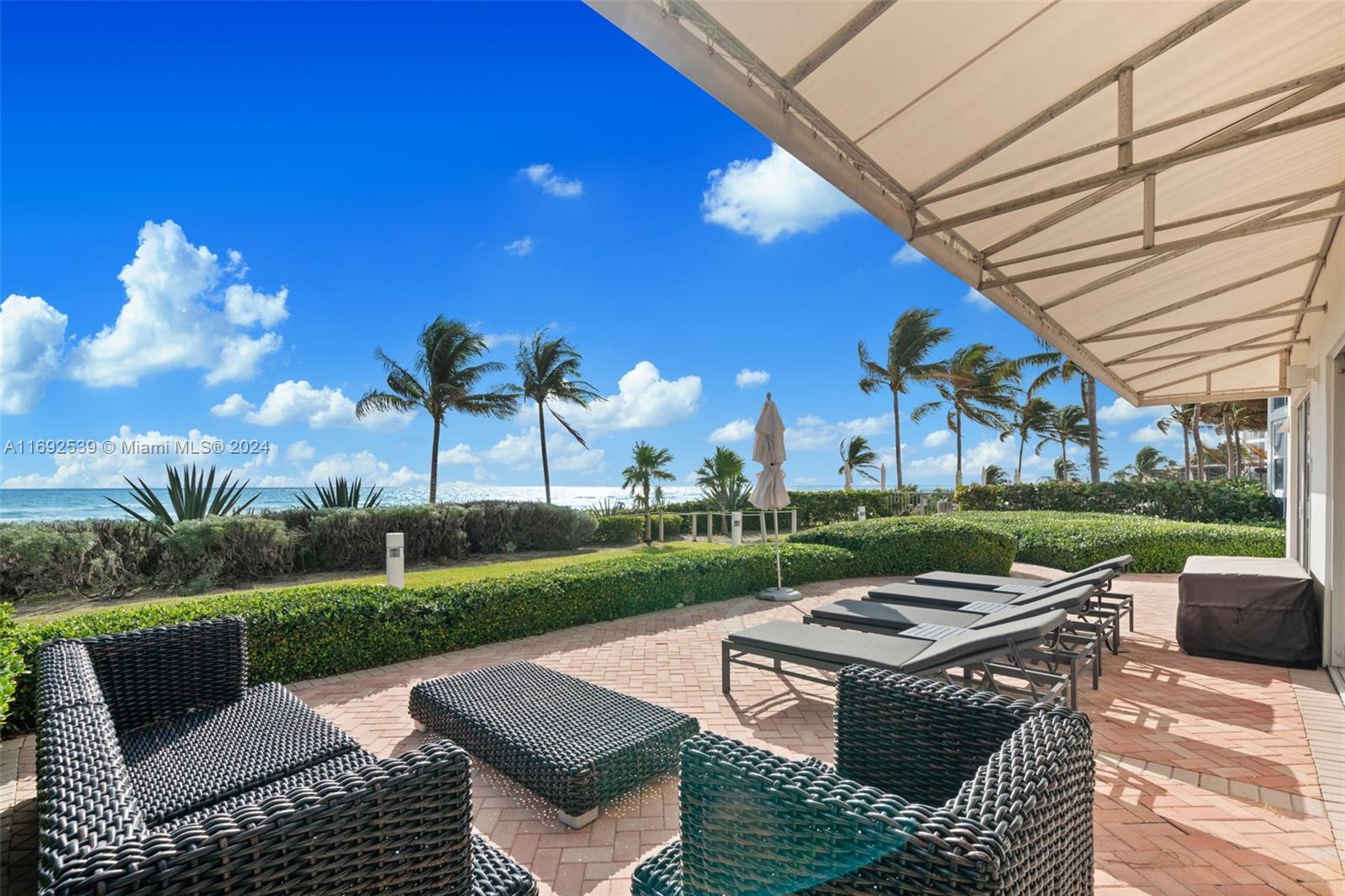 This exclusive beach villa redefines luxury with a unique feature: 45-second drive from street level directly into your private garage. Offering a seamless blend of privacy and coastal convenience, within 4,893 sqft of elegantly designed interiors and 686 sqft of private terraces. With soaring 14-foot ceilings, breathtaking ocean views, and refined living spaces, including 4 beds + den, 5.5 baths, private elevator, 2-car garage, and 3 reserved spaces. The main level features a custom entertainment bar, gourmet kitchen with SubZero and Miele appliances, and expansive primary suite with panoramic views, terrace access, and spa-like bath. The lower level includes guest suites, second kitchen, and beachside cabana, offering unmatched beachfront tranquility in Miami’s most exclusive enclave.