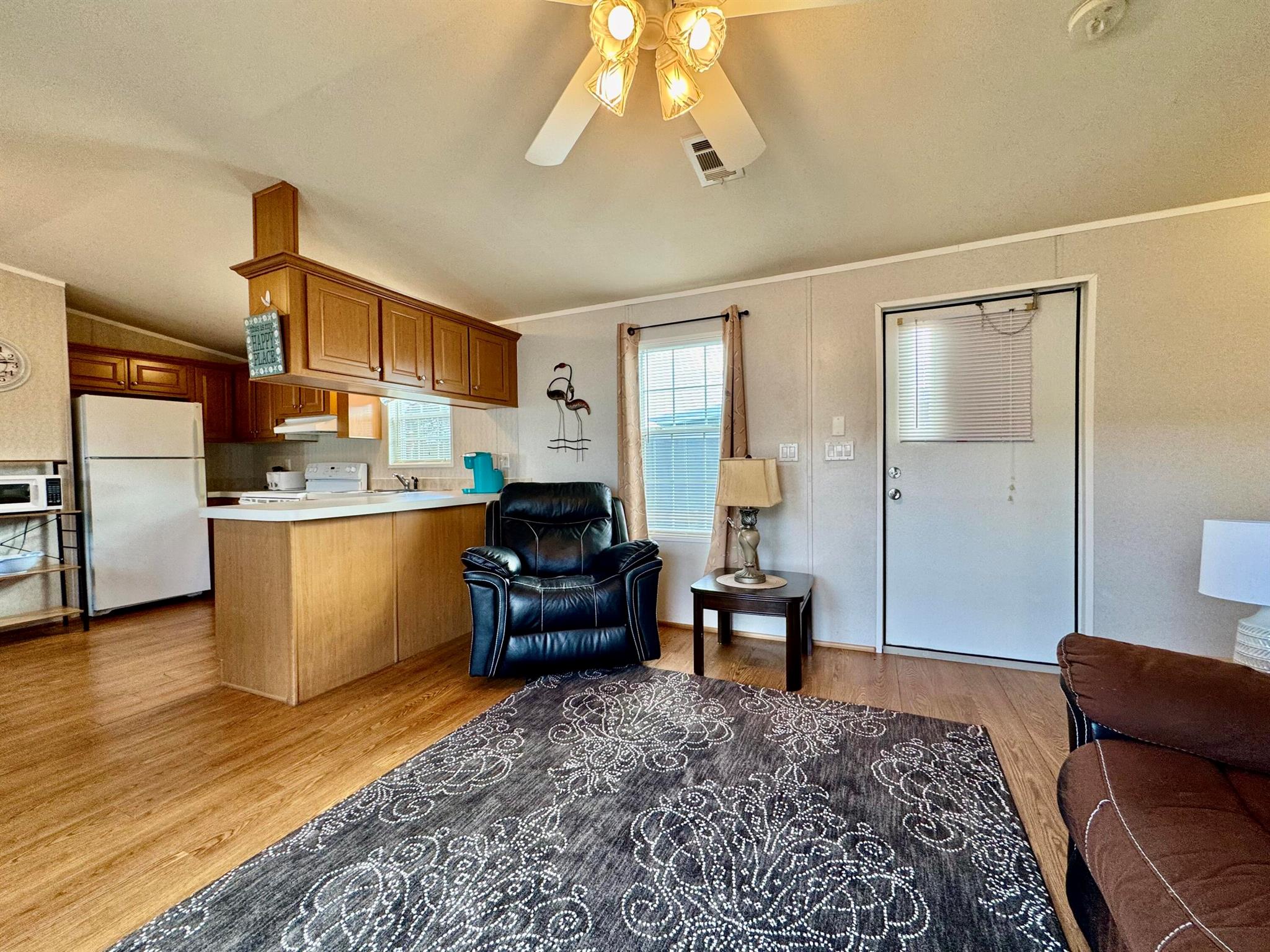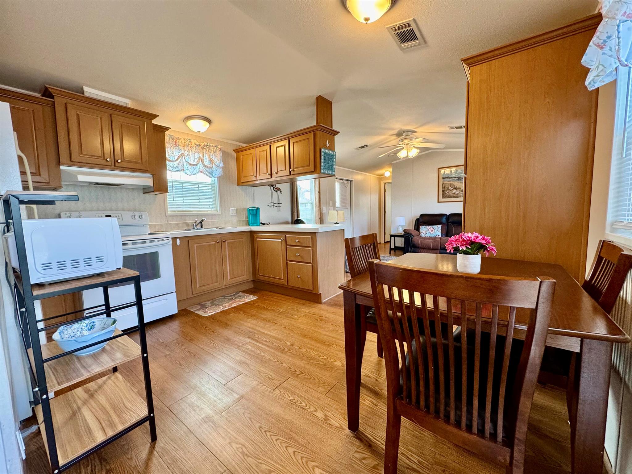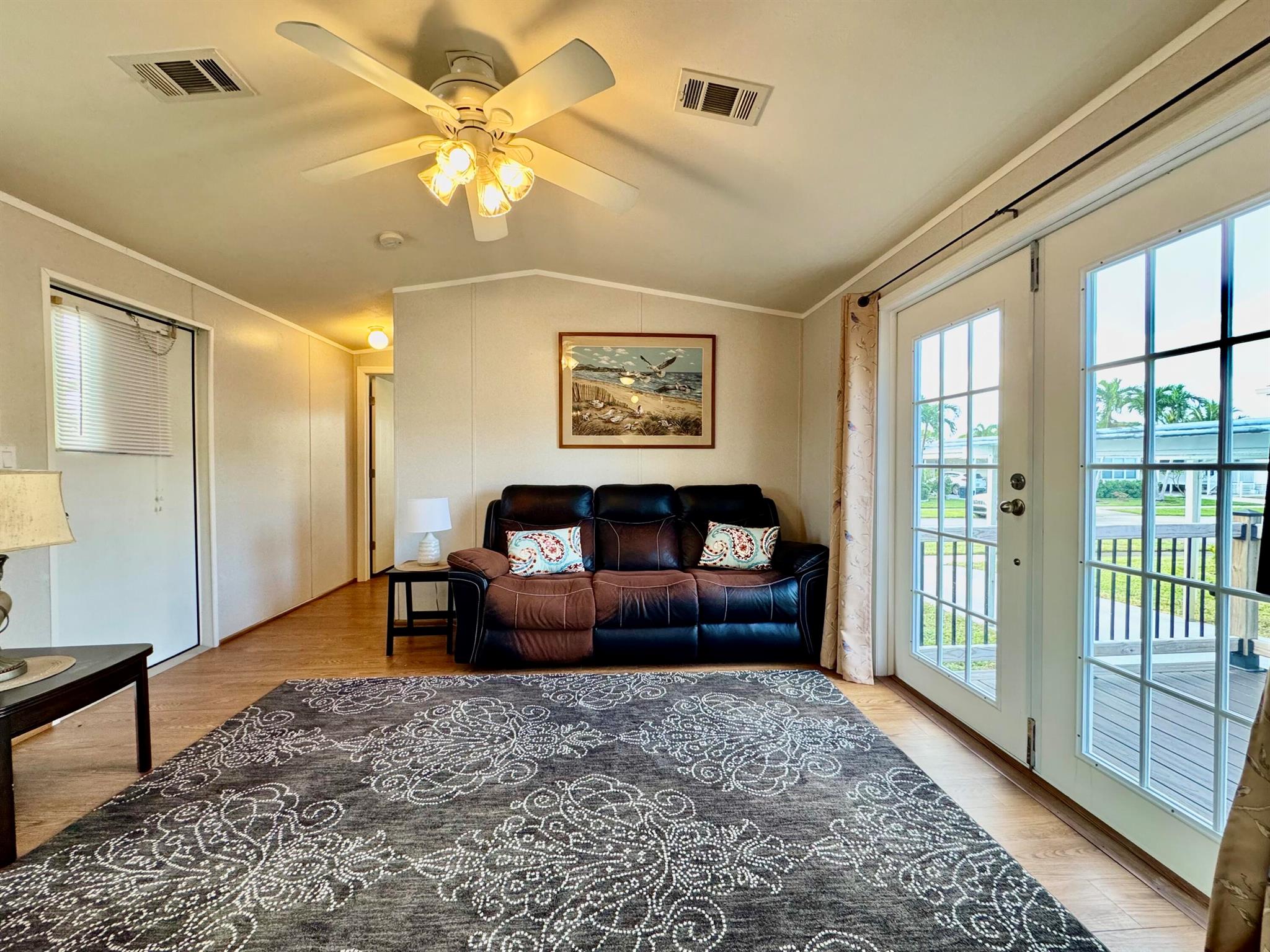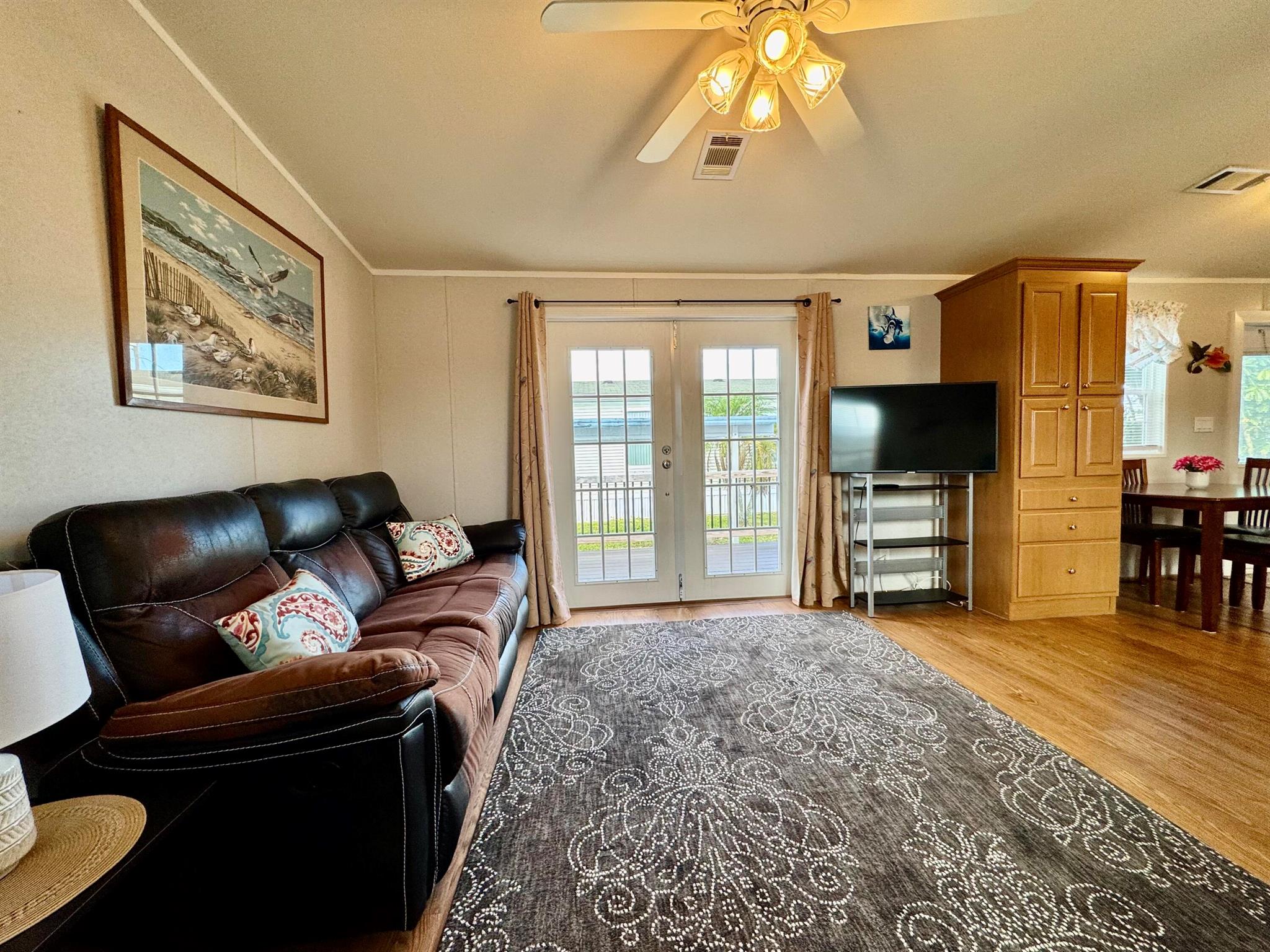 REDUCE: NEGOCIABLE WITH A BRAND NEW ROOF INSTALL IN MARCH 2025. GREAT OPPORTUNITY!!! Here's your chance to own a lovely 2-bedroom, 2-bath manufactured home in the peaceful Tropical Breeze 55+ community. This home is on a large, deeded lot (100x50) that you own! It features an open patio, carport, and a shed for extra storage. Inside, you'll find a remodeled master bathroom, french doors opening to a newer deck at house level, and no carpet--just clean, easy-to-maintain floors. Sold furnished and turnkey, this home is move-in ready. The community offers a heated pool and many activities to keep you busy, all within a quiet, peaceful street. This is a great opportunity for a relaxing and active lifestyle in a wonderful neighborhood. MAYBE PURCHASE WITH A LOAN / MORTGAGE / LENDER
