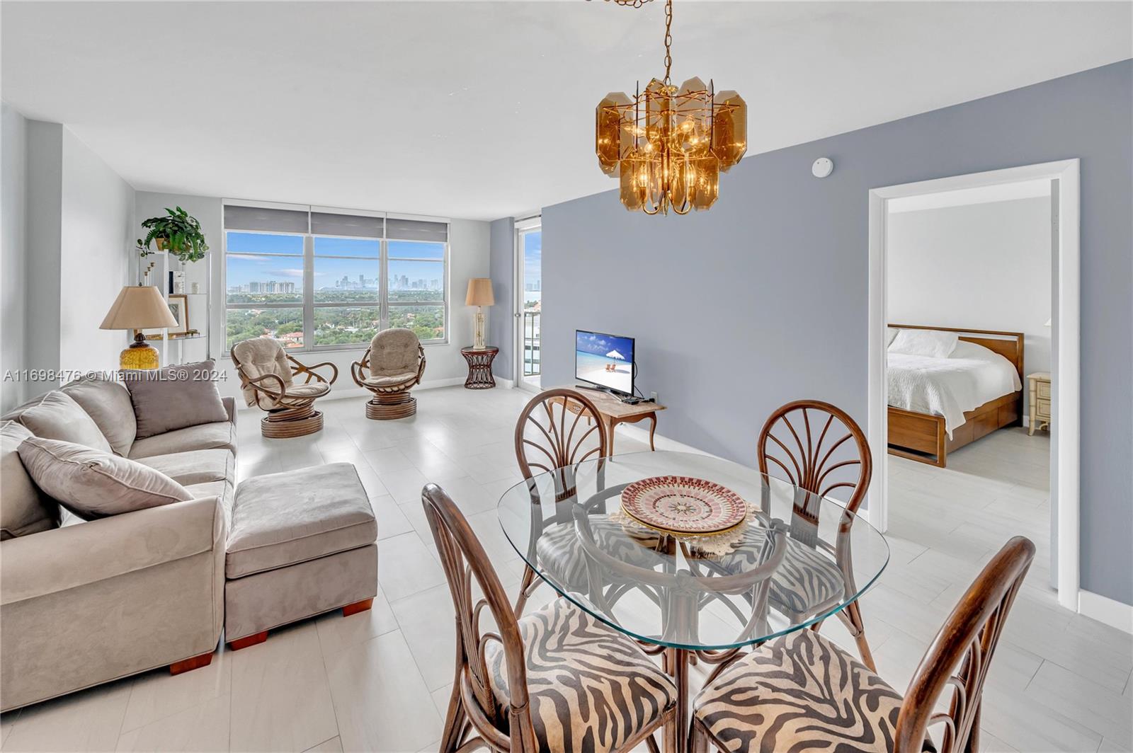 Waterfront condo at Tower Forty One, offering stunning Biscayne Bay and Miami Skyline views from every room. The sunlit unit features spacious interiors, large windows, and beautifully updated bathrooms. The primary suite includes ample storage with a large walk-in closet and space for a sitting area. The large balcony, accessible from the living room, provides serene sunset views. Enjoy the waterfront lifestyle with amenities such as a lobby concierge, valet parking, a swimming pool, a gym, a sauna, and tennis and basketball courts. The prime mid-beach location on 41st Street provides easy access to the beach, highway, and airport, and the walkable area, with nearby dining and shopping options, makes this a truly vibrant part of the city.