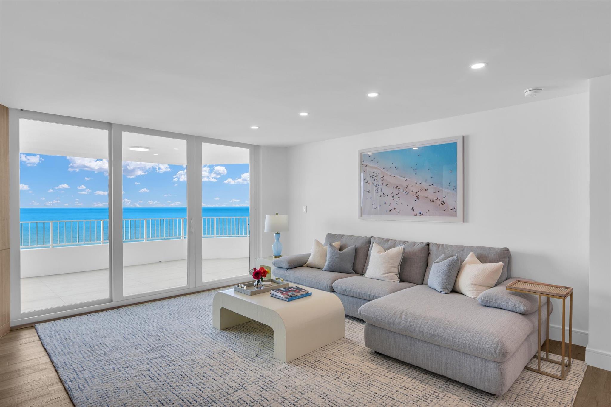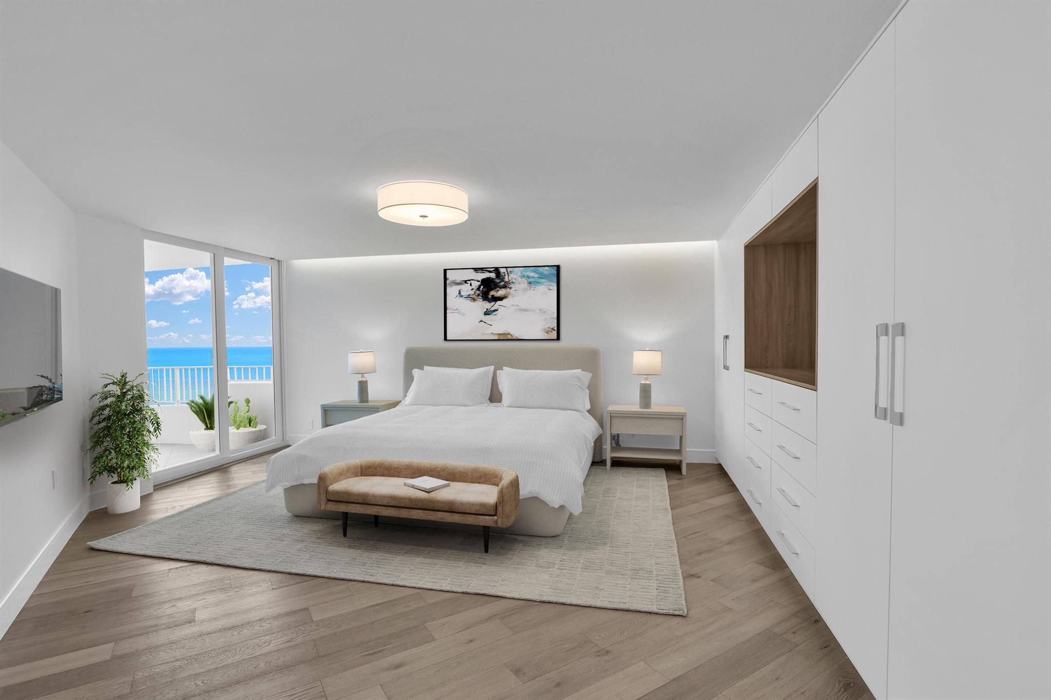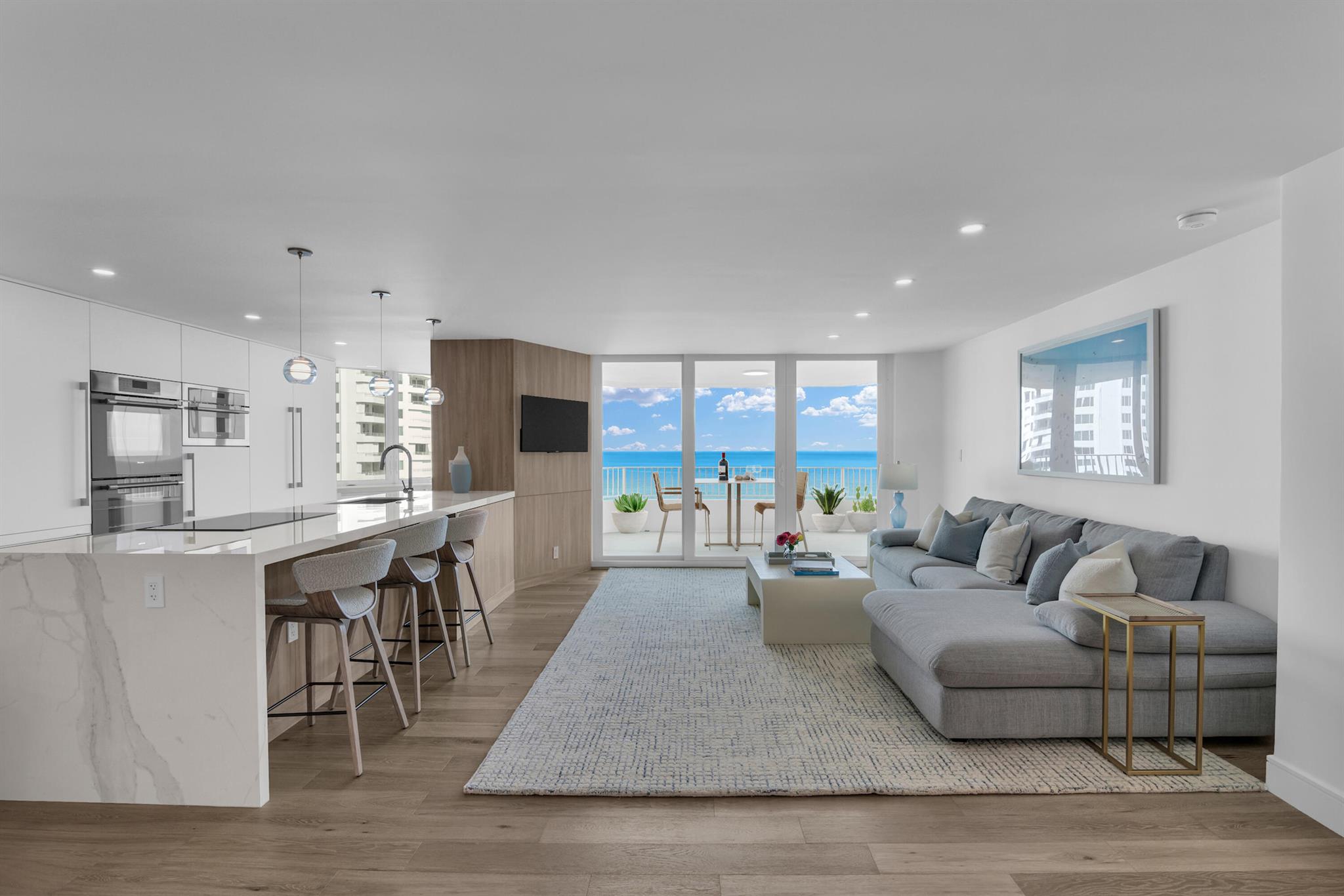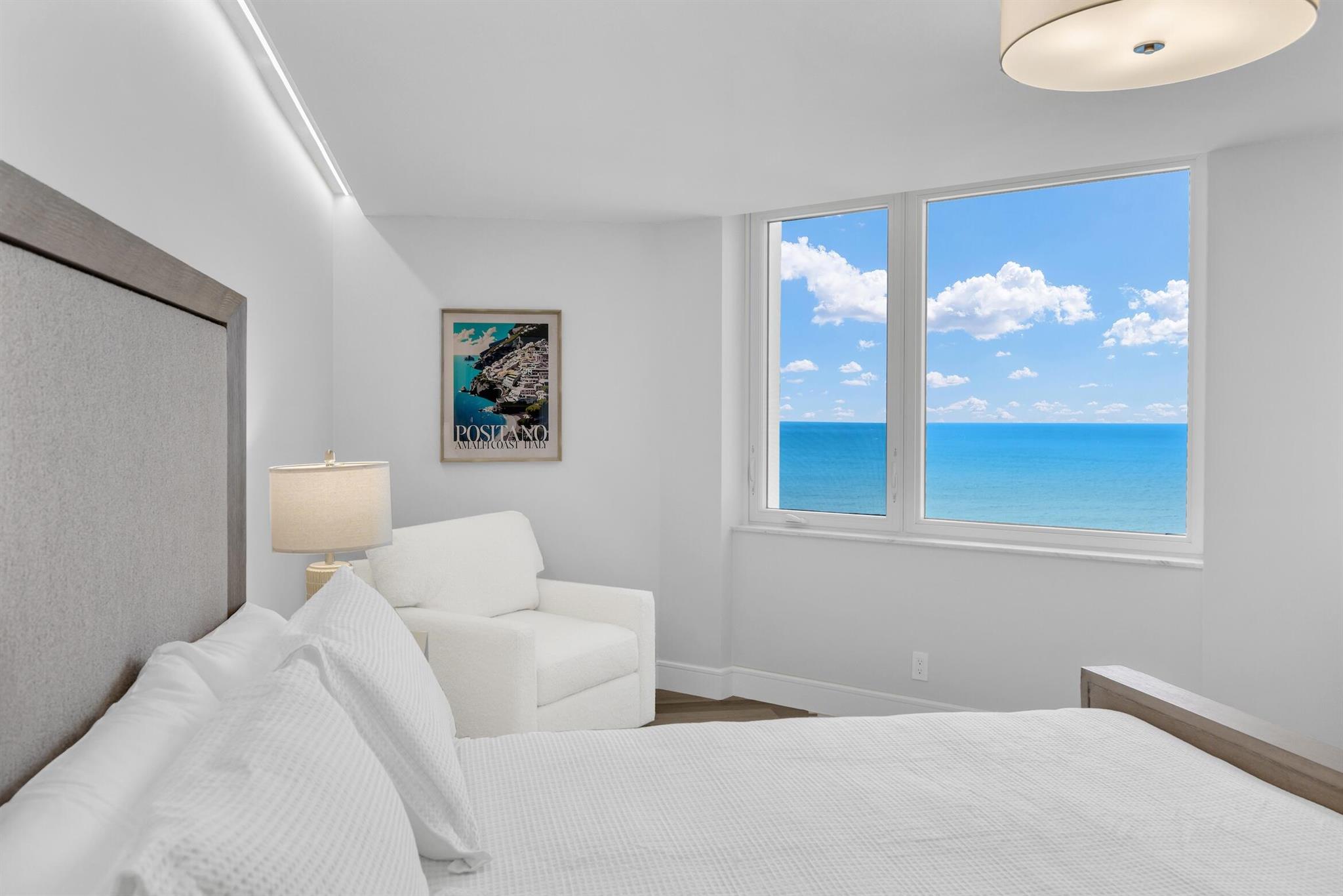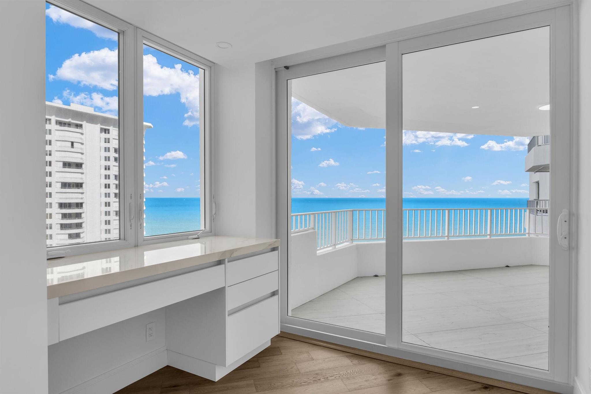 This just-renovated 16th-floor residence is professionally designed with impeccable taste and sophistication. Every room offers breathtaking direct ocean, city and Lake Boca views. Newly constructed, it features high-end Thermador appliances, custom cabinetry, and hardwood engineered oak floors, complemented by porcelain countertops with waterfall island. Split floor plan ensures privacy, spacious bathrooms with double sinks, built-in closets and custom bar with wine fridge, plus expansive oceanfront terrace. Positioned directly on the beach with private beach access and luxurious amenities such as an ocean-side swimming pool, a daily beach umbrella service, state-of-the-art fitness center, and two tennis courts. All comes with the lowest maintenance fees on the beach.
