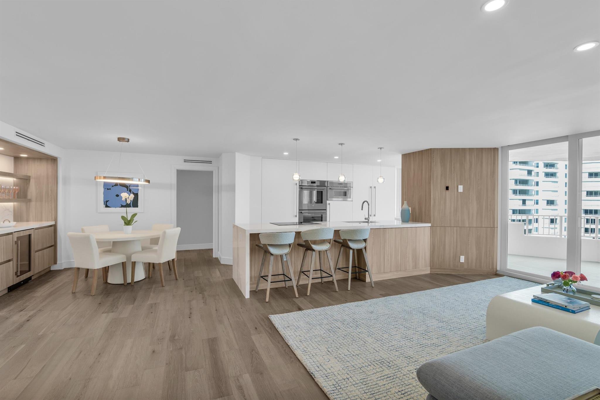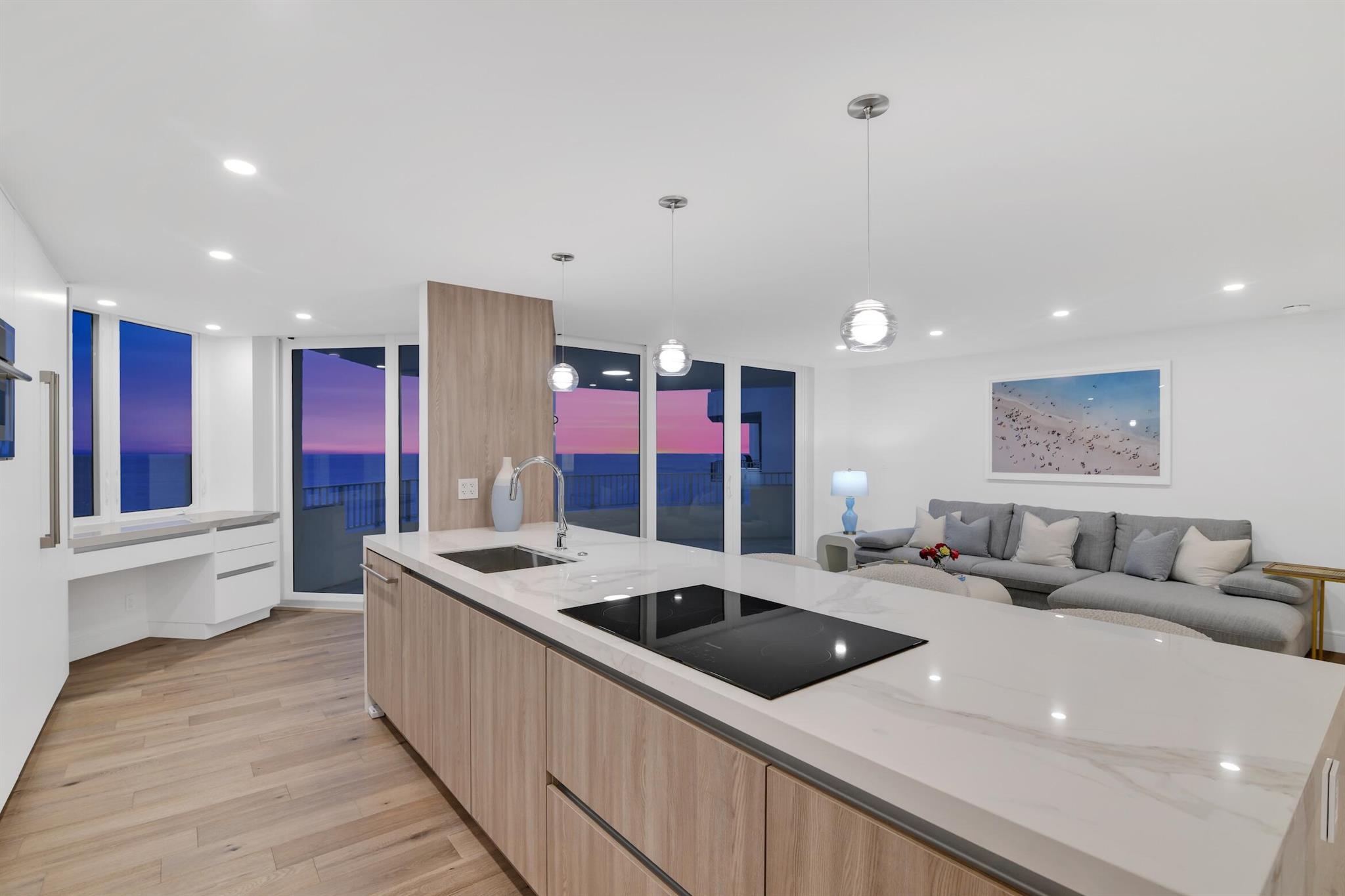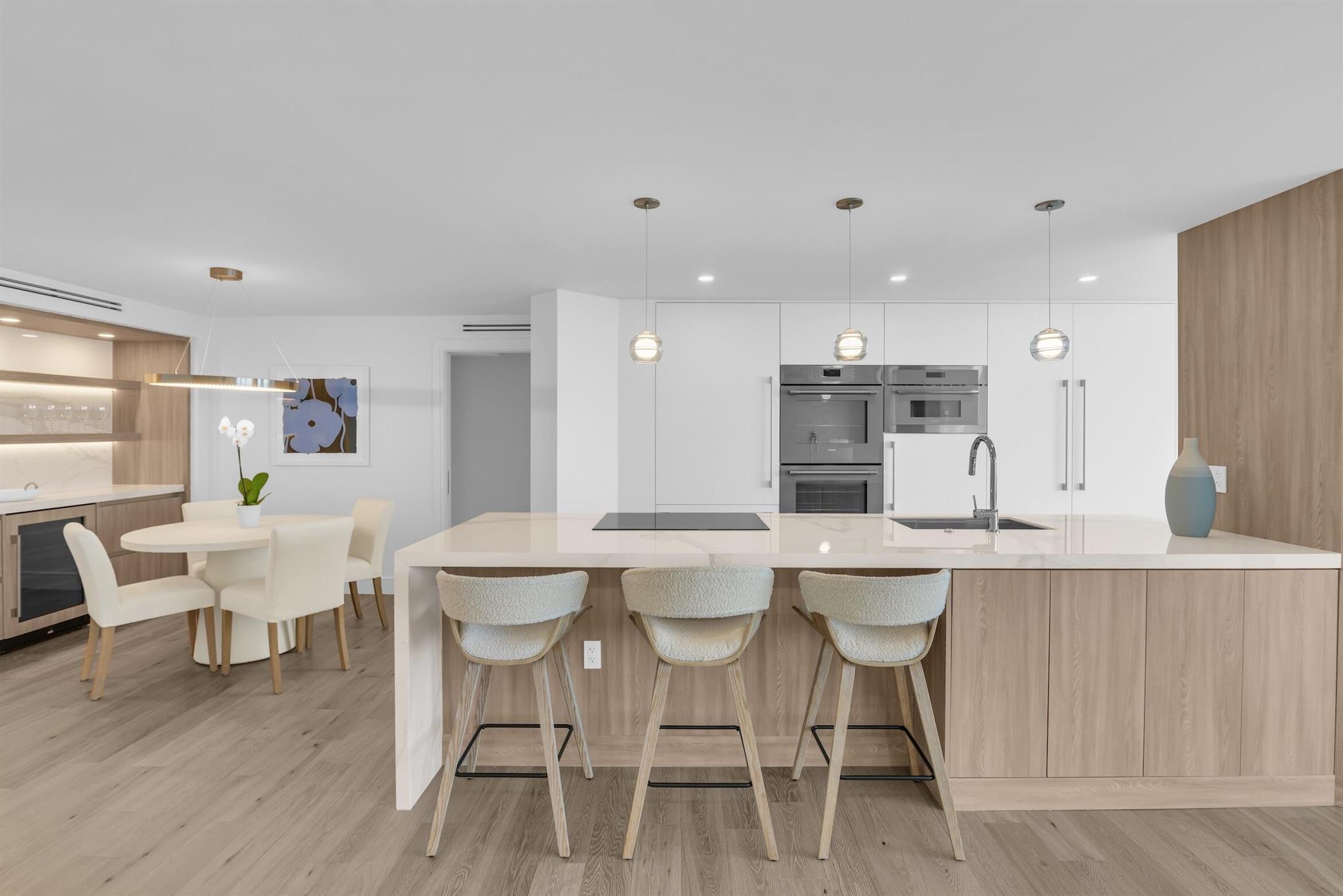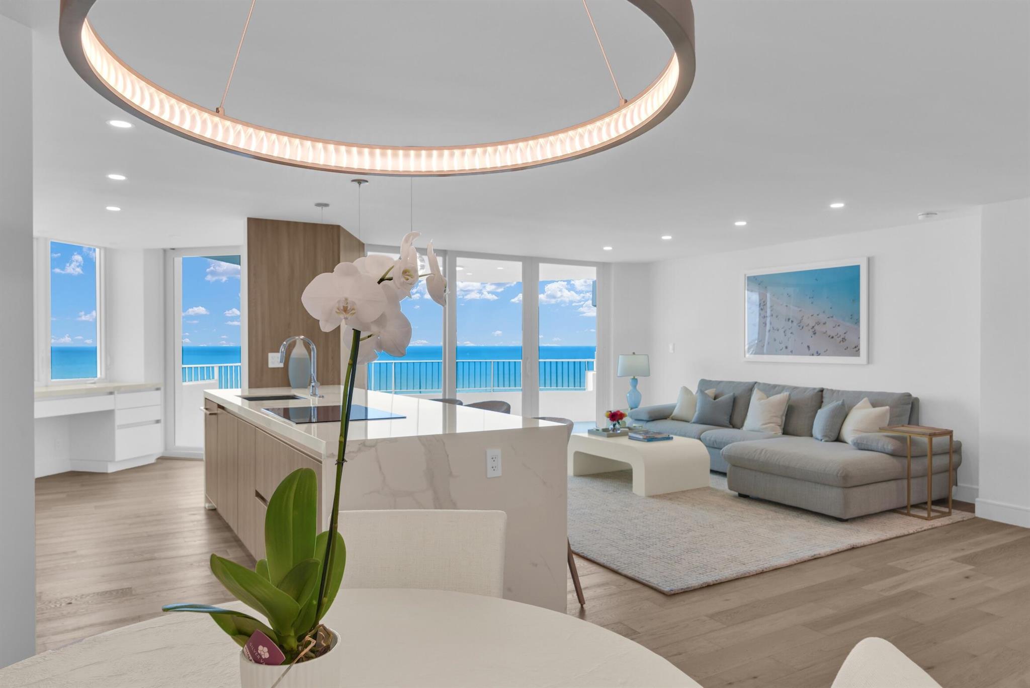 This just-renovated 16th-floor residence is professionally designed with impeccable taste and sophistication. Every room offers breathtaking direct ocean, city and Lake Boca views. Newly constructed, it features high-end Thermador appliances, custom cabinetry, and hardwood engineered oak floors, complemented by porcelain countertops with waterfall island. Split floor plan ensures privacy, spacious bathrooms with double sinks, built-in closets and custom bar with wine fridge, plus expansive oceanfront terrace. Positioned directly on the beach with private beach access and luxurious amenities such as an ocean-side swimming pool, a daily beach umbrella service, state-of-the-art fitness center, and two tennis courts. All comes with the lowest maintenance fees on the beach.