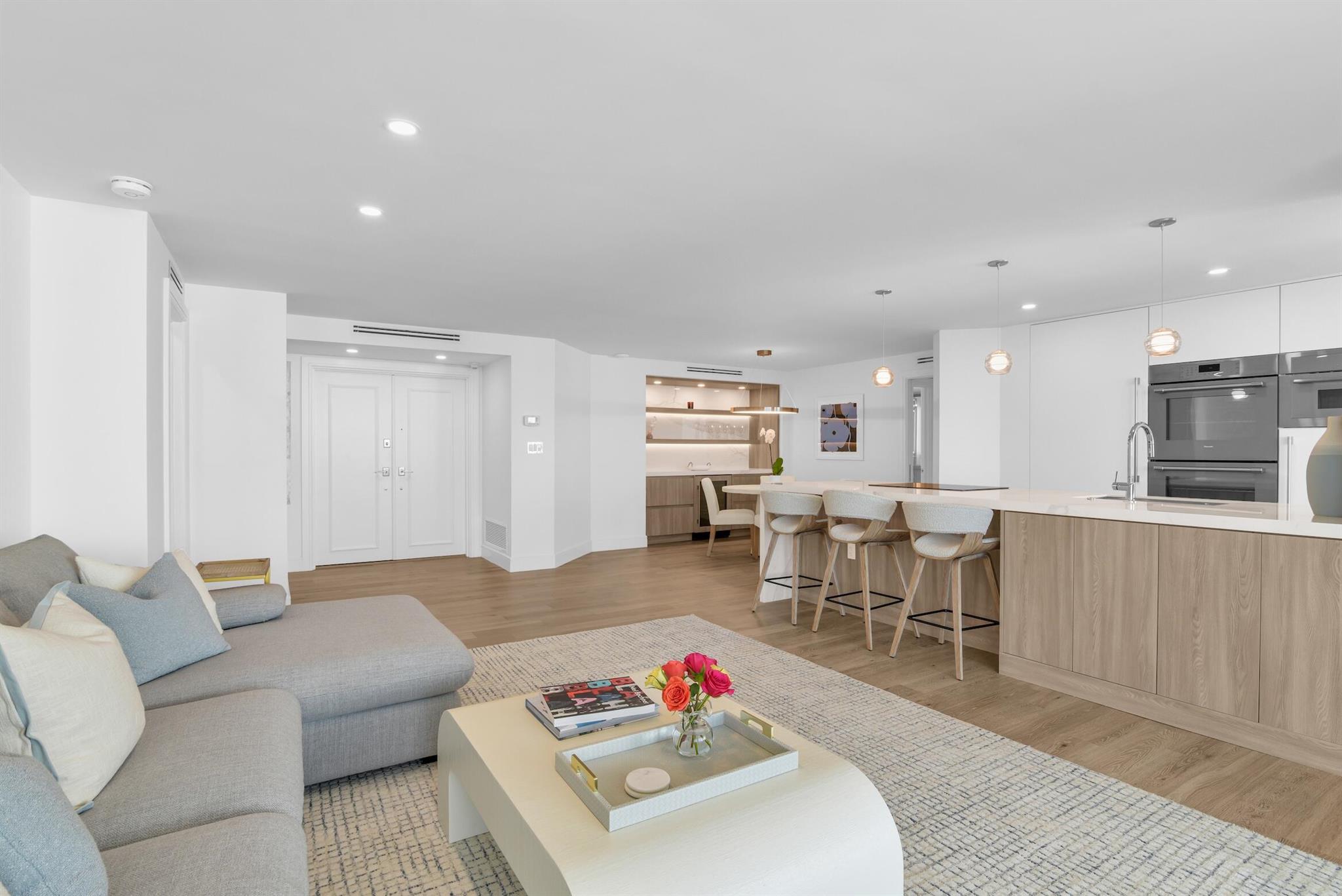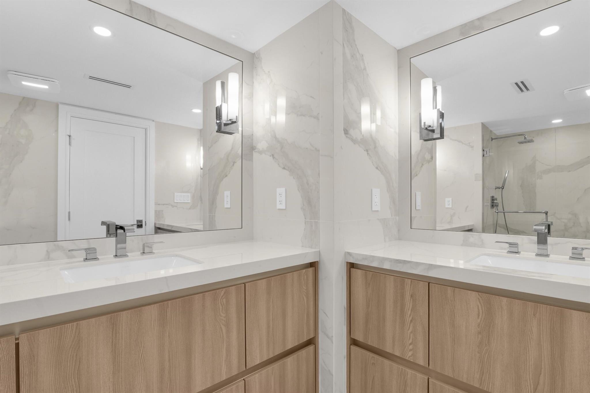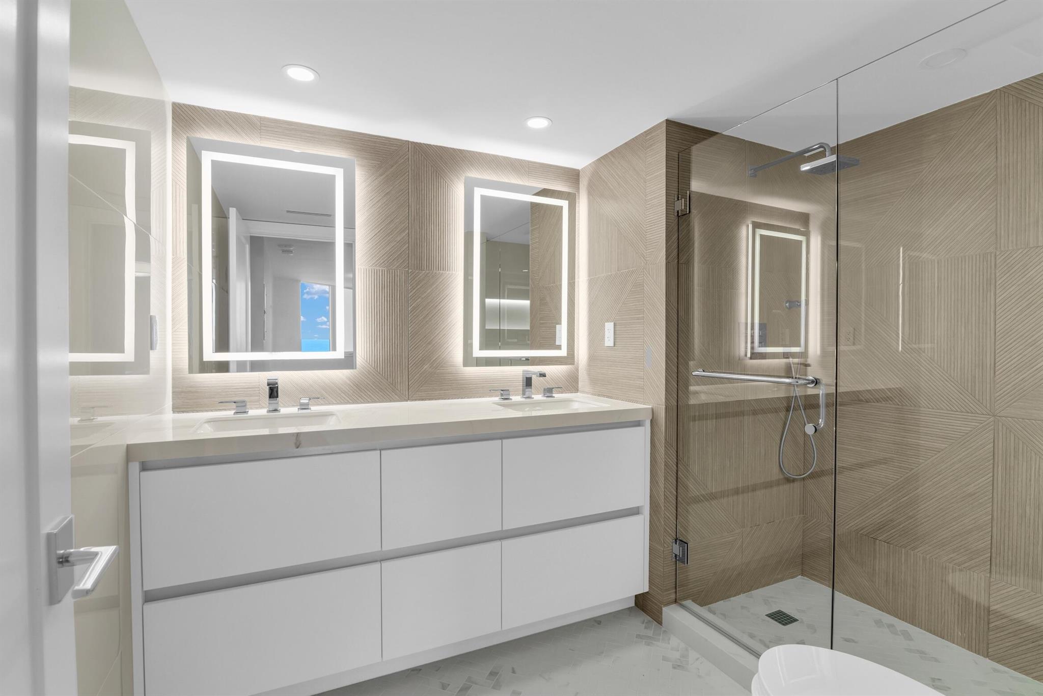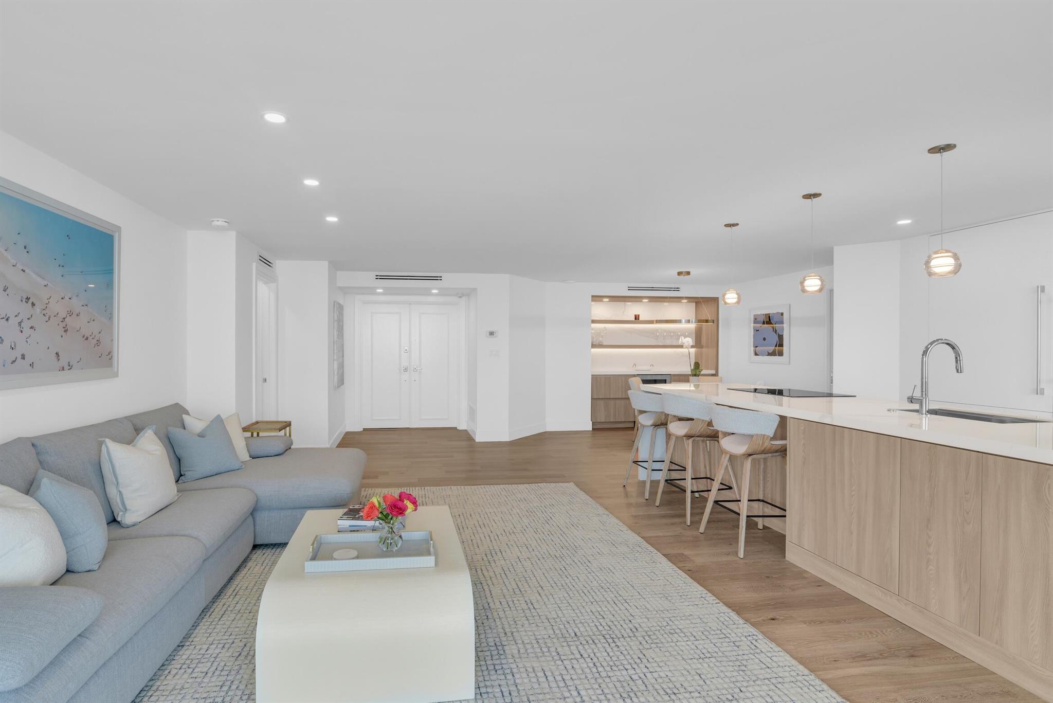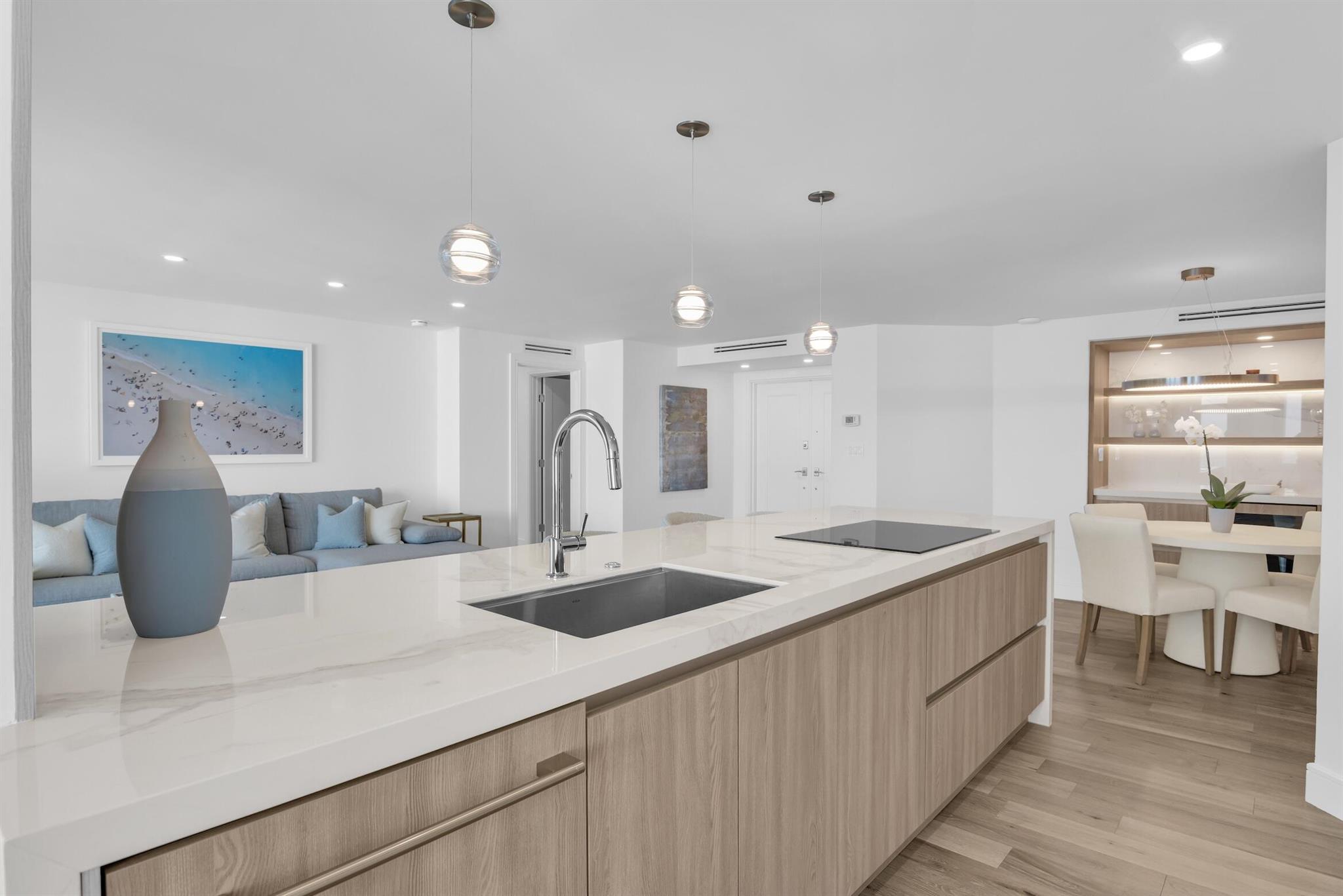 This just-renovated 16th-floor residence is professionally designed with impeccable taste and sophistication. Every room offers breathtaking direct ocean, city and Lake Boca views. Newly constructed, it features high-end Thermador appliances, custom cabinetry, and hardwood engineered oak floors, complemented by porcelain countertops with waterfall island. Split floor plan ensures privacy, spacious bathrooms with double sinks, built-in closets and custom bar with wine fridge, plus expansive oceanfront terrace. Positioned directly on the beach with private beach access and luxurious amenities such as an ocean-side swimming pool, a daily beach umbrella service, state-of-the-art fitness center, and two tennis courts. All comes with the lowest maintenance fees on the beach.