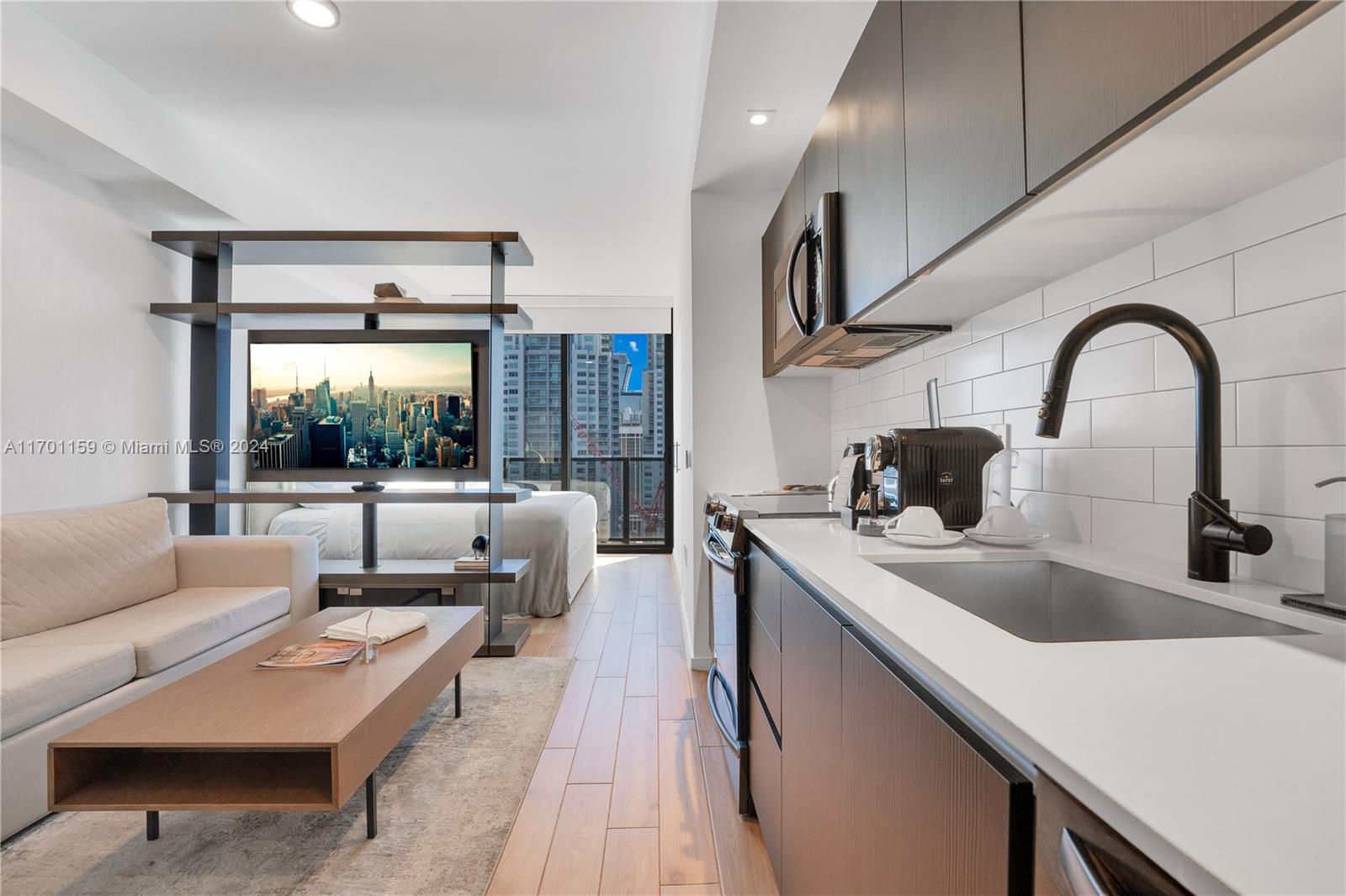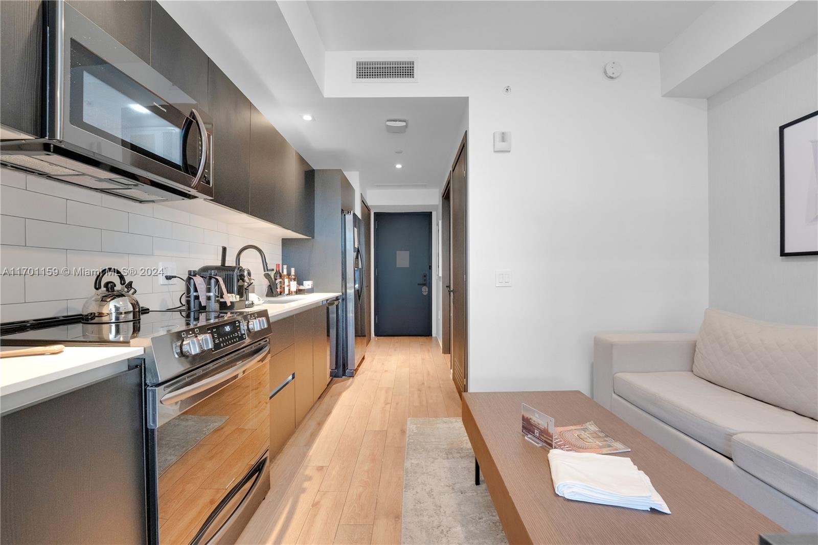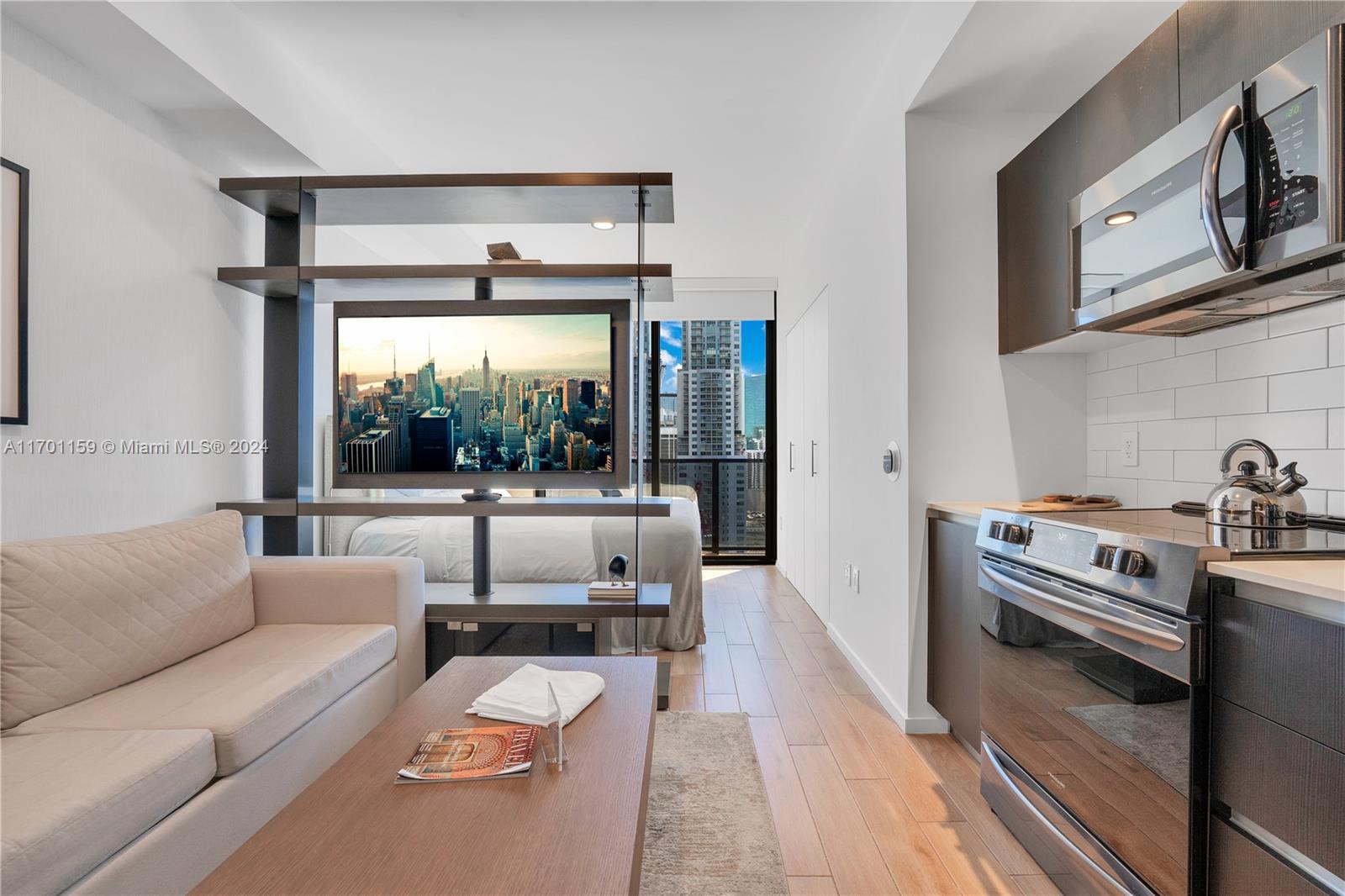 iscover luxurious living in the heart of Miami , a fully furnished residence offering breathtaking views of Biscayne Bay and the Miami skyline. This modern unit boasts floor-to-ceiling windows and a 9’2” ceiling height, seamlessly blending natural light with its elegant interior design.Spacious Balcony: Soak in stunning water and city views. Porcelain Wood-Grain Tile Flooring: Beautiful and durable throughout the unit. Custom Italkraft Kitchen Cabinetry: Italian design paired with quartz countertops for a sleek, functional space. Frigidaire Stainless Steel Appliances: Includes a built-in microwave and more. Smart Features: Ecobee thermostat, smart keyless entry, and pre-wiring for high-speed communication and entertainment systems. Convenience: Built-in full-size washer and dryer.