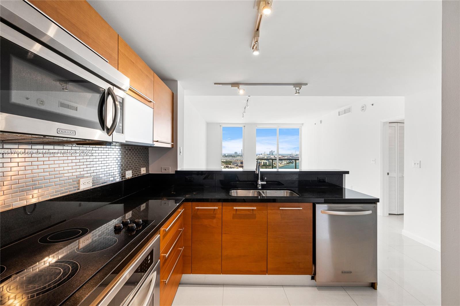 Welcome to this stunning waterfront 1-bedroom, 1-bath residence on the 24th floor of the luxurious Vizcayne South Tower. Enjoy incredible sweeping views of Biscayne Bay and Miami Beach from your spacious private terrace. The unit boasts 9 ft ceilings, floor-to-ceiling windows, and elegant white glass porcelain floors throughout. You'll love the contemporary light fixtures, marble bath and shower, and a European-style kitchen equipped with stainless steel appliances. This amazing residence also includes a walk-in closet and comes with 1 assigned parking space. The Vizcayne building offers first-class amenities, including a state-of-the-art fitness center, a full-service spa, four luxurious pools, a jogging track, a party room, conference rooms, valet service, and much more.