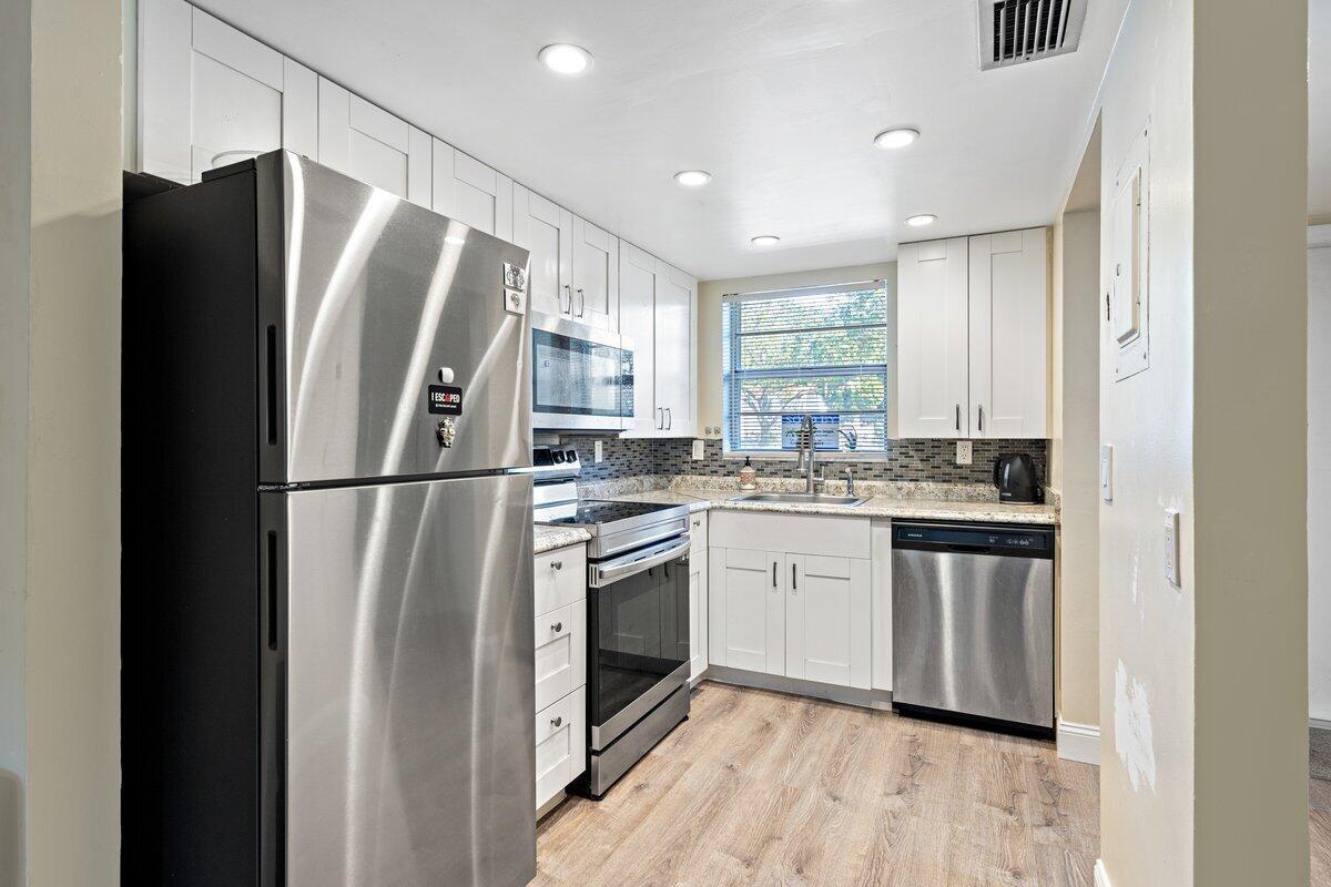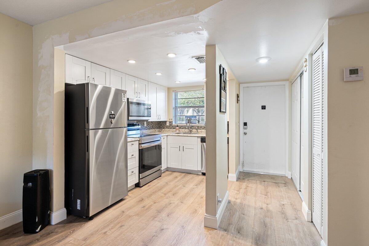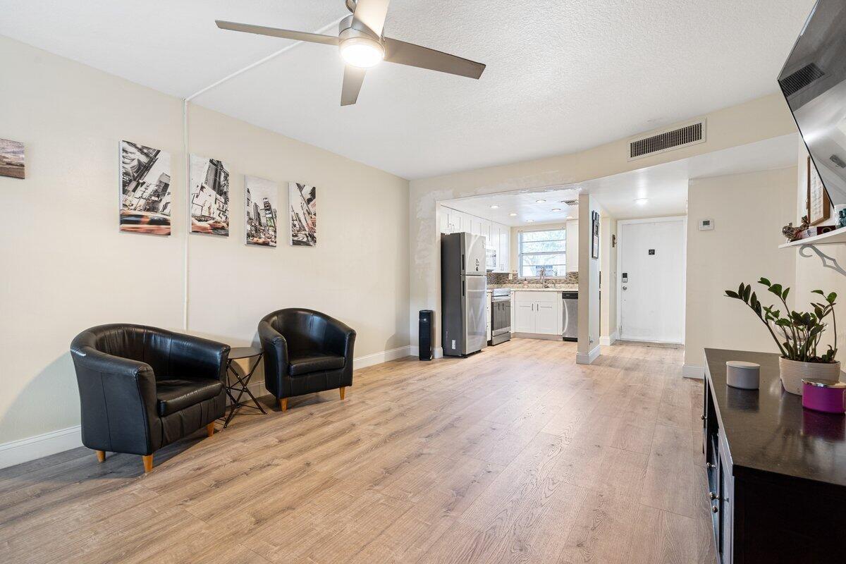 SELLER TO OFFER 6 MONTHS HOA DUES PAID AT CLOSING! This property is an incredible investment opportunity! Step into modern elegance with this beautifully updated 890 SqFt condo. Featuring an open-concept design, the wall separating the kitchen and living room has been removed, creating a seamless flow perfect for entertaining. The updated kitchen boasts new appliances, stylish cabinets, and sleek countertops, while the upgraded flooring adds warmth and continuity throughout the entire unit. With a new A/C and water heater, you can enjoy lower maintenance costs and peace of mind. Centrally located in West Palm Beach, you'll be minutes from I-95, the Turnpike, Tanger outlets, City Place, Kravis Center, Clematis Street, PBI Airport, Beaches, Palm Beach Island, and more!