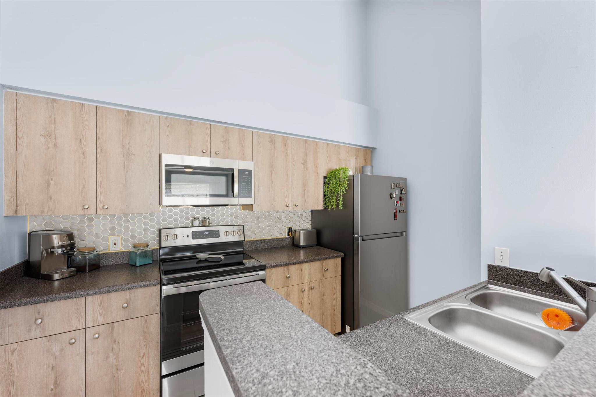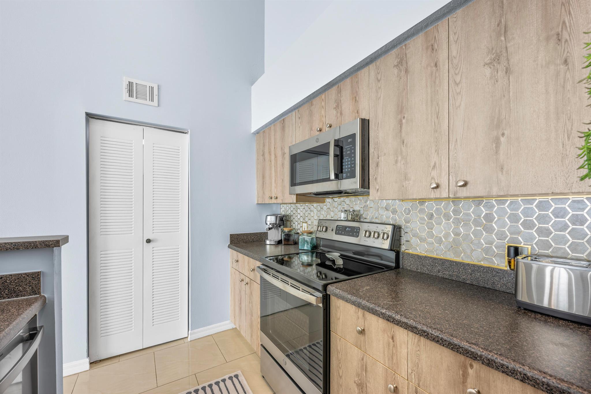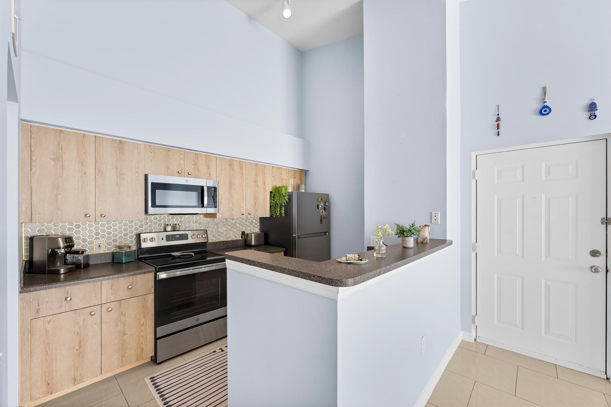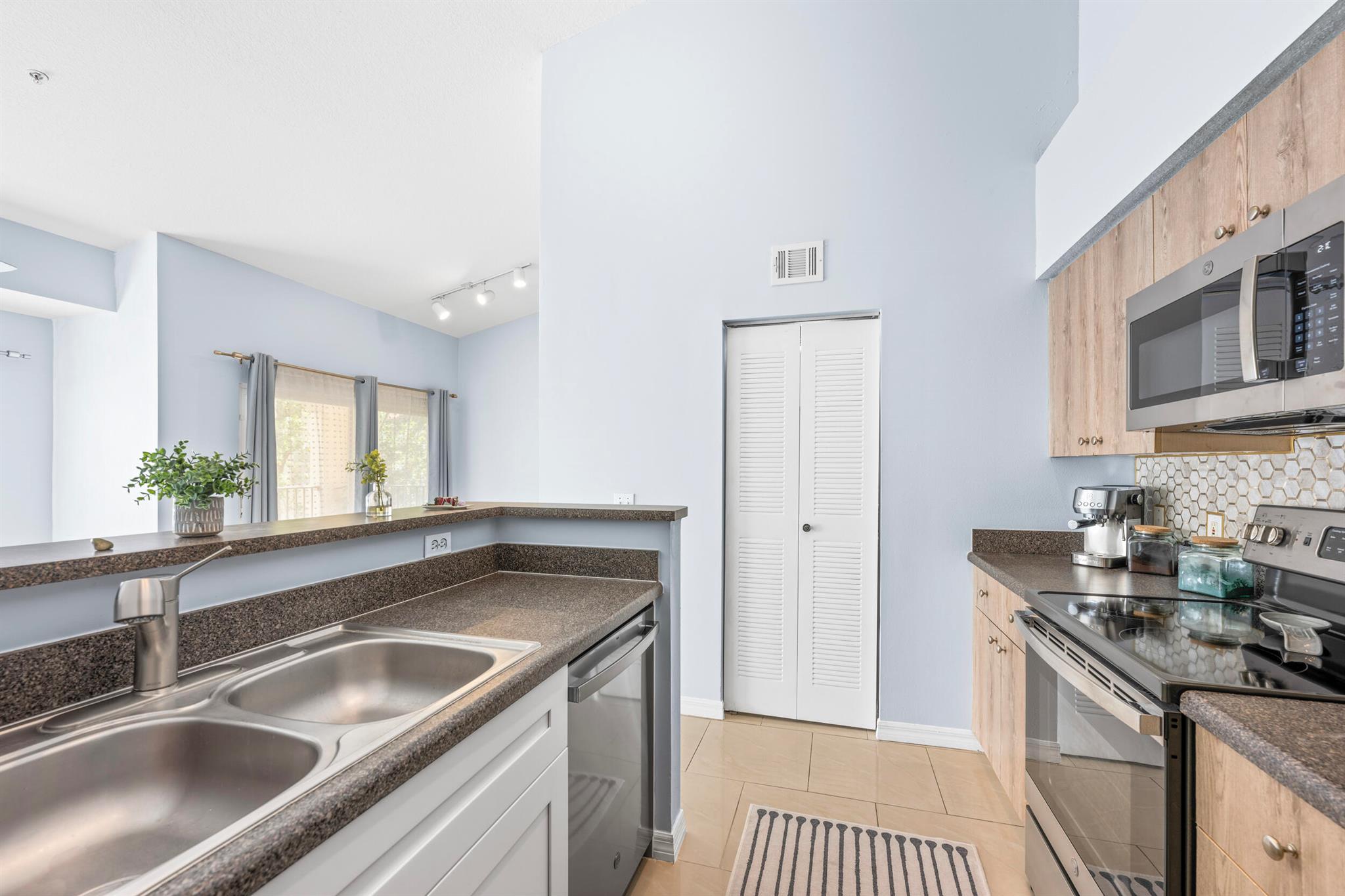 Step into this beautiful second-floor corner unit, where high vaulted ceilings and elegant porcelain tiles create a sense of space and sophistication. Relax or entertain on your private open balcony. The modern kitchen features new brand-new appliances, while the recently installed A/C and water heater ensure year-round comfort and efficiency.The bedroom offers a generously sized walk-in closet, providing ample storage. With internet, cable, water, and sewer included in the HOA, convenience is a given. This pet-friendly, gated community is packed with amenities, including a fitness center, sparkling pool and jacuzzi, basketball courts, and more. Investors, take note--this unit is lease-ready from day one!Don't miss out on this exceptional opportunity!