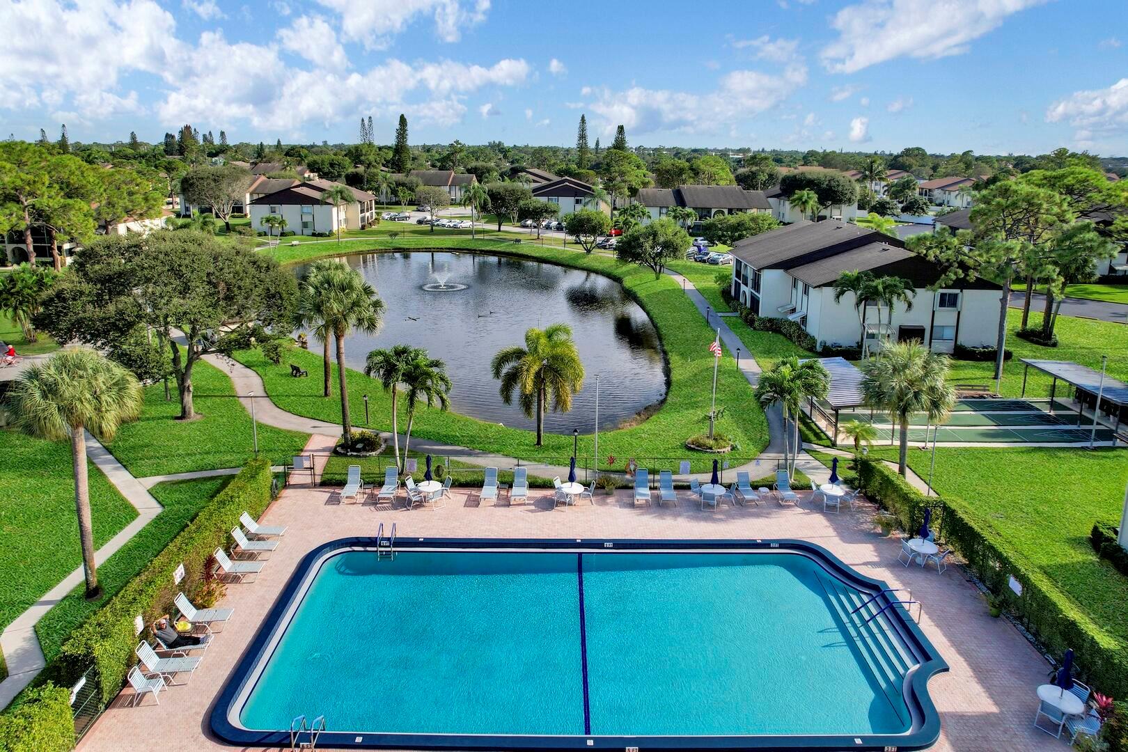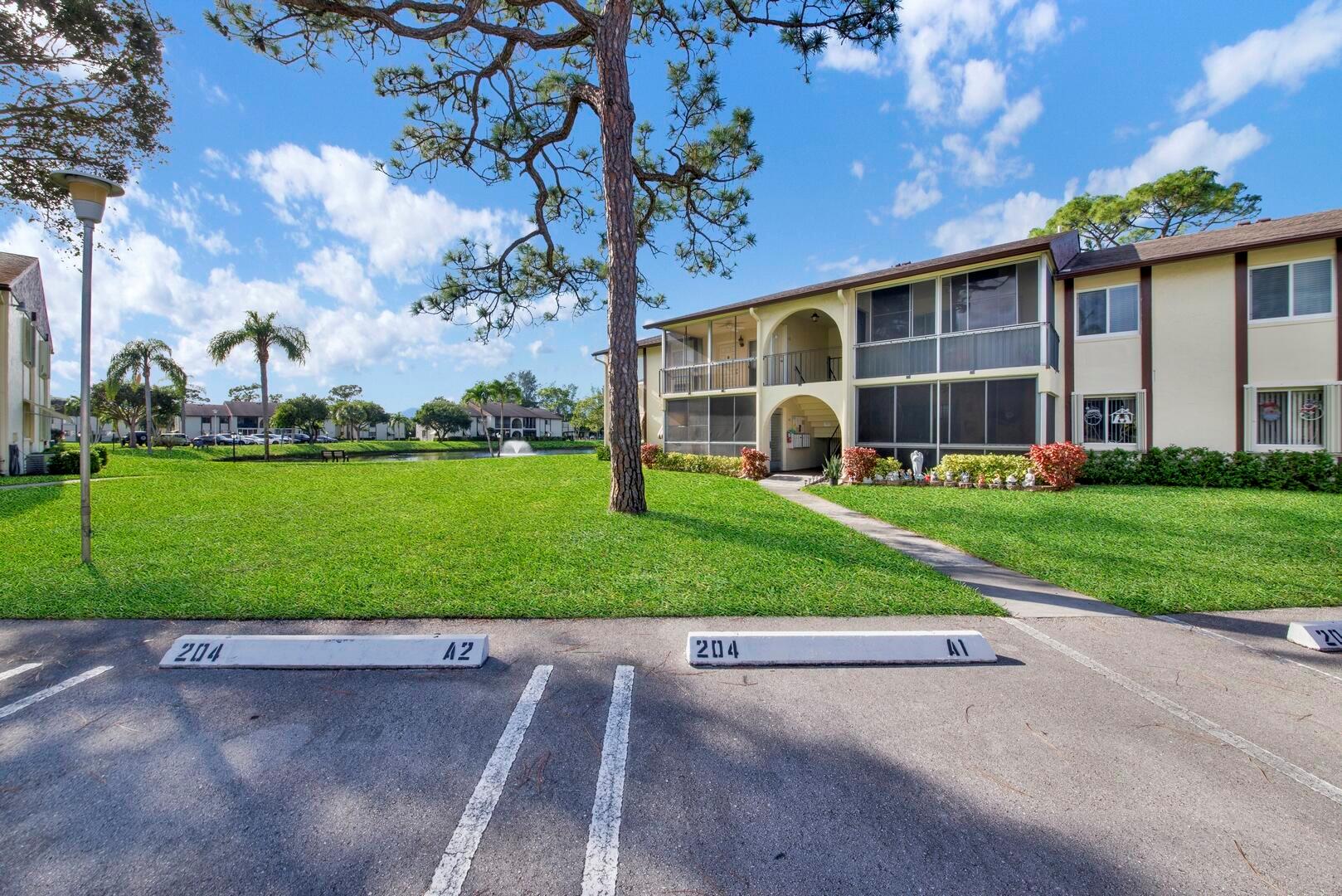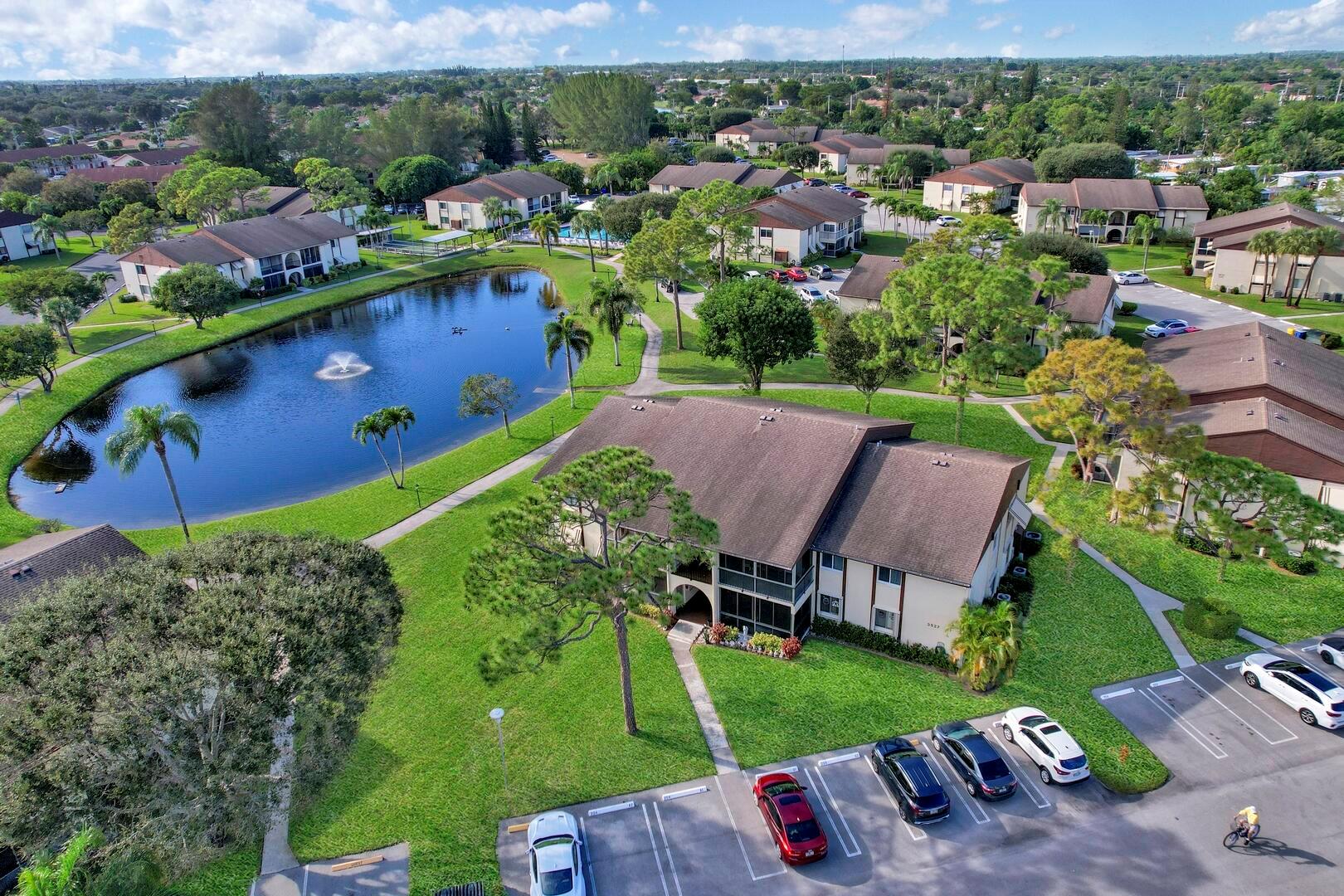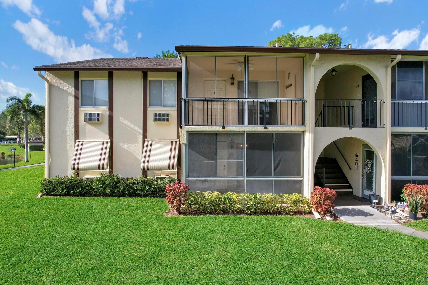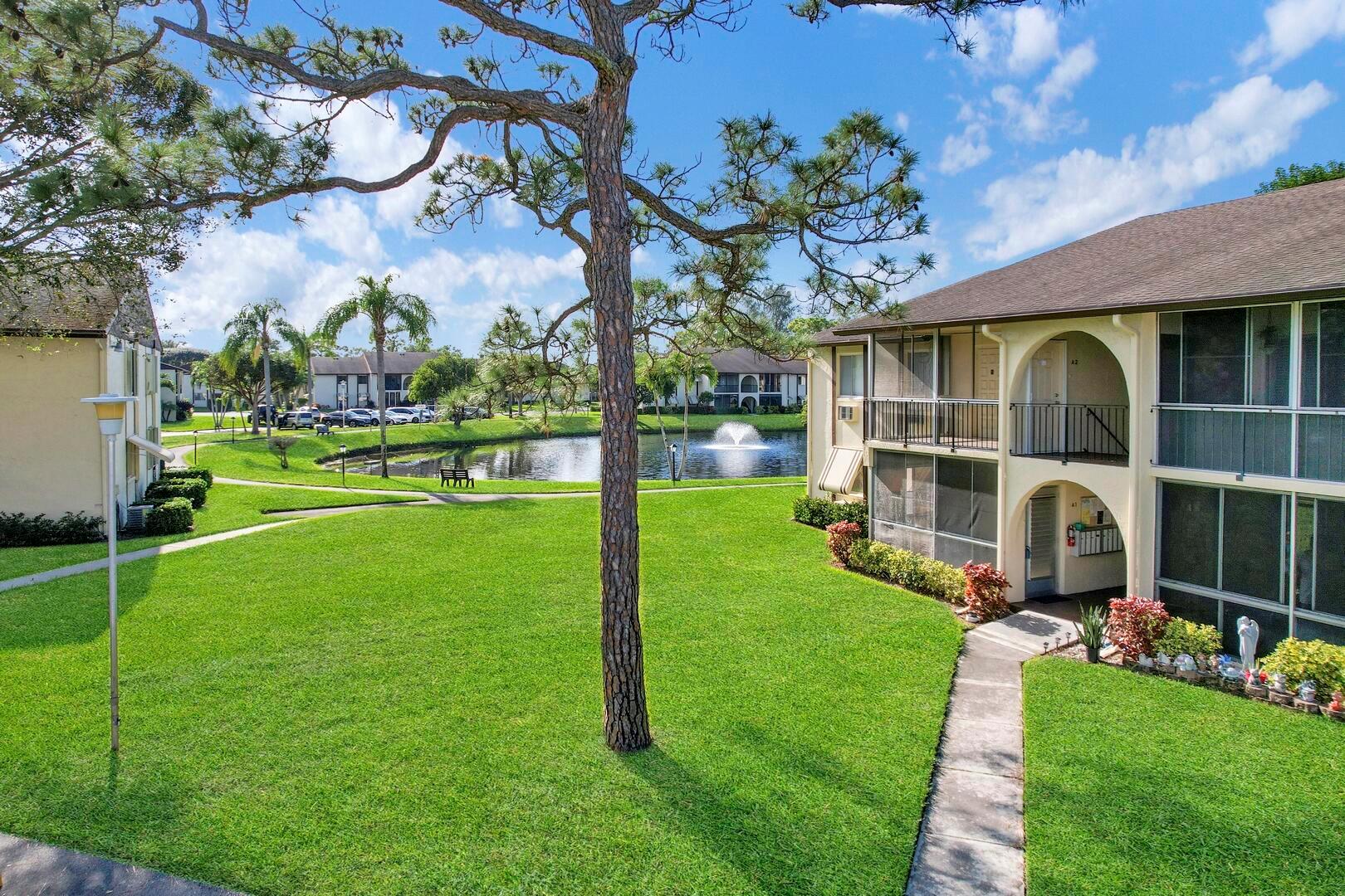 Enjoy this lovely 1 bedroom 1 bath condo located in this quaint community of La Pinata. Located on the First Floor with a Lake View this spacious corner unit has an open floorplan and includes: interior laundry room with full size Washer & Dryer, walk-in Pantry/Storage, fresh Paint in living area, Screened Porch, Walking Paths and much more. This friendly 55+ community is centrally located near shops, medical, Turnpike and I-95.