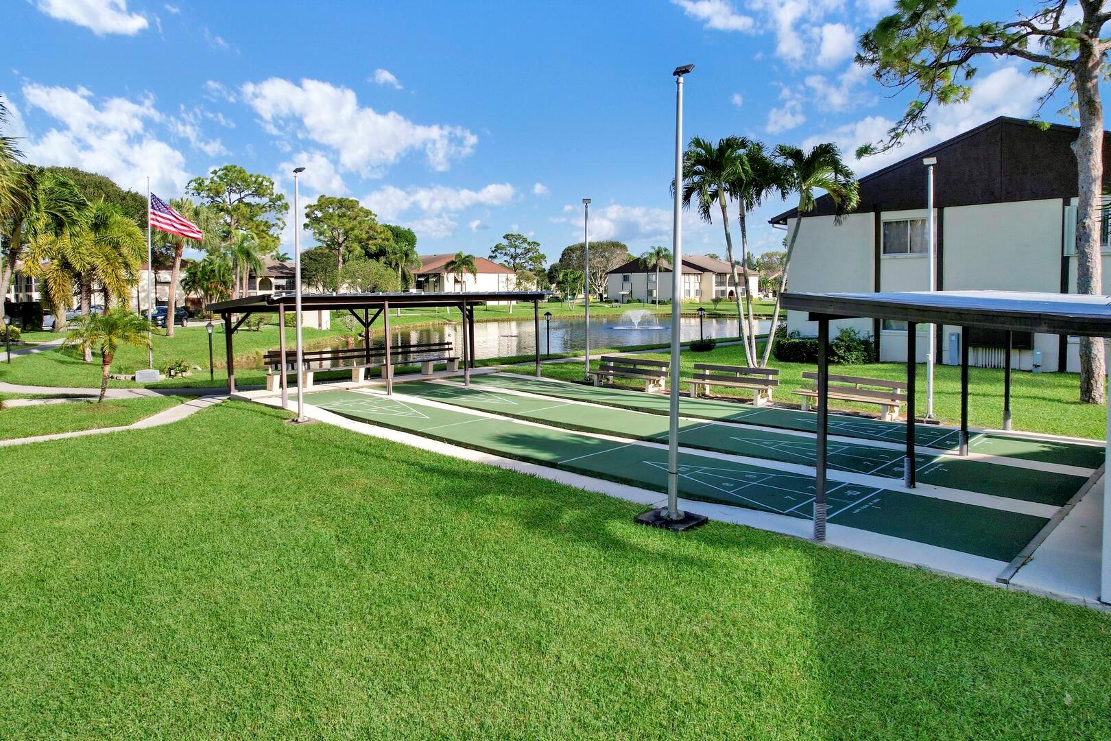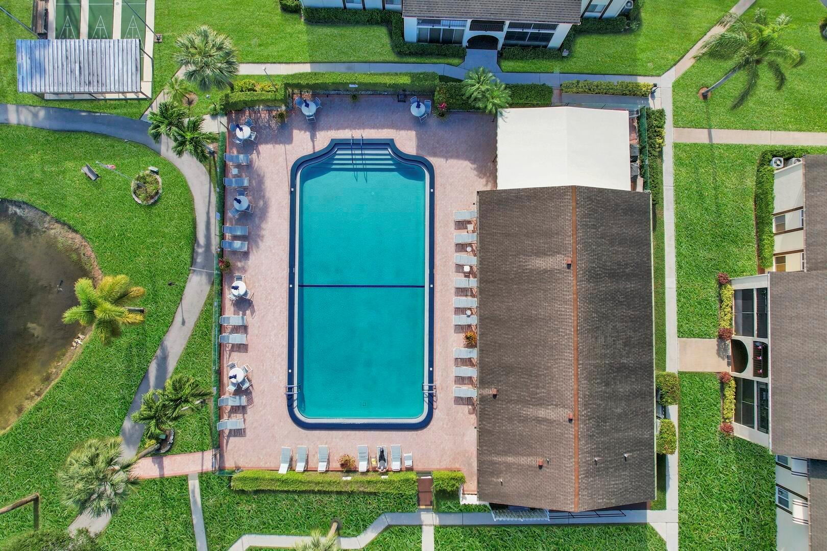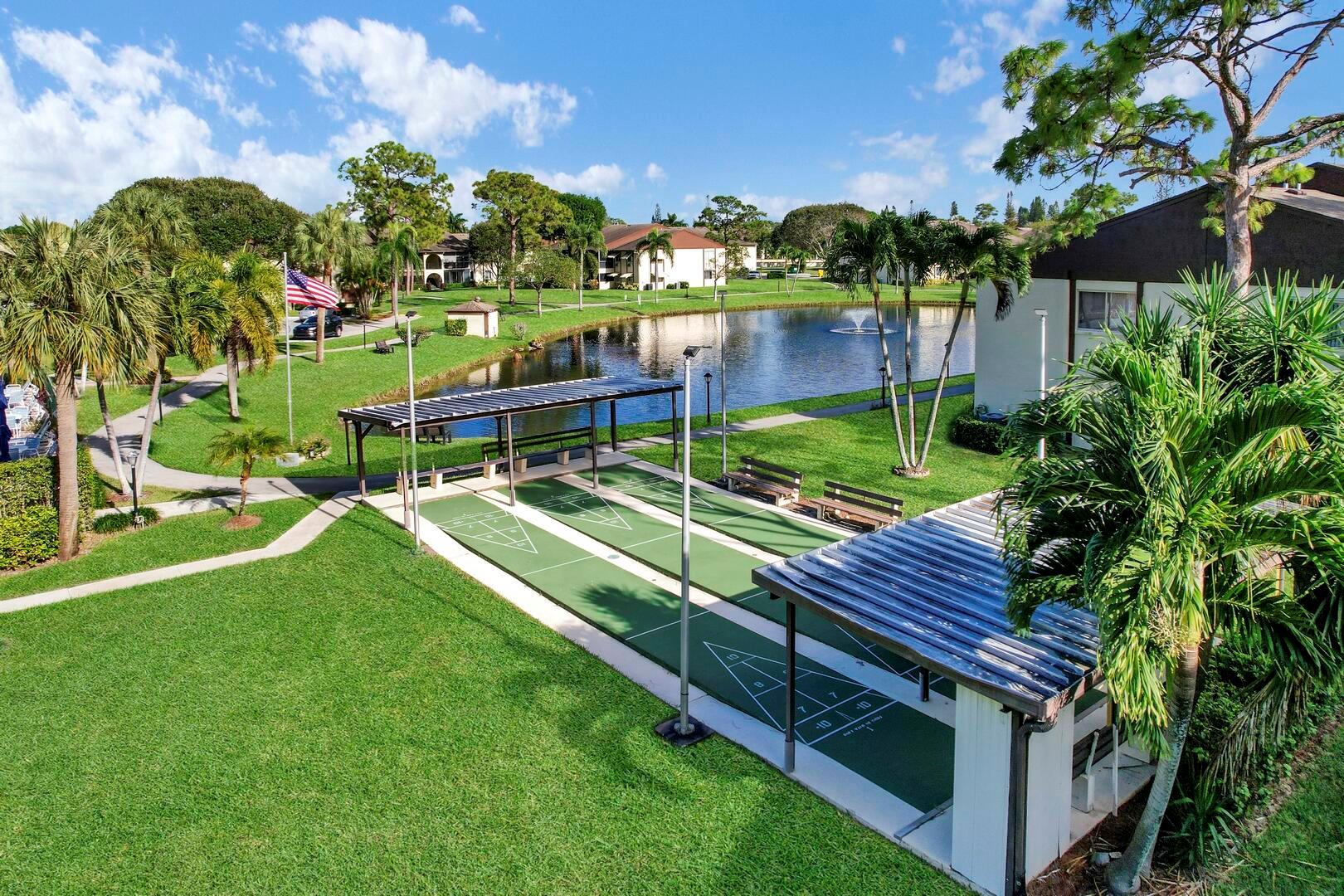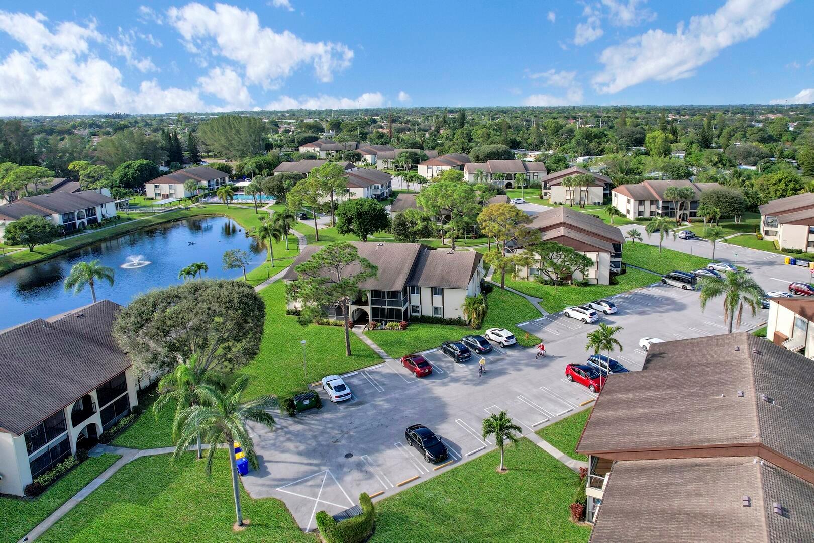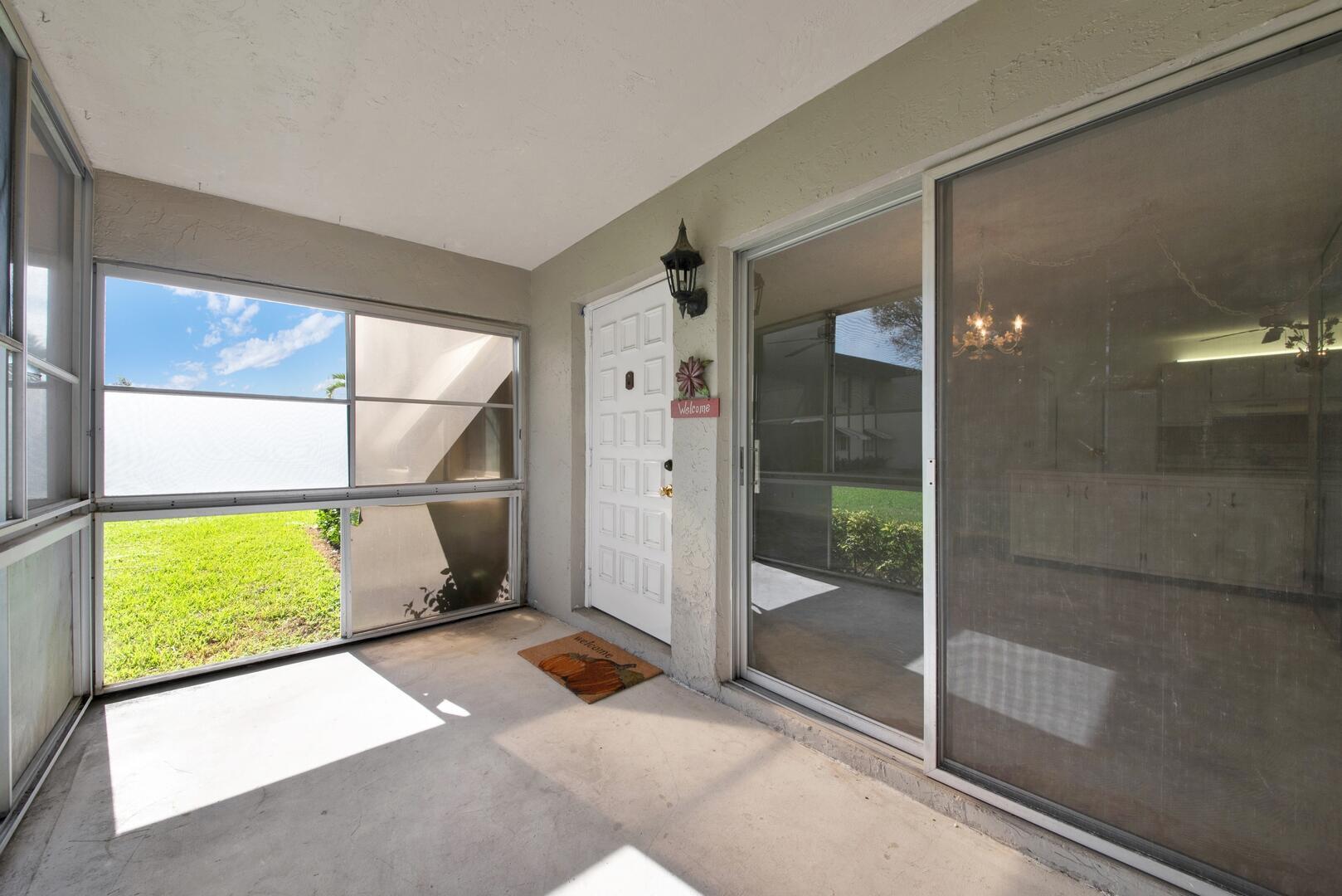 Enjoy this lovely 1 bedroom 1 bath condo located in this quaint community of La Pinata. Located on the First Floor with a Lake View this spacious corner unit has an open floorplan and includes: interior laundry room with full size Washer & Dryer, walk-in Pantry/Storage, fresh Paint in living area, Screened Porch, Walking Paths and much more. This friendly 55+ community is centrally located near shops, medical, Turnpike and I-95.